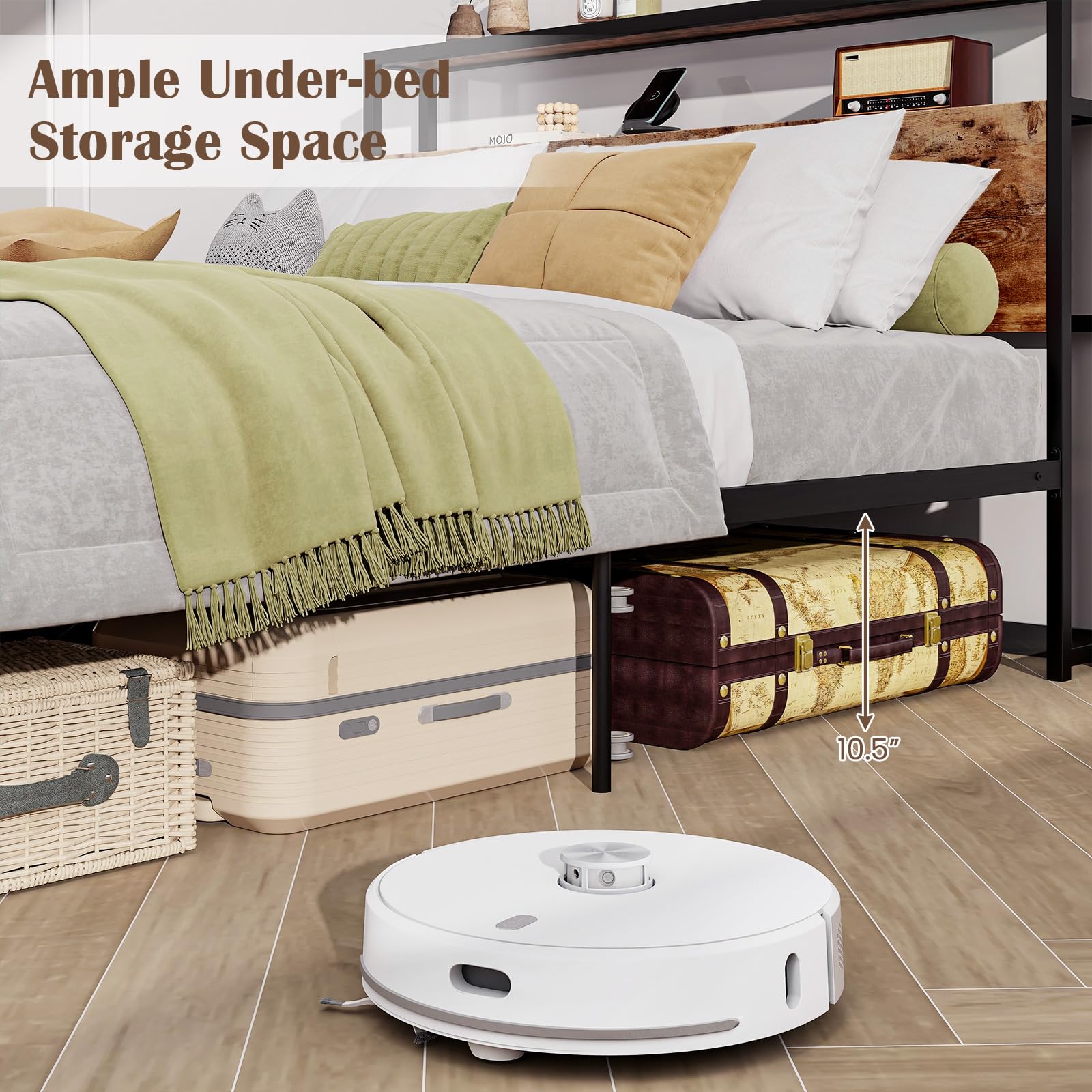 Generous under-bed clearance offers enough space for easy cleaning and storage