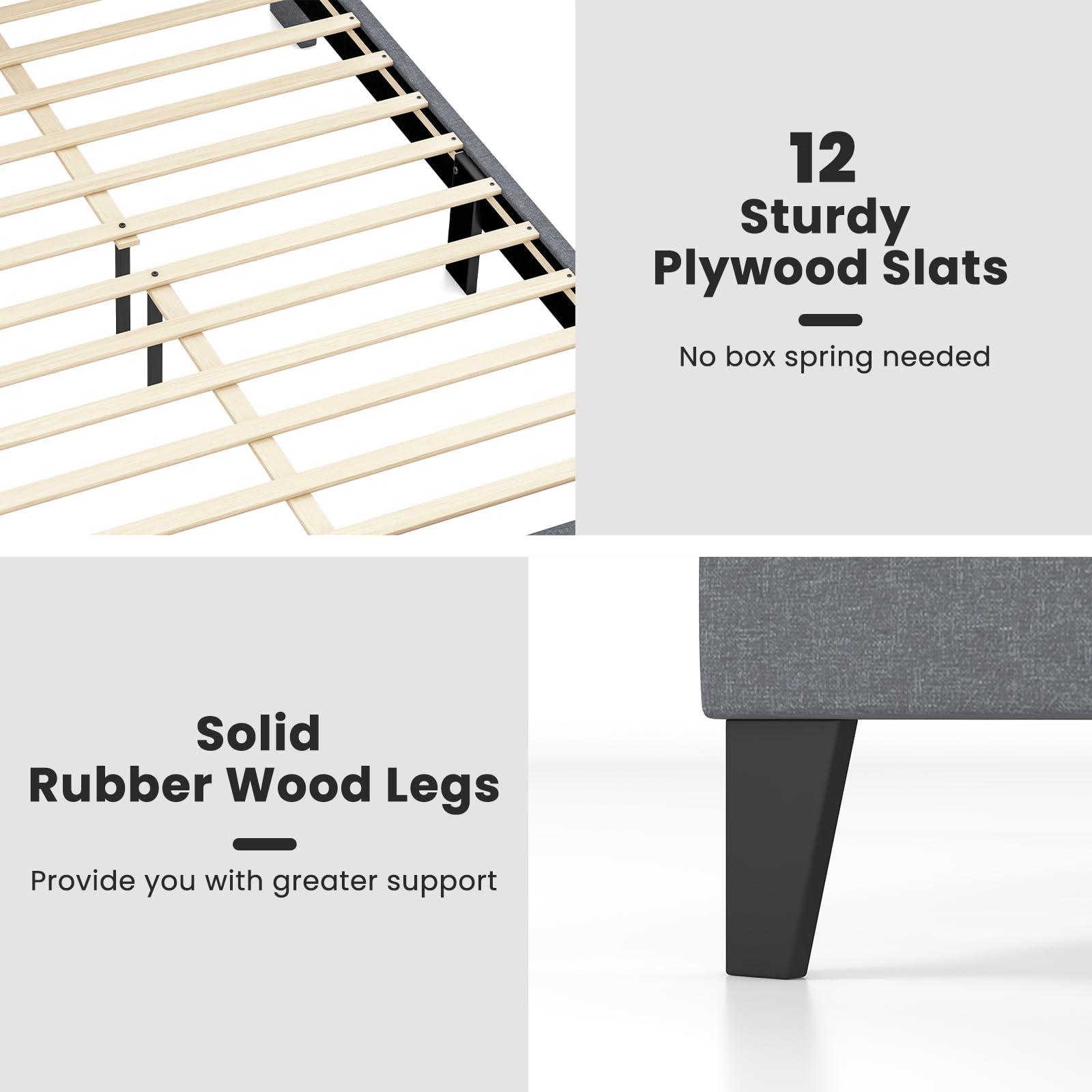 - Sturdy Rubber Wood Legs: The bed frame is built with solid rubber wood legs and strong center support, ensuring stable support. The 6.5-inch high legs also create additional under-bed storage space.