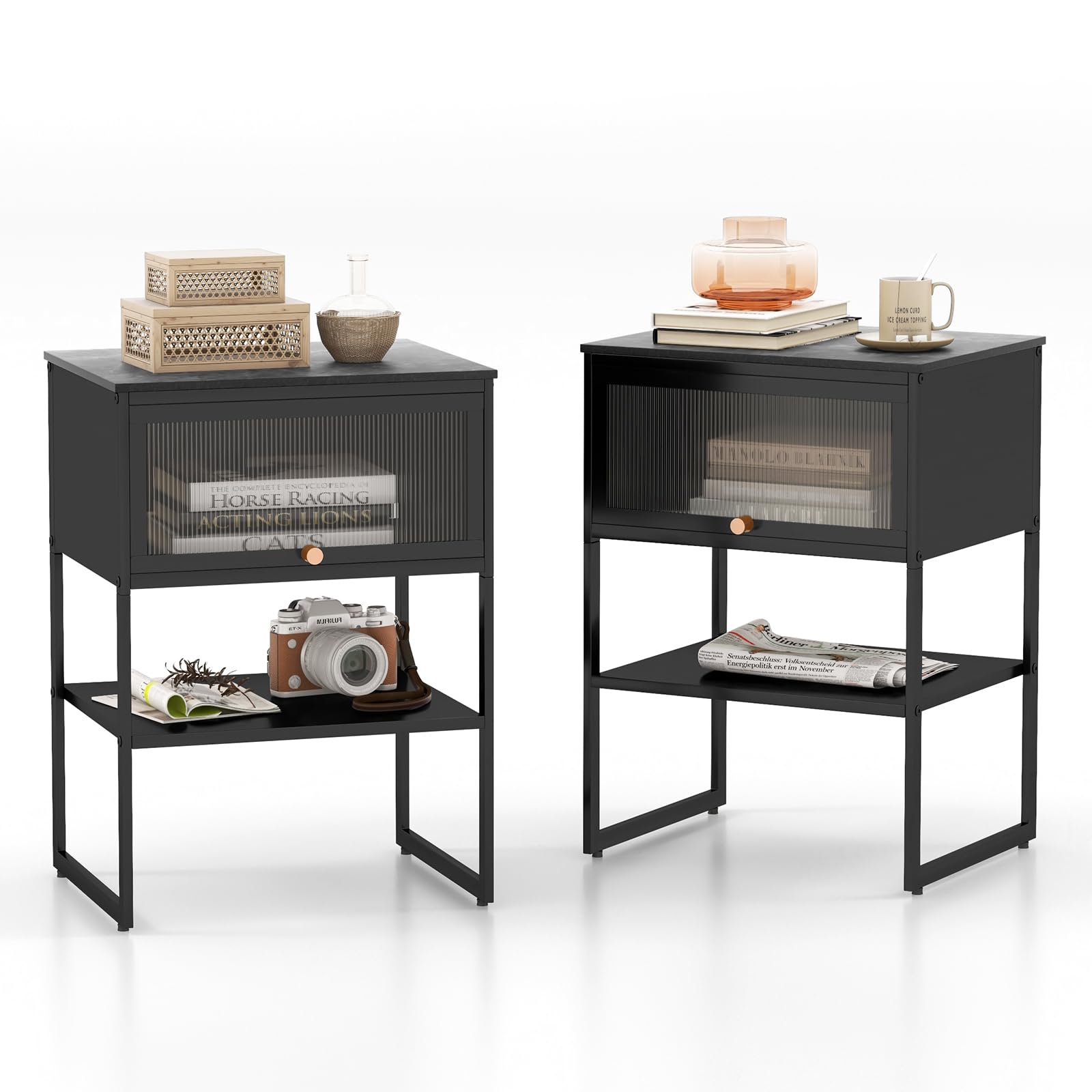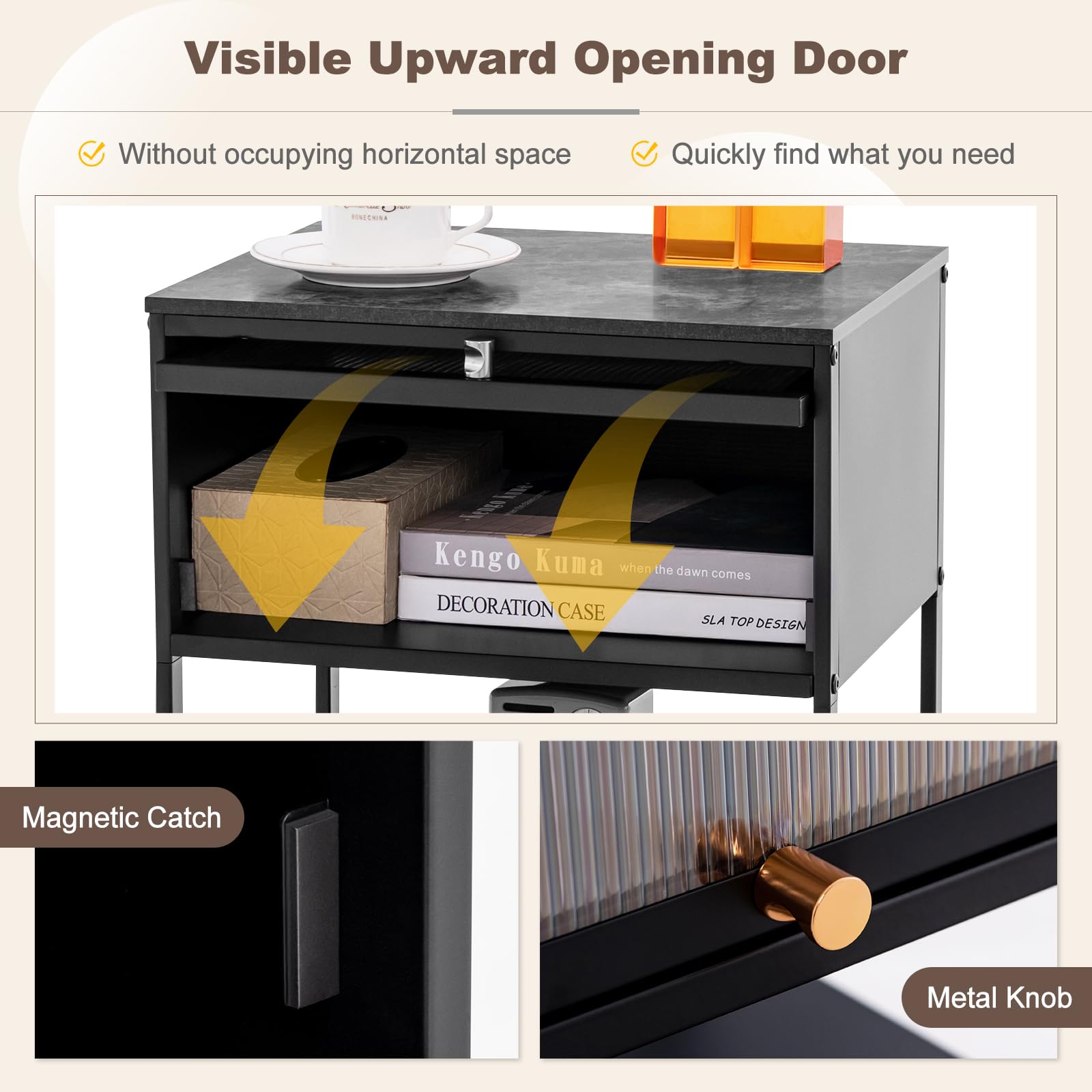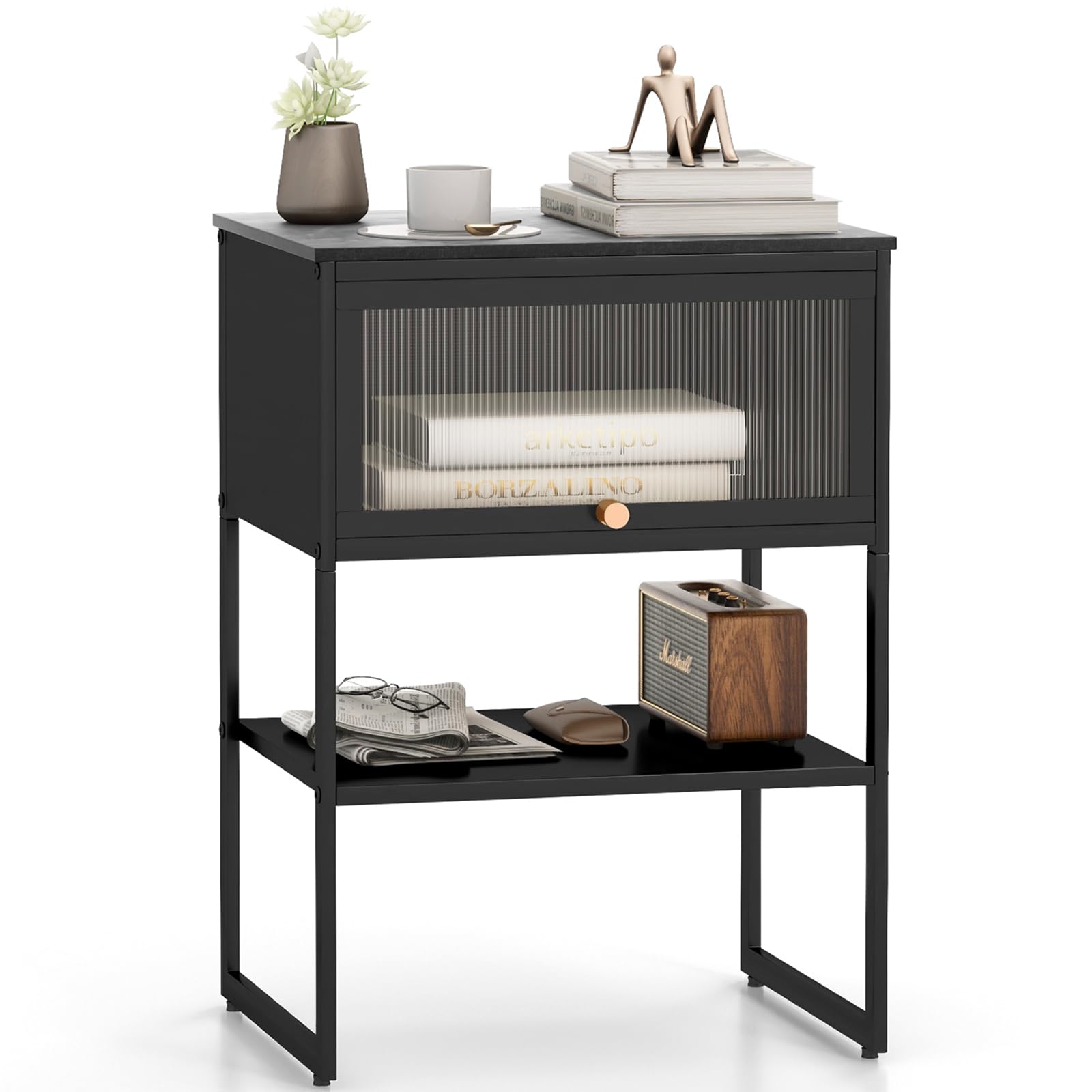 Giantex Black Nightstand, Modern End Table with Flip up Door