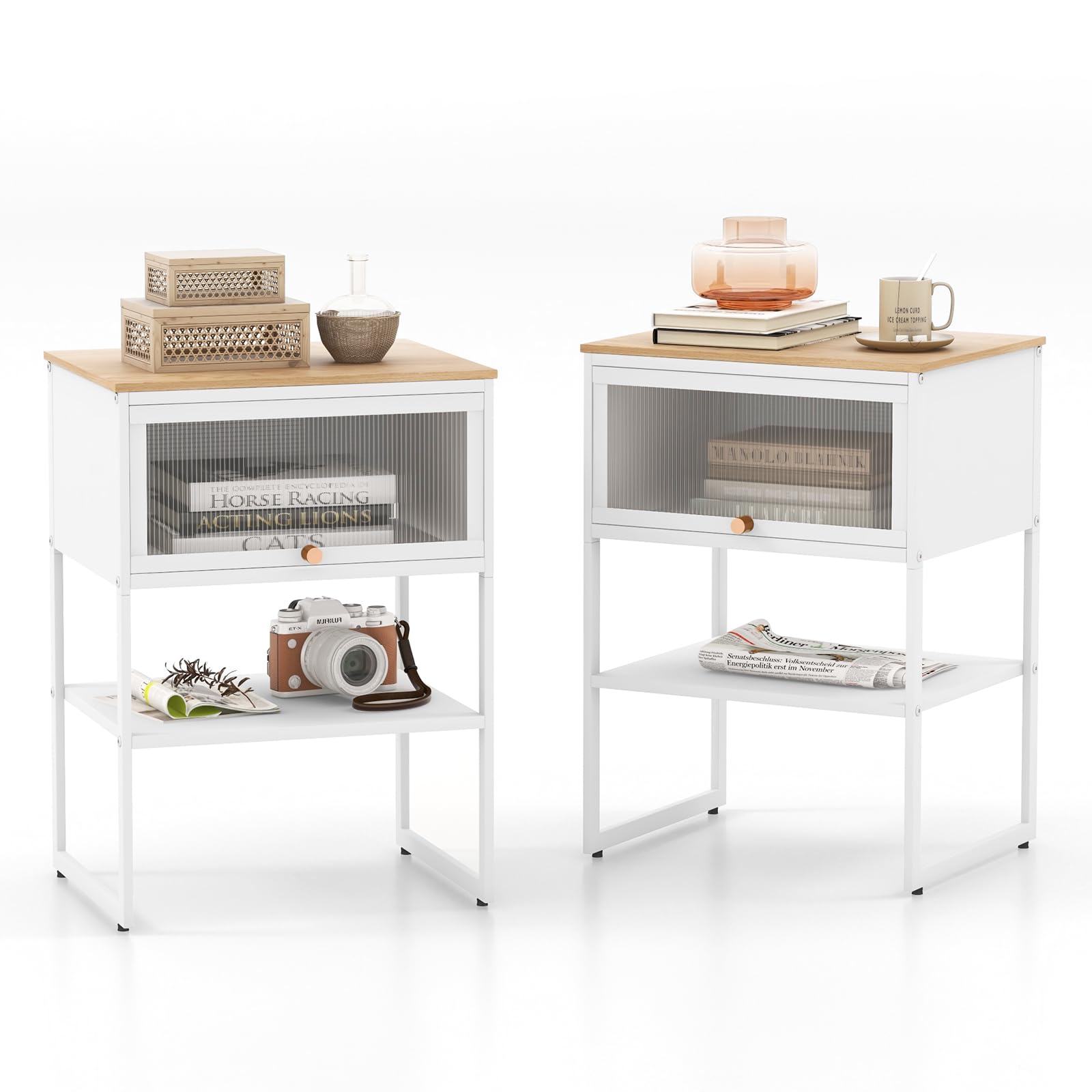 If you are looking for a versatile yet sturdy nightstand, this one would be worth considering. Wide tabletop, storage cabinet and bottom shelf provide you with ideal storage space for various items, keeping them in a neat and orderly way. In addition, the visible flip-up door allows quick access to the items when you need them. Thanks to the selected PC material and heavy-duty metal frame, this side table is stable and strong enough for long-term use. Besides, this versatile nightstand is not limited to the bedroom but can also serve as an accent table in your living room. With chic and modern design, this well-designed side table is merged with different home styles.