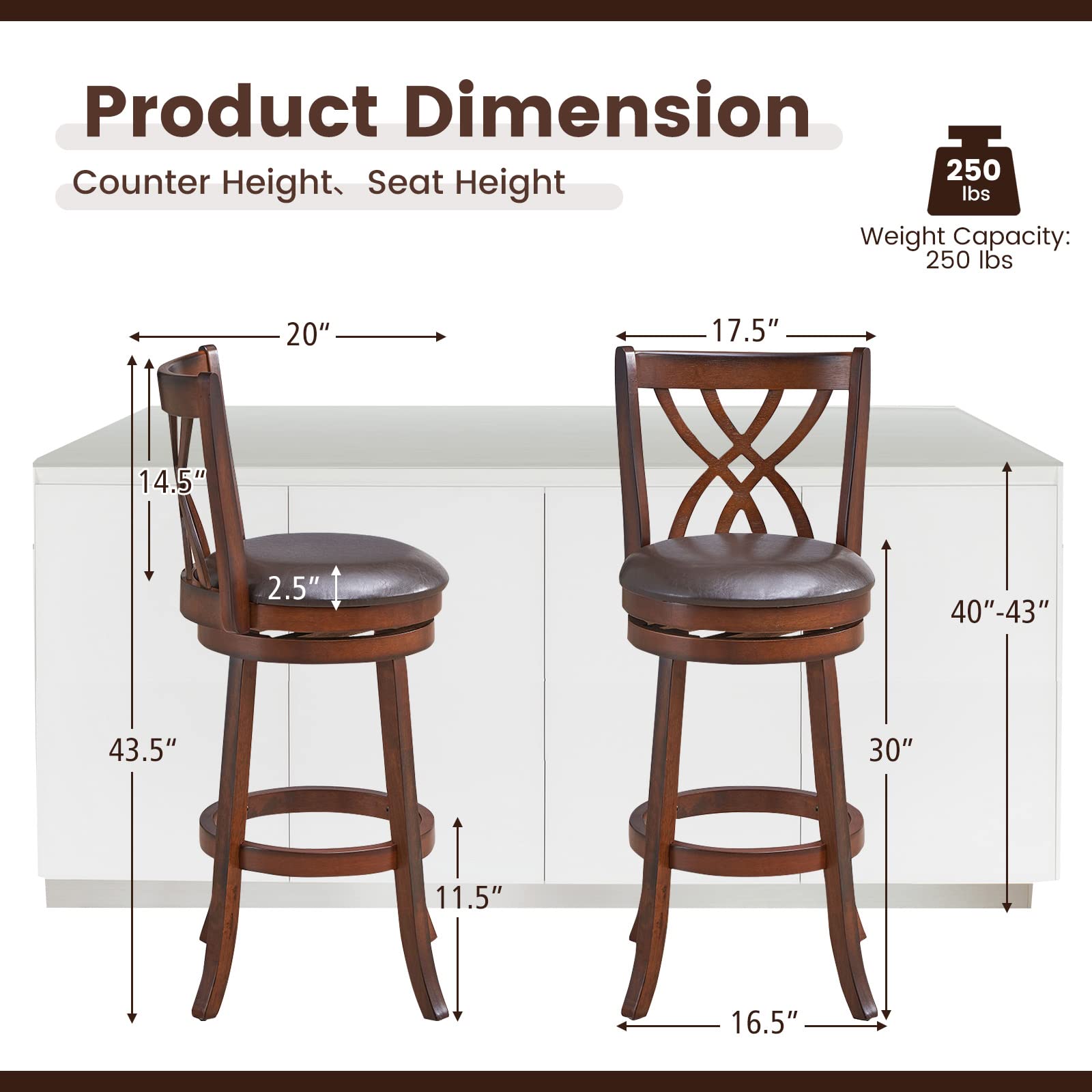- 360° Swivel Bar Stools: Equipped with a swivel base, these bar stools can freely and flexibly rotate 360 degrees, which can satisfy users of different sitting positions. These 2 swivel bar chairs are perfect for a relaxing meal or drink with your family or friend.