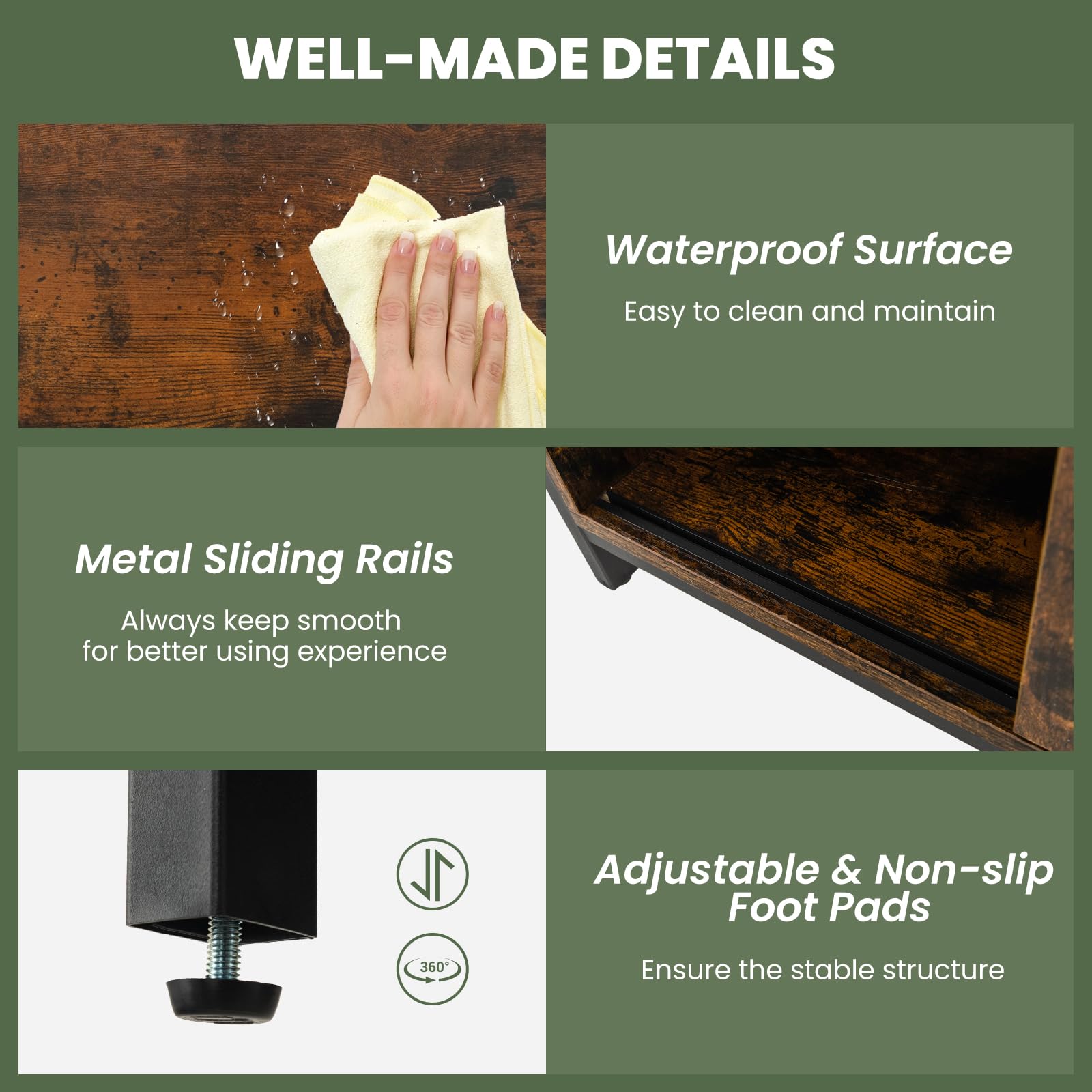 Adjustable & non-slip foot pads ensure the stable structure