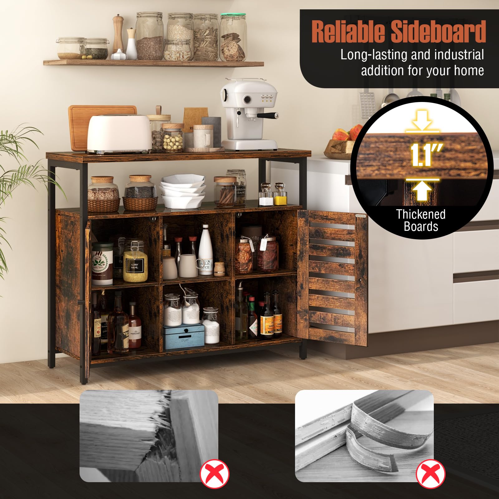 - [Industrial Chic & Wide Use]: Bring a touch of industrial flair to your home with the buffet cabinet. Its distinct style combines sleek metal elements with rich, textured finishes, making it an ideal addition to your kitchen, living room, or dining area.
