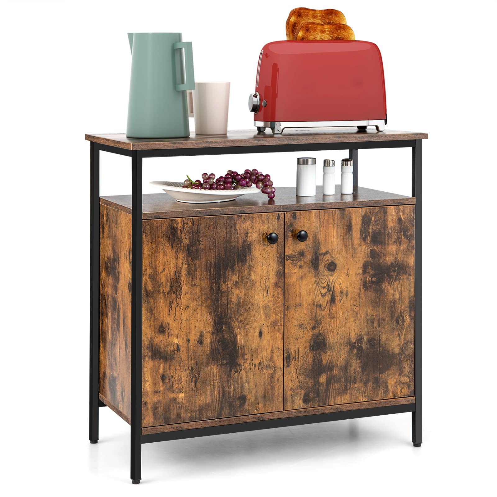 Ample Storage Space: This home buffet comes with a spacious wooden counter top for your coffee maker, toaster or frequently-used cups. The storage cabinet with doors and internal shelves will fully satisfy your storage and sorting needs. In addition, there is an extra open shelf to provide more storage space.