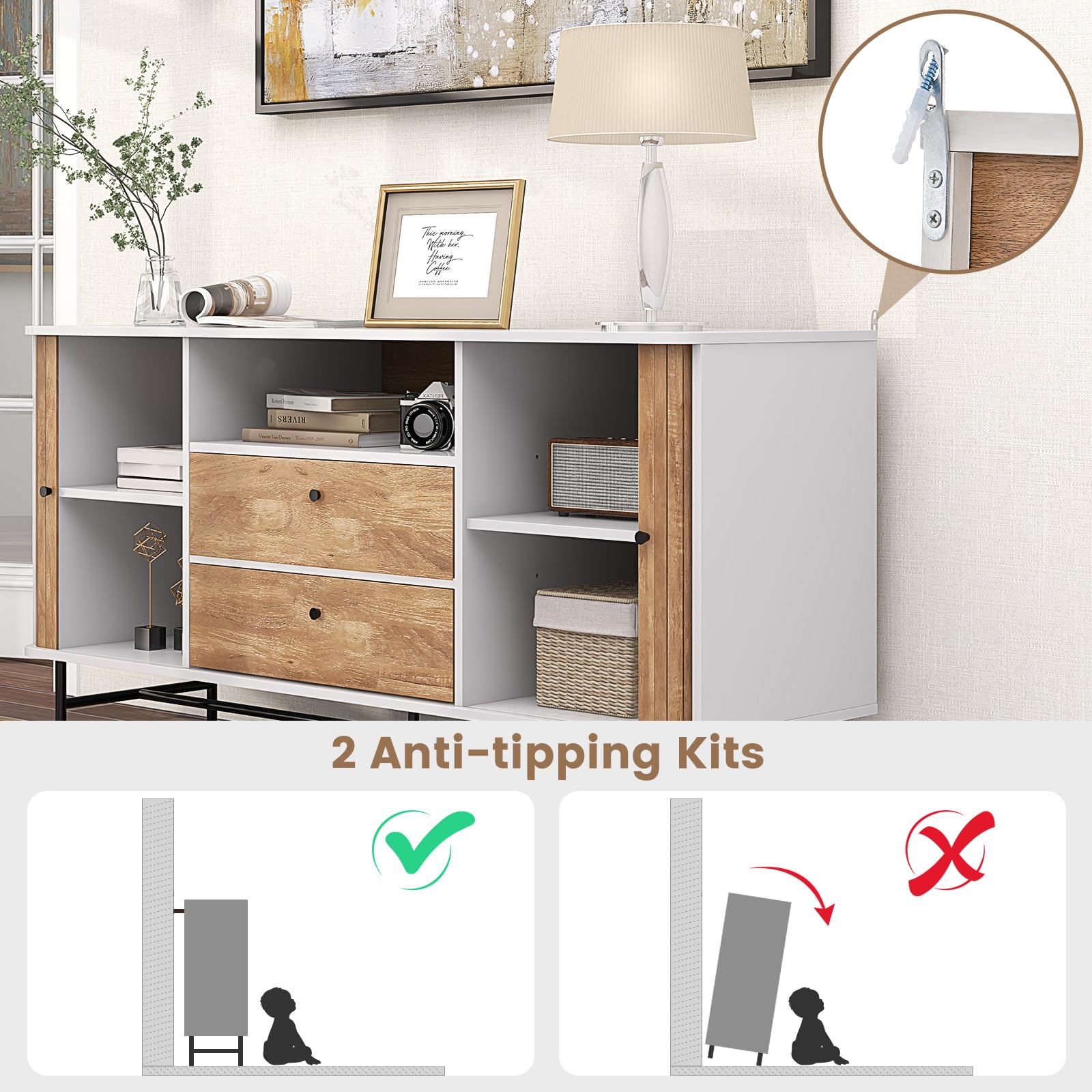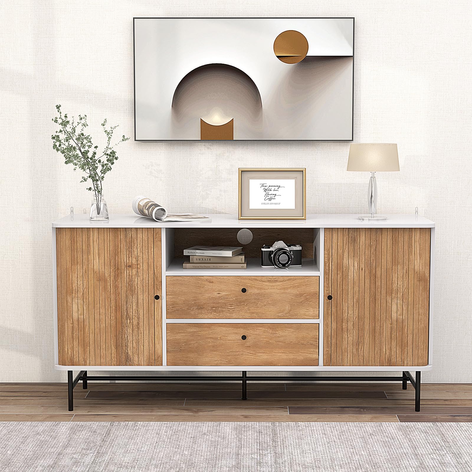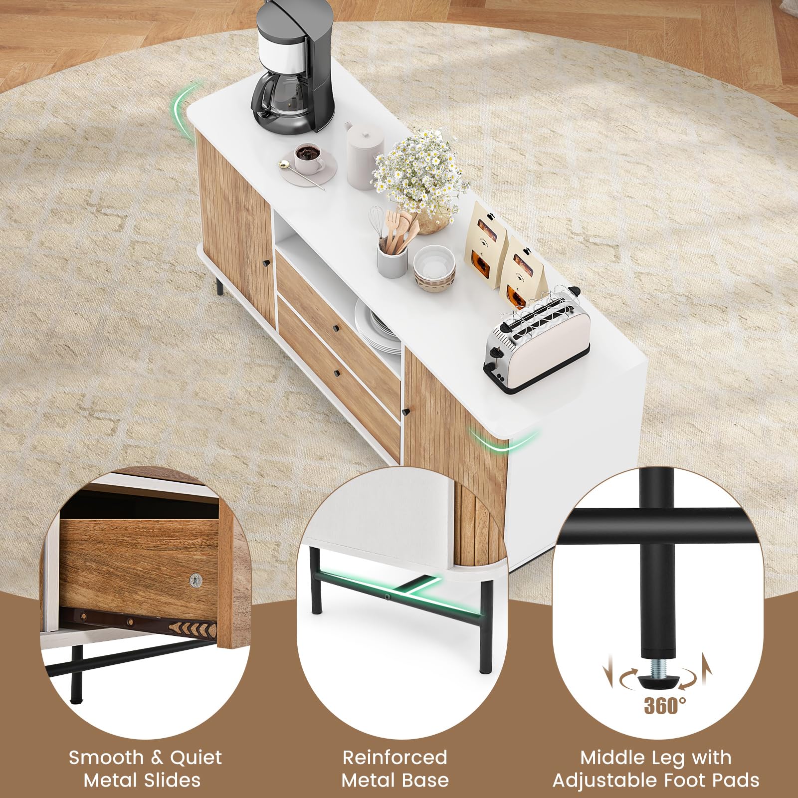 - [Versatile Storage Space]: The buffet sideboard features large storage space, including an open shelf, 2 sliding door cabinet and 2 storage drawers, great for organizing kitchen essentials and delicate ornaments. The cable hole on the back allows for easy wire management.