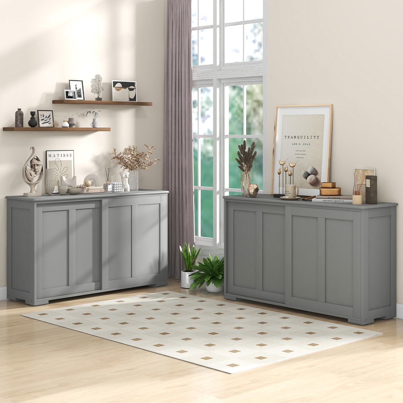 - [Versatile & Stackable Buffet Cabinet]: Our modern storage cabinet is a must-have for your rooms. It can not only serve as your cupboard in your kitchen, but can also be used as a TV stand in your living room. And 2 buffet sideboards can be stacked up to save limited space.