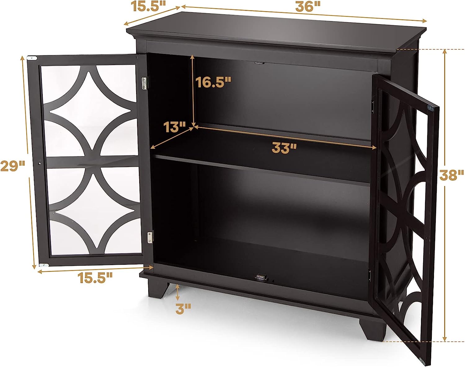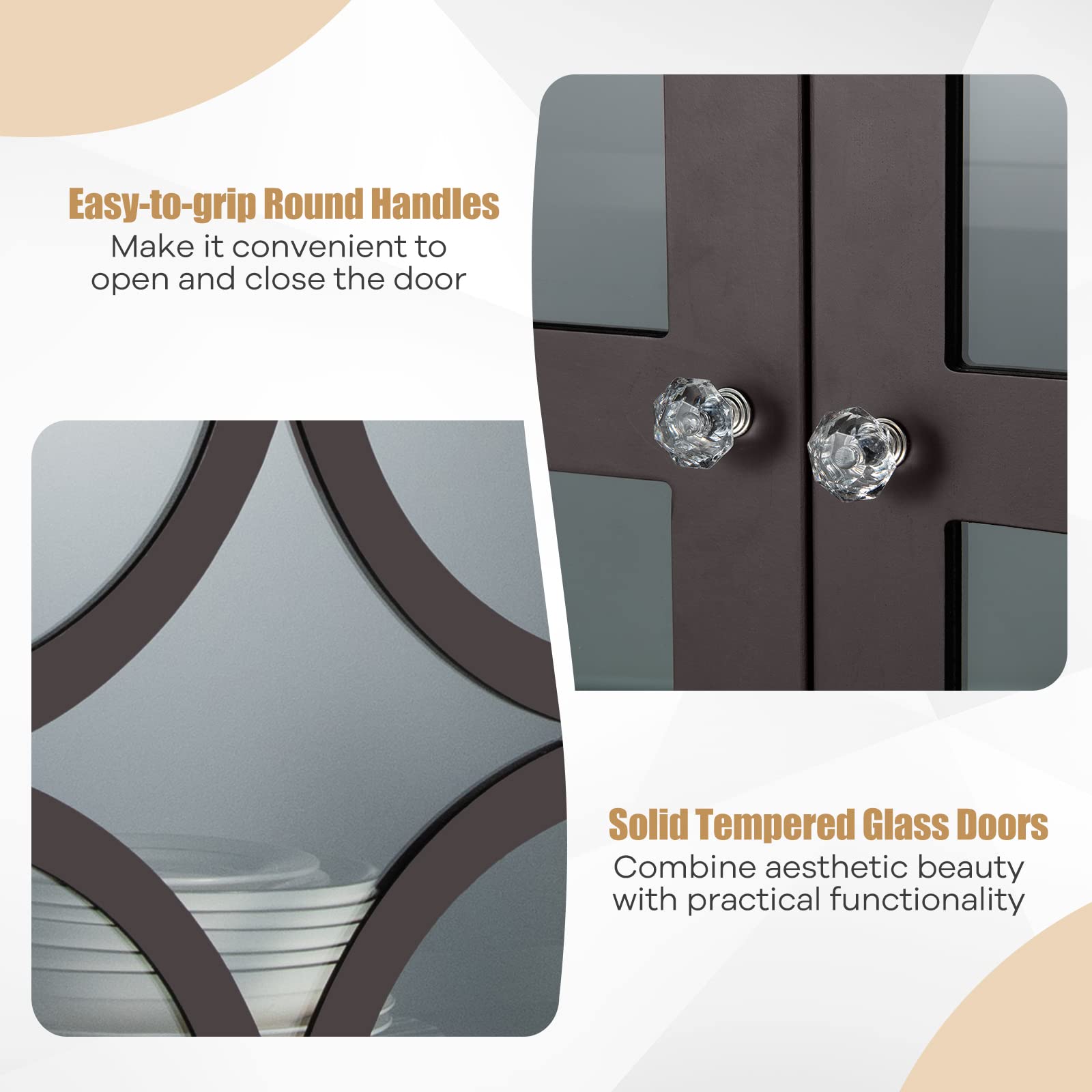 Thoughtful & Humanized Details: The sideboard with decorative transparent doors provides perfect storage space for exquisite items to display their beauty. Easy-to-grip round handles and premium hinges make the door easy to open. The durable magnetic door catch keeps door closed tightly to keep the dust from entering.