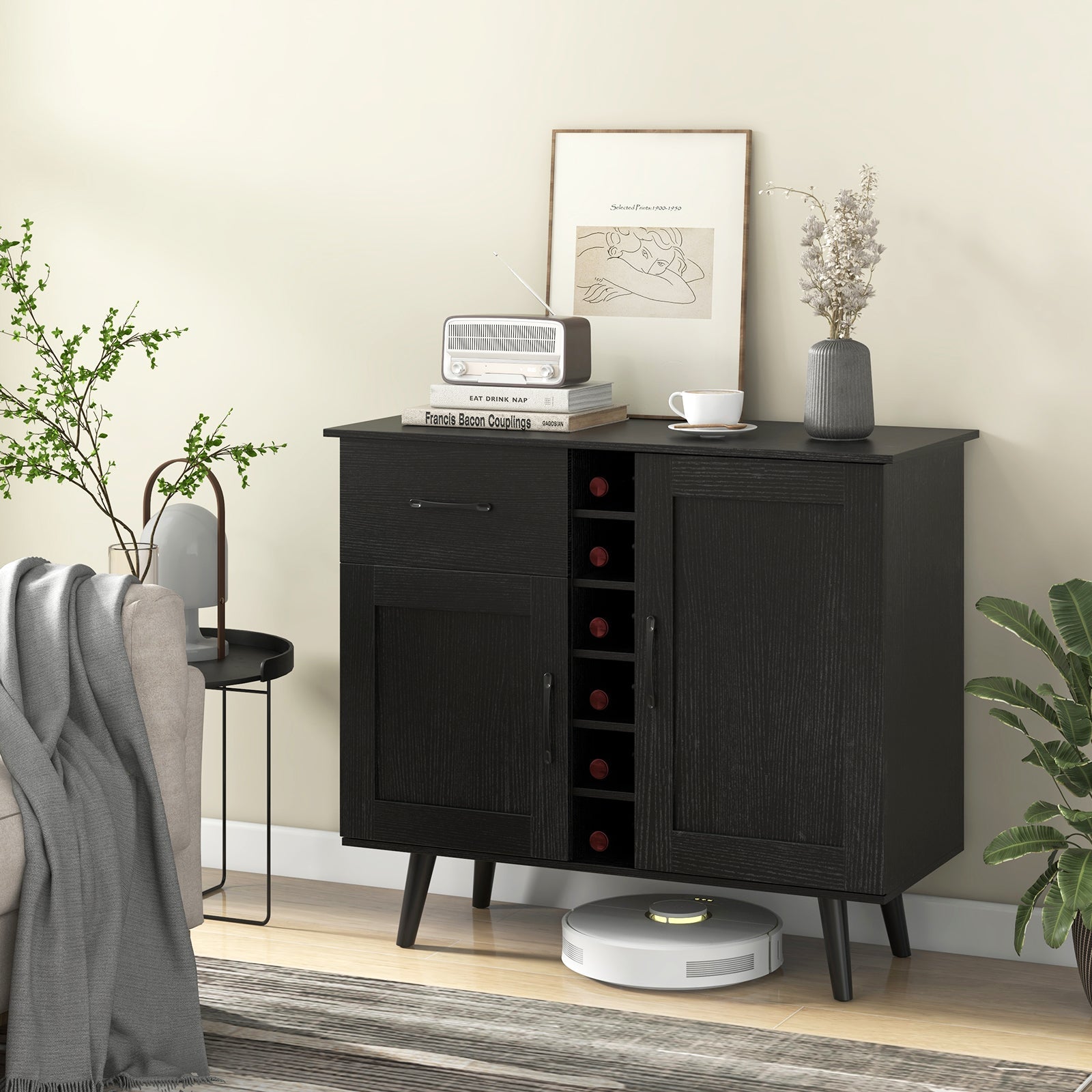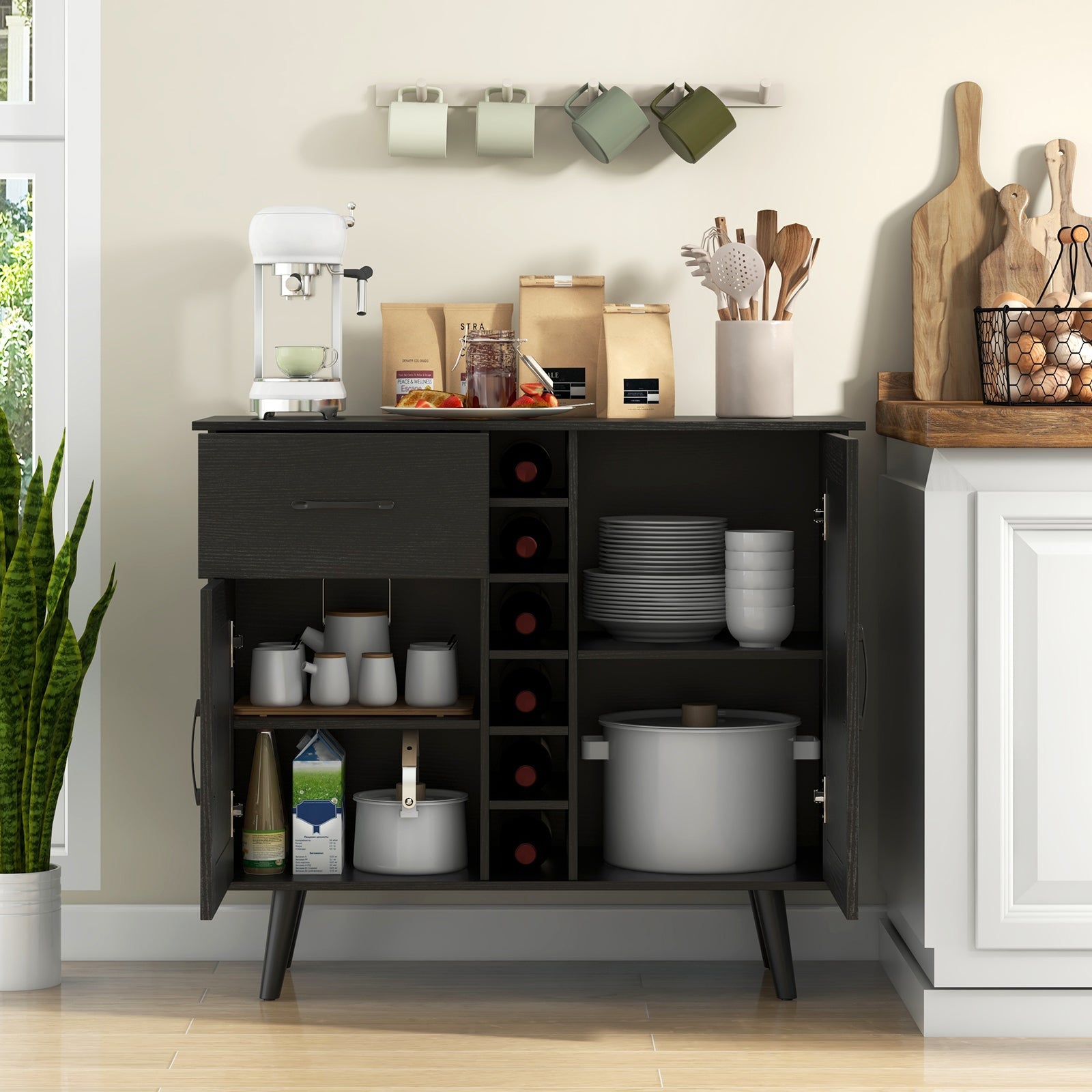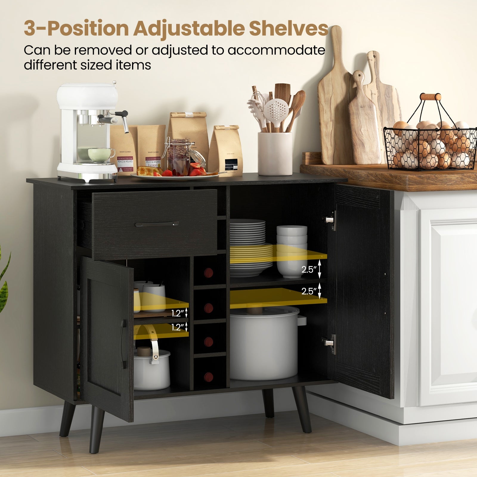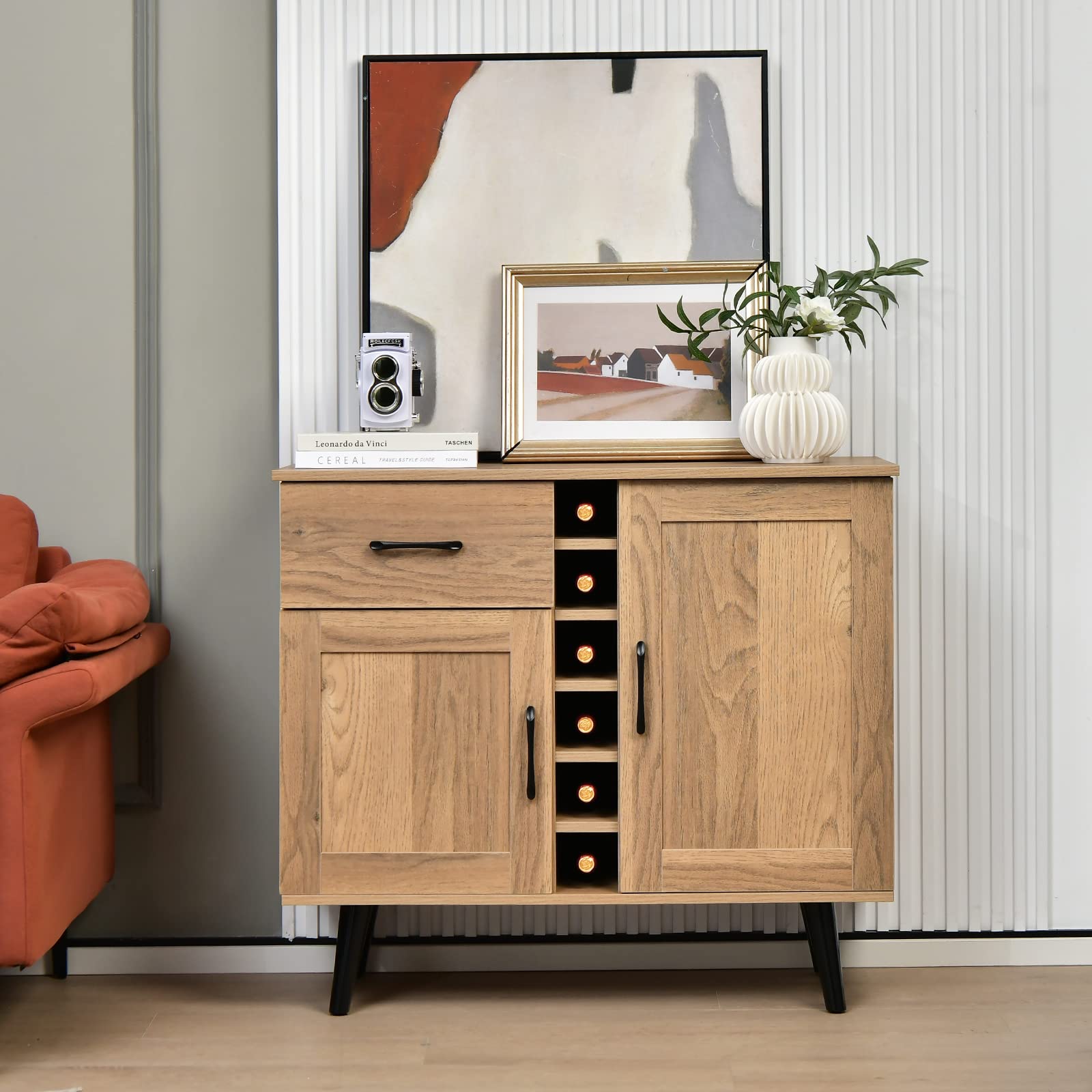 Perfect Wine Storage Solution: This buffet cabinet is designed with 1 spacious tabletop and a 6-bottle wine rack for you to display your wine collections. Besides, 1 deep drawer and 2 enclosed cabinets with shelves also provide more space to keep your kitchen items well organized.