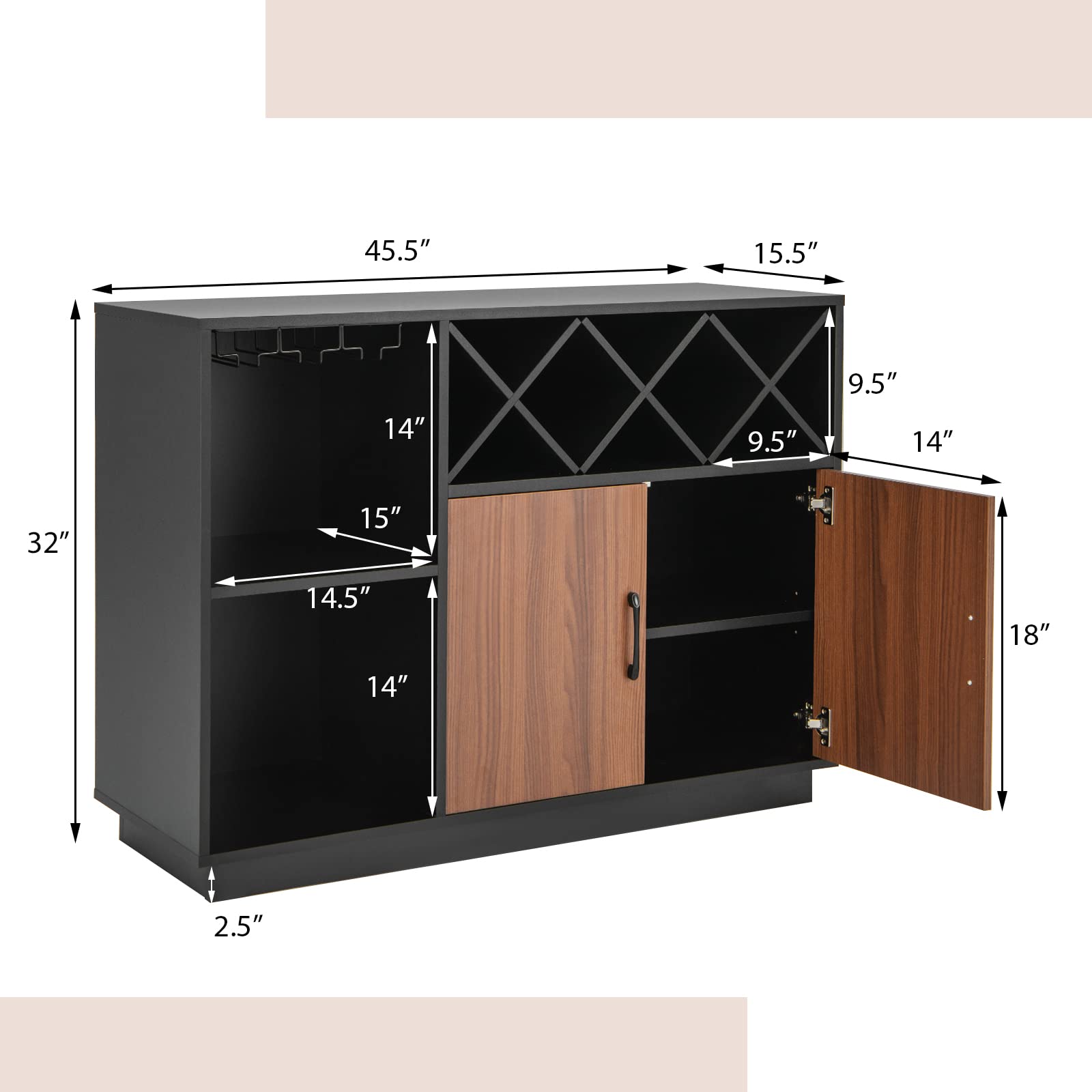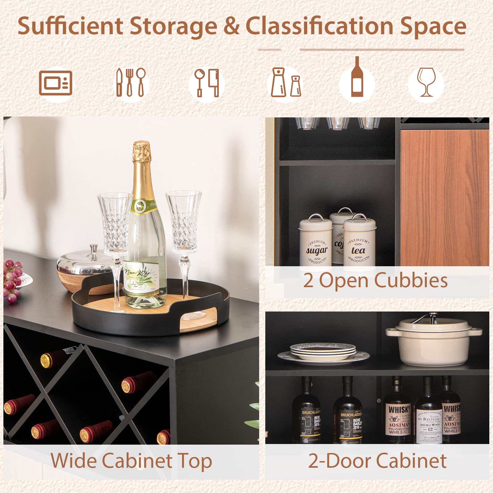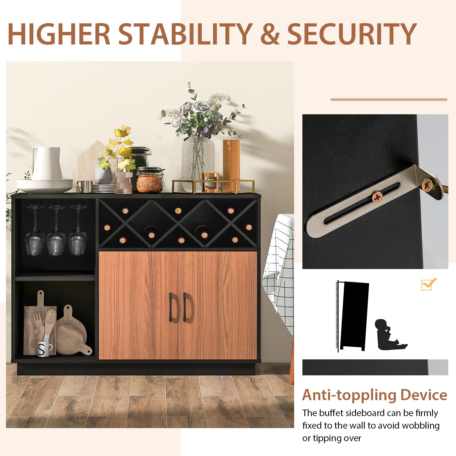Bring this wine bar cabinet home which strikes the perfect balance between functionality and industrial design! The kitchen sideboard with an X-shaped wine rack and glass holder makes wine bottle organization a breeze. More, you are capable of classifying items by means of multiple storage options, including cabinet tops, open cubbies, and 2-door cabinets. Thanks to the anti-toppling device, you can fix the sideboard to the wall to prevent wobbling or tipping over. All in all, the industrial sideboard with exquisite craftsmanship enhances the aesthetics of your home!