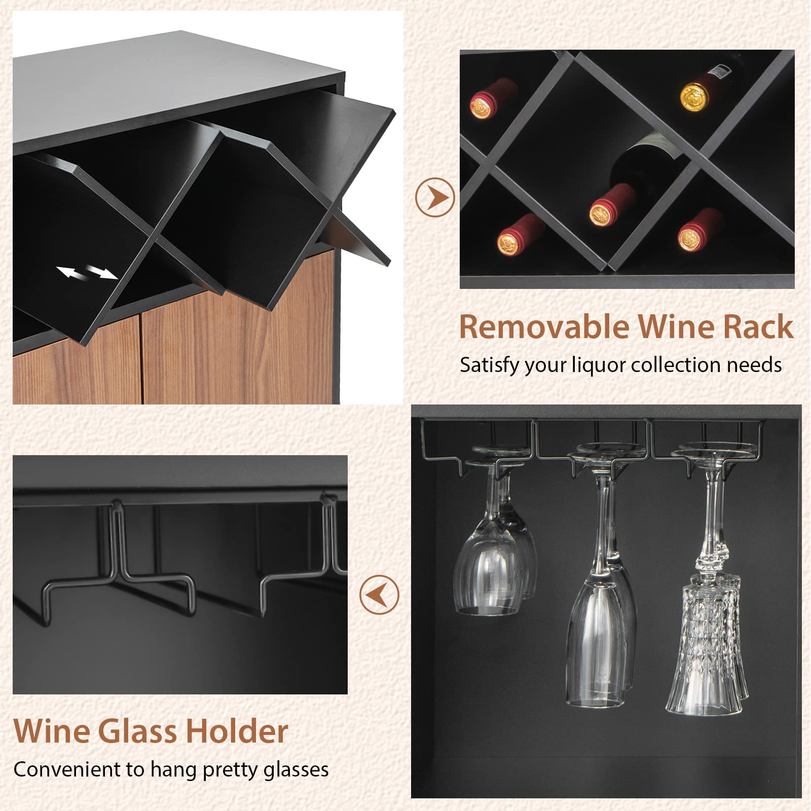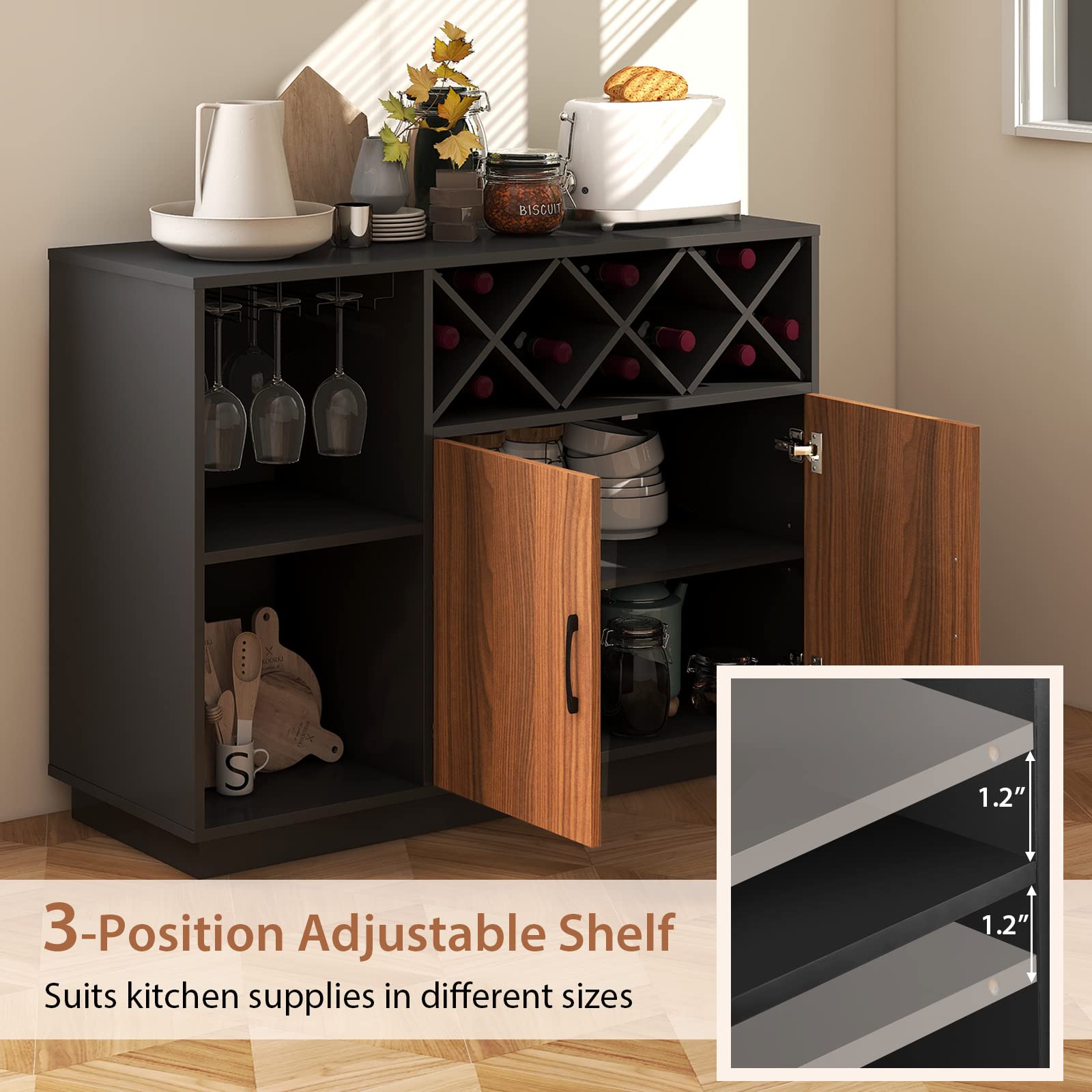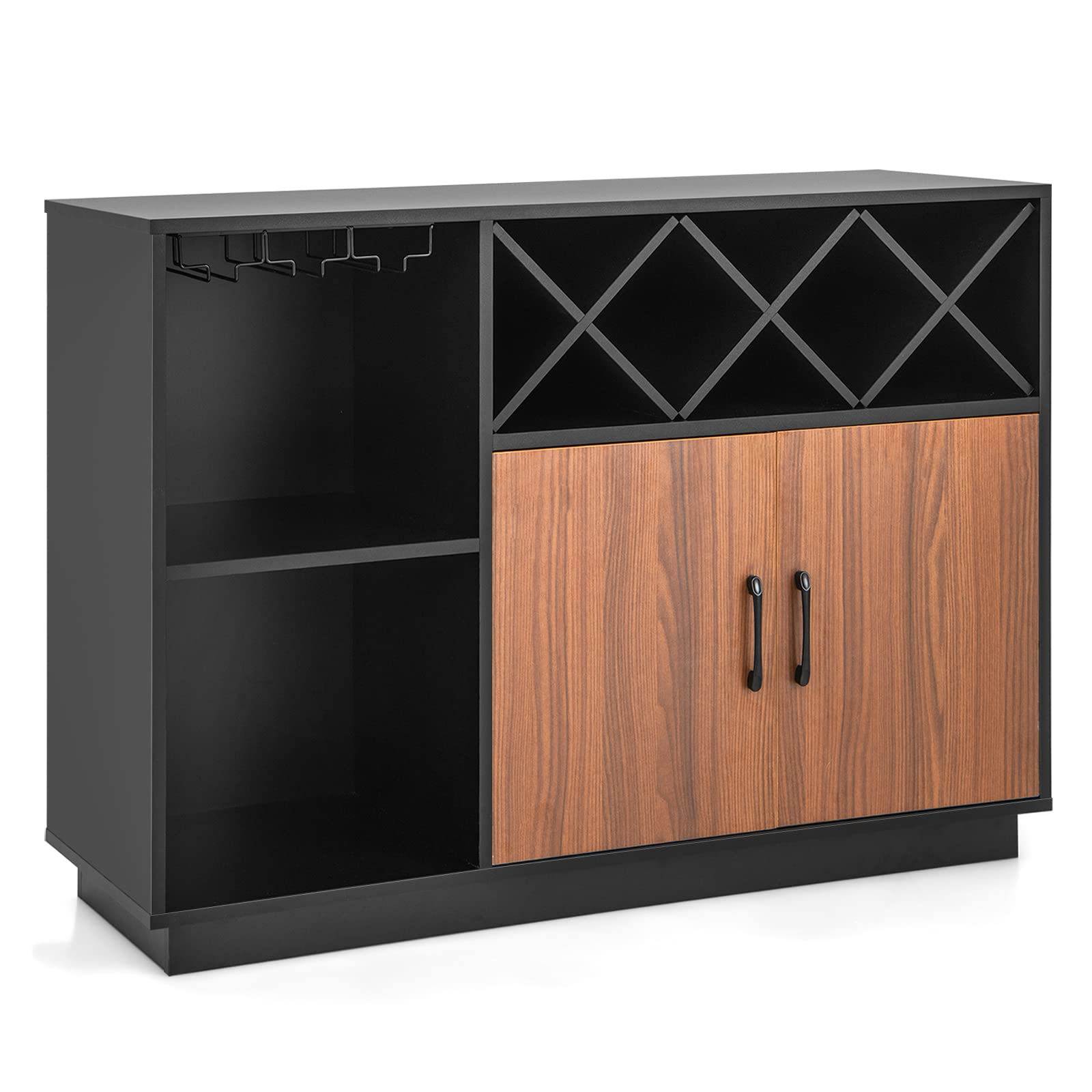 Bring this wine bar cabinet home which strikes the perfect balance between functionality and industrial design! The kitchen sideboard with an X-shaped wine rack and glass holder makes wine bottle organization a breeze. More, you are capable of classifying items by means of multiple storage options, including cabinet tops, open cubbies, and 2-door cabinets. Thanks to the anti-toppling device, you can fix the sideboard to the wall to prevent wobbling or tipping over. All in all, the industrial sideboard with exquisite craftsmanship enhances the aesthetics of your home!