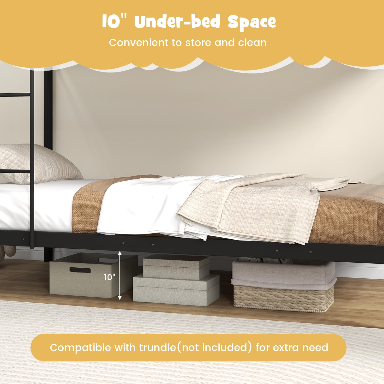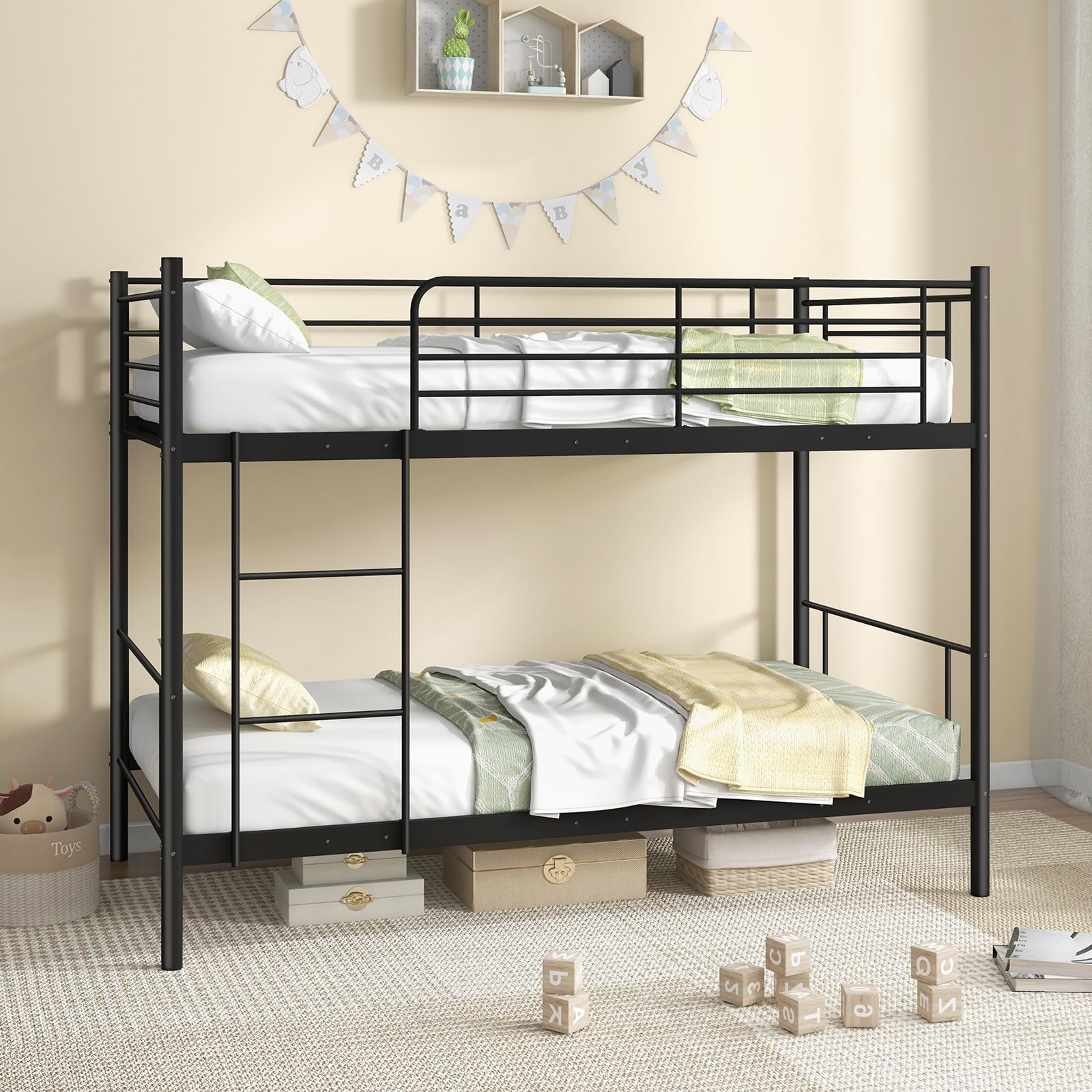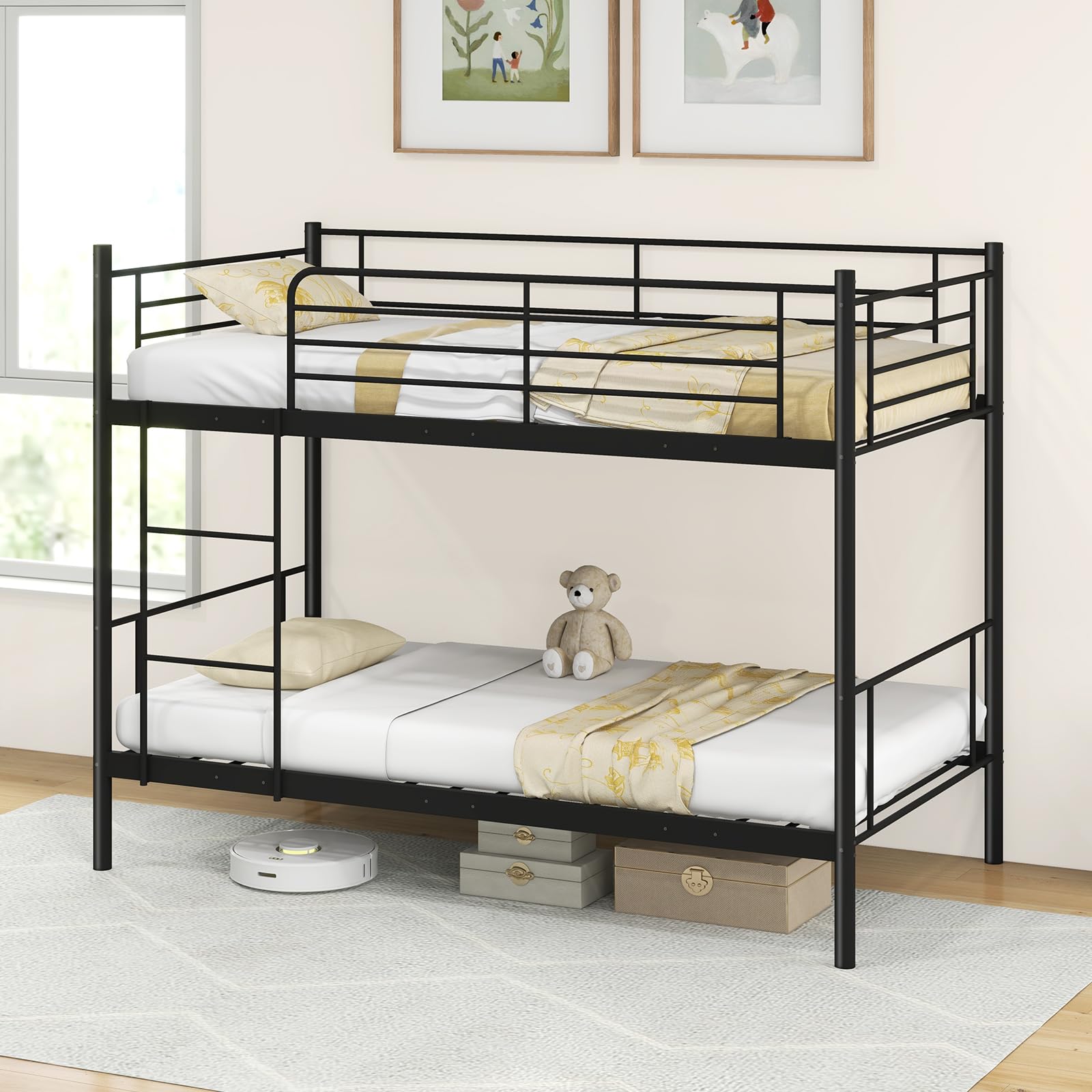 - [Utilize Space Efficiently]: The twin over twin bunk bed brings comfortable sleeping areas?for kids or teens to share, which greatly maximizes room space. What’s more, the 10" under-bed space is convenient to store and clean. And it is compatible with trundle(not included) for extra need.