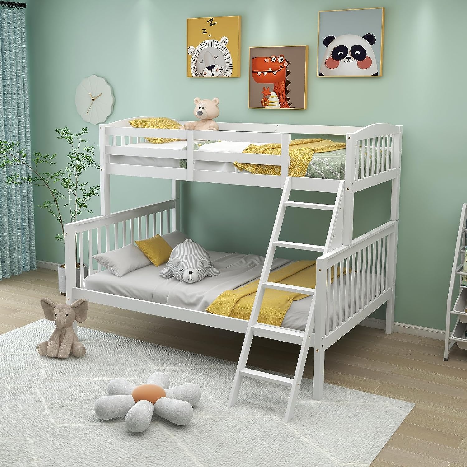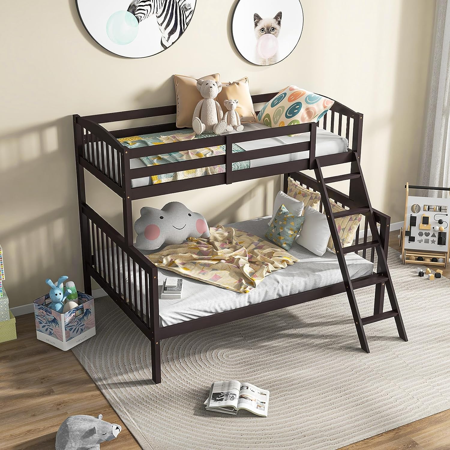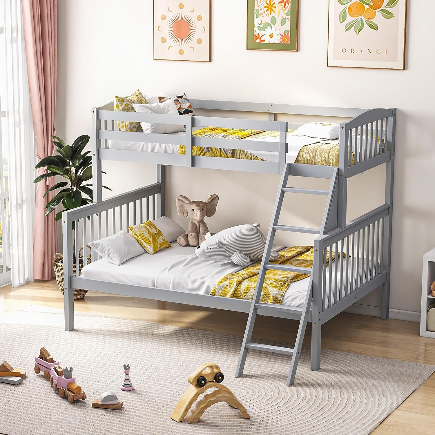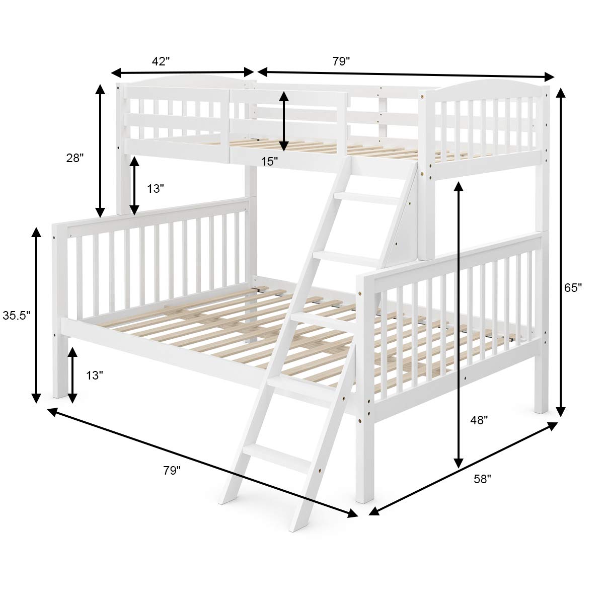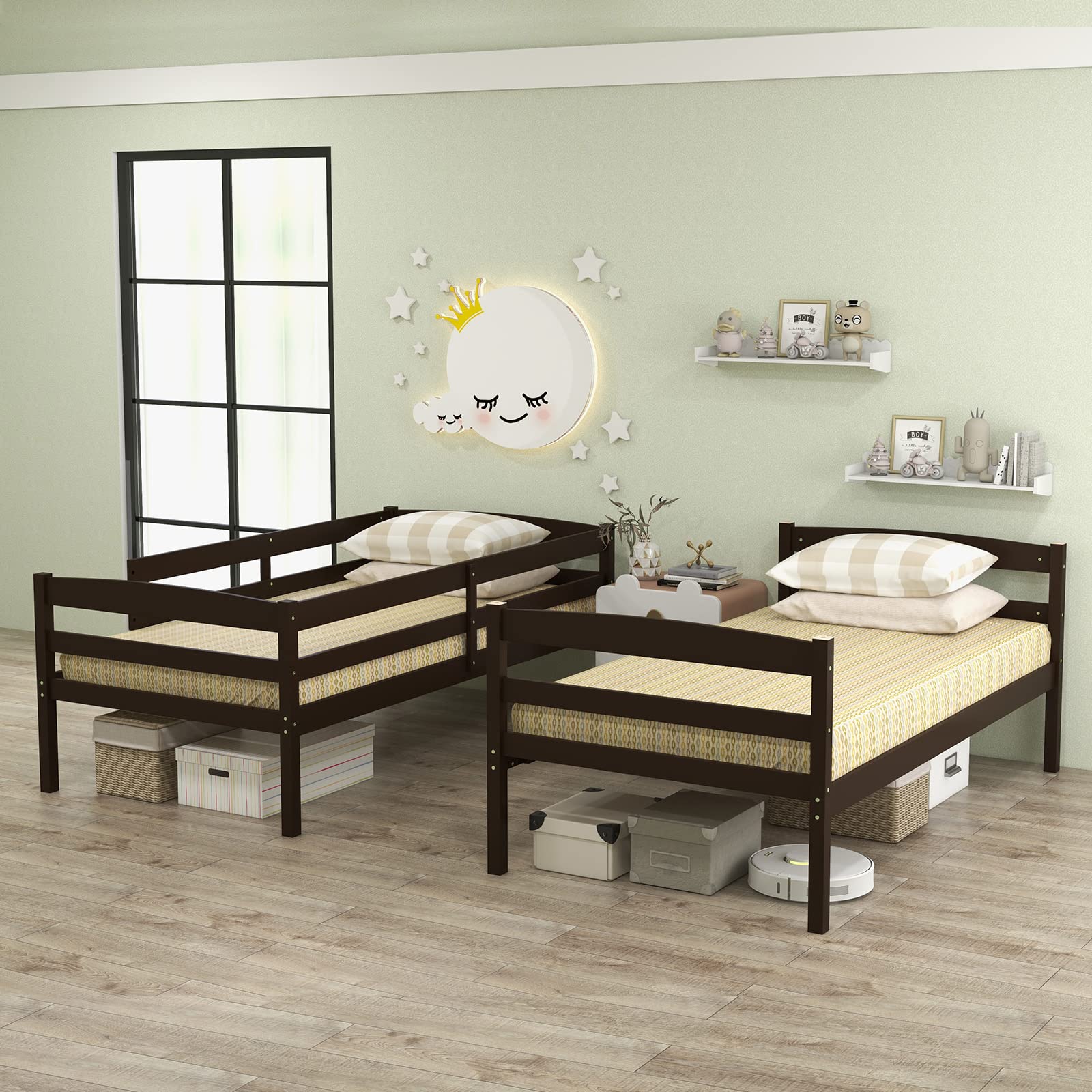 If you want a bed that perfectly combines function and style, this wooden bunk bed deserves a try. The bunk bed is crafted with a solid wood frame for reliable support and long-lasting use. Equipped with an anti-tilting anchor, you can fix the bunk bed to the wall to avoid falling down. This twin-over-twin bunk bed can be divided into 2 individual beds for more convenience, which is ideal for multiple-child families. 12" Full-length guardrails prevent your kid from falling down while the integrated adder offers easy access to the upper bed. Showcasing clean lines and modern design, this bed will bring a touch of elegance and warmth to a kid's room, guest room, dorm, or apartment.