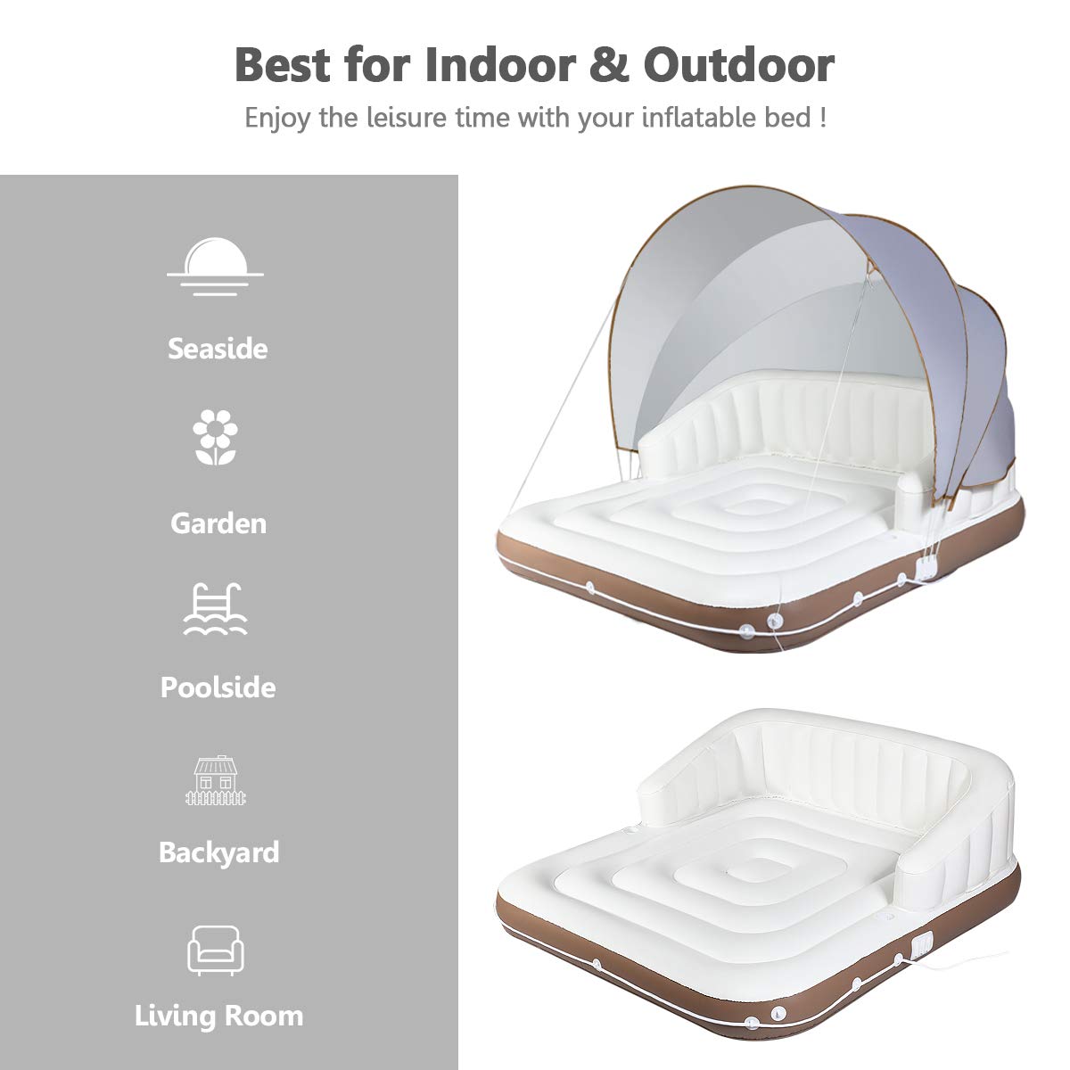- Widely Usage & 2 Cup Holders: With the dimension of 71" x 71" x 25.5", our canopy island is suitable for several people having fun in beach, swimming pool, patio or just placing at living room as a spare bed. Featuring with 2 built-in cup holders at both sides, you can keep your drinks within easy reach.