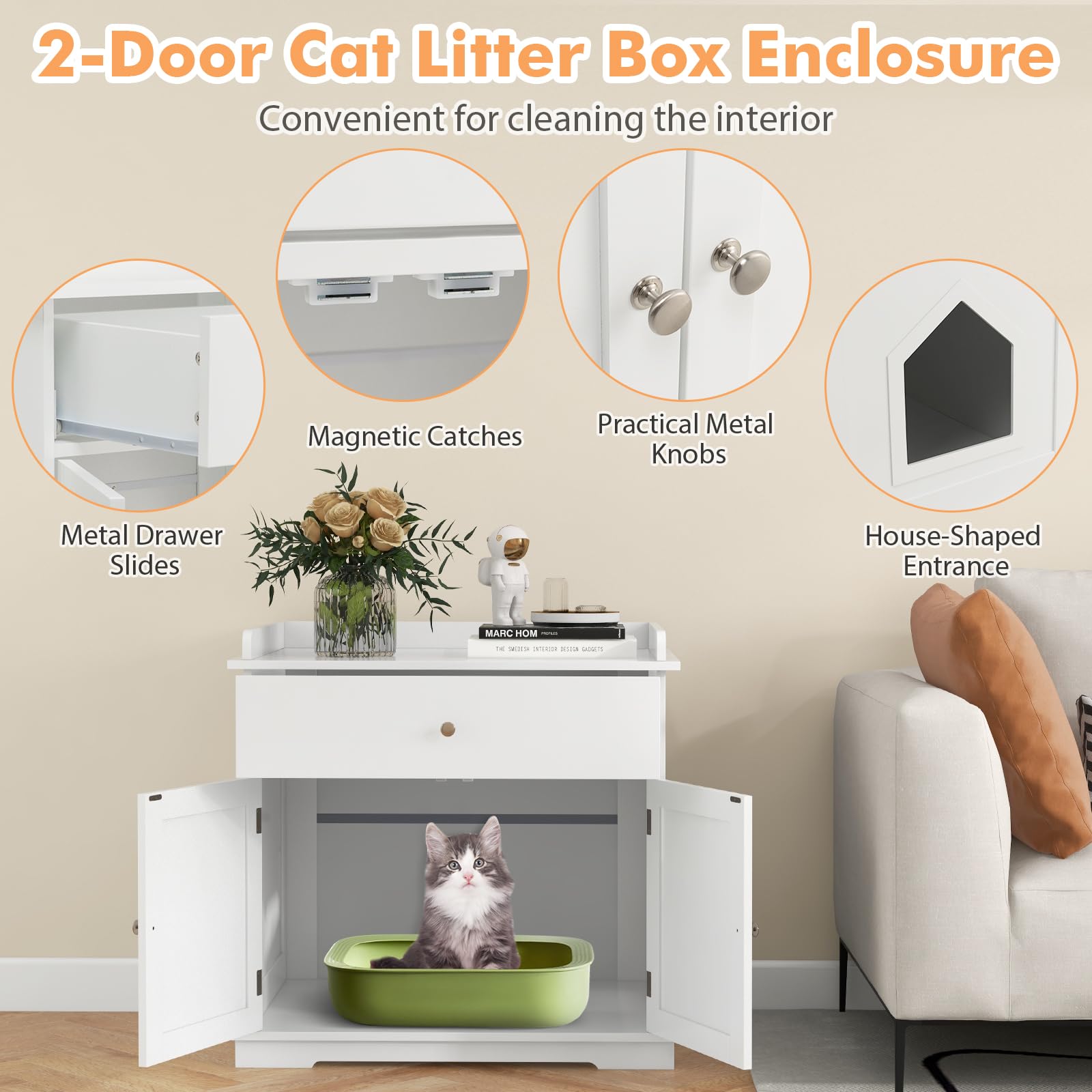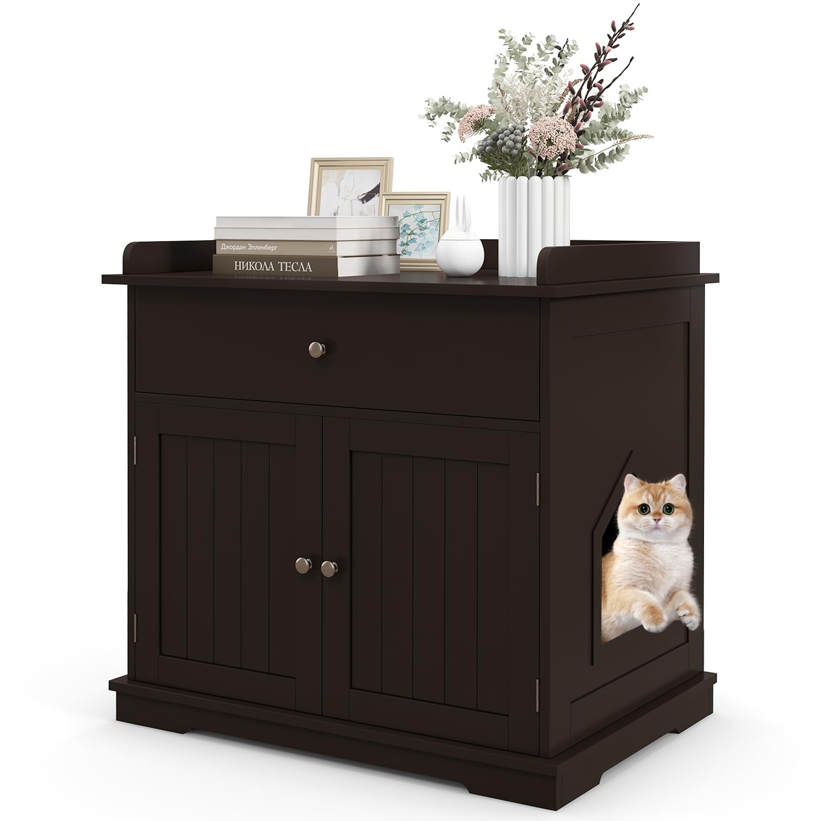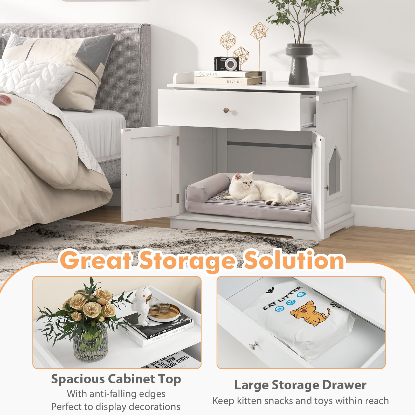 - 【Ample Storage Space】: Comes with a large drawer and a spacious cabinet top, the cat washroom hidden furniture provides a lot of space to store cat foods, cat toys, scoops, trash bags or other pet supplies.