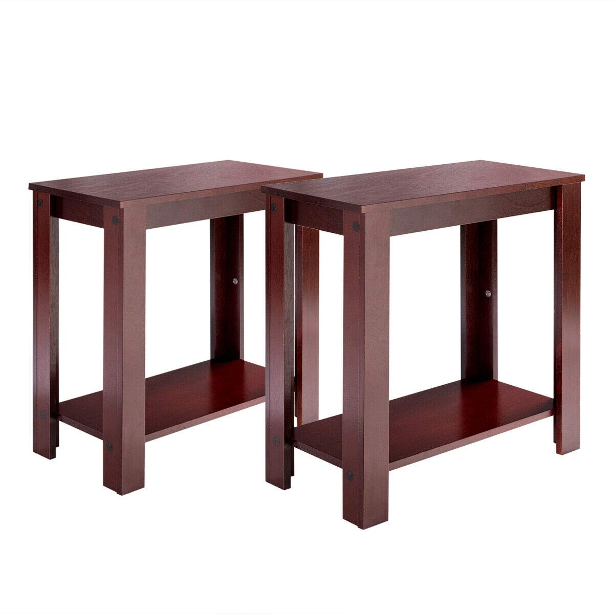 Wood chair side end table brings a unique and charming design element to any room. The size of the tabletop is the perfect balance between functional and space-saving and thelower shelf provides additional space for accent pieces or other small items. Made from a combination of solid wood and wood veneer, the end table will not wobble, warp, or split. Its above-average height and narrow legs make the solidwood tall end table above all others.