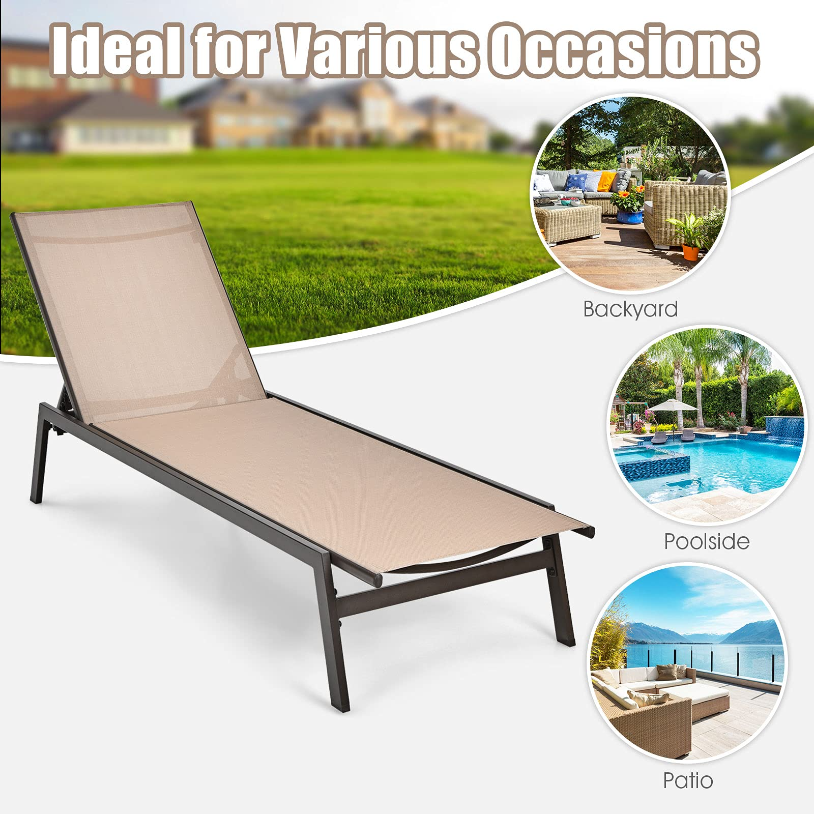 - Perfect for reading, sunbathing or resting with 6-position adjustable backrest