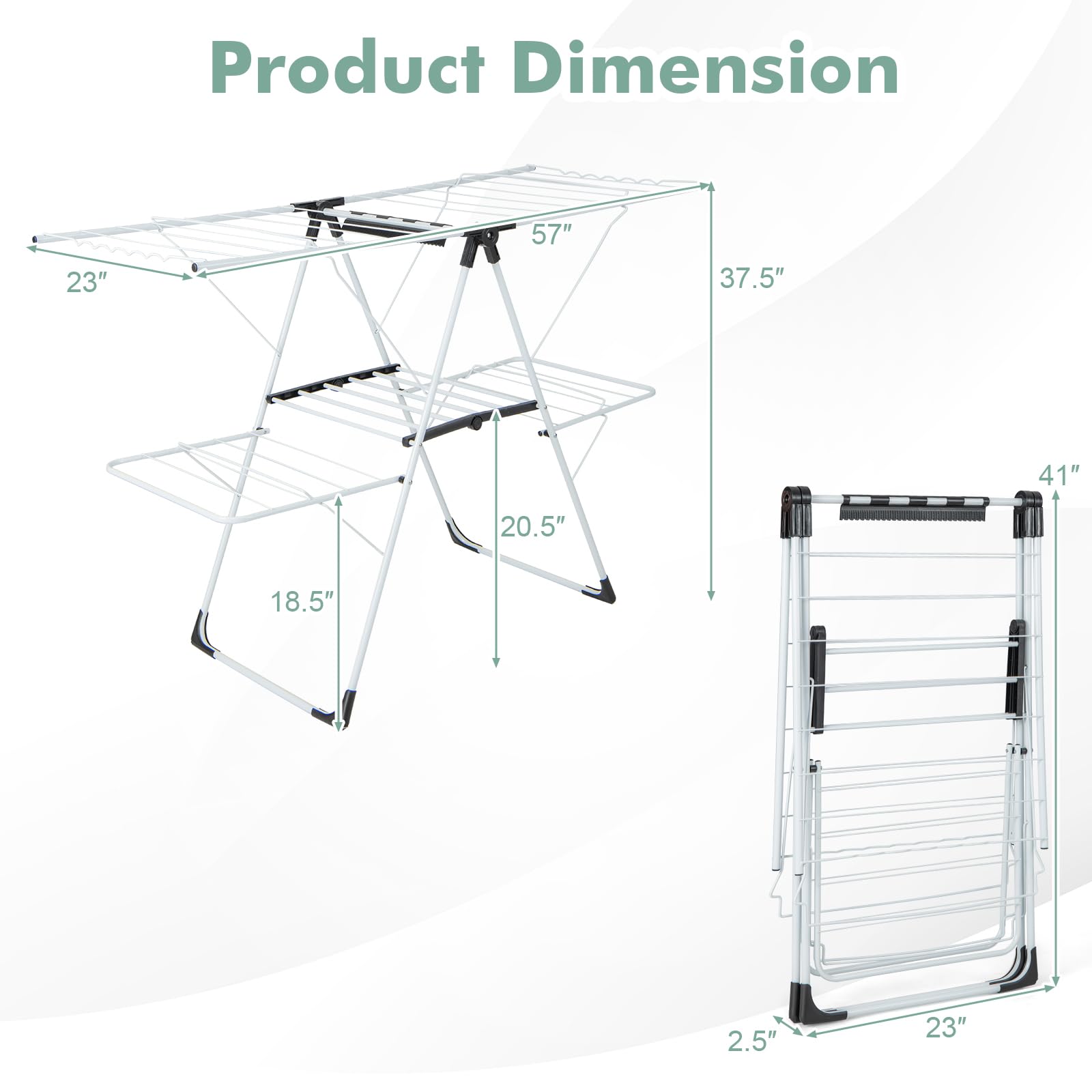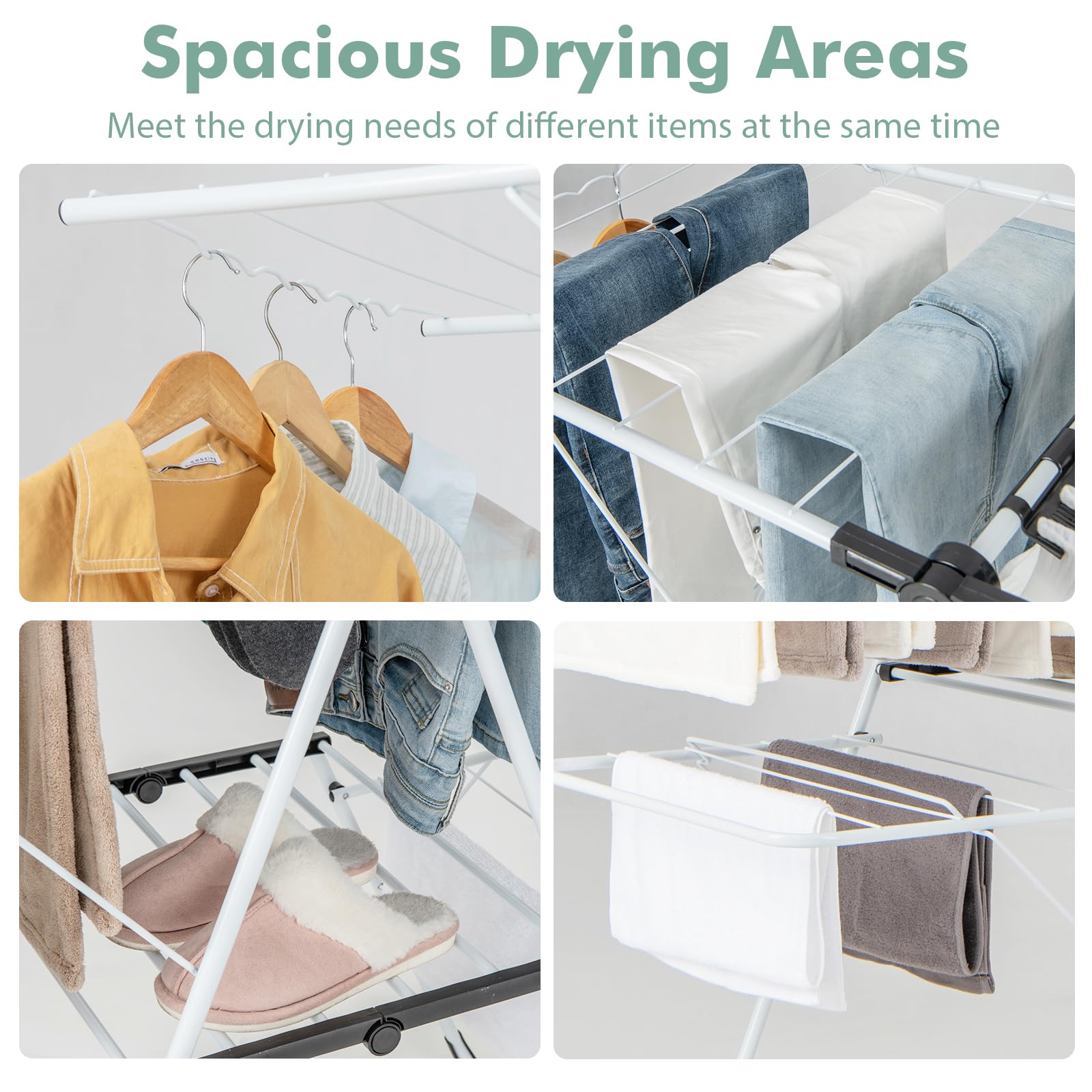 - Spacious Drying Areas: With its 2-level design, Giantex drying rack can meet the drying needs of different items at the same time. Whether you have large items like dresses and pants or smaller items like socks and tank tops, this rack has you covered.