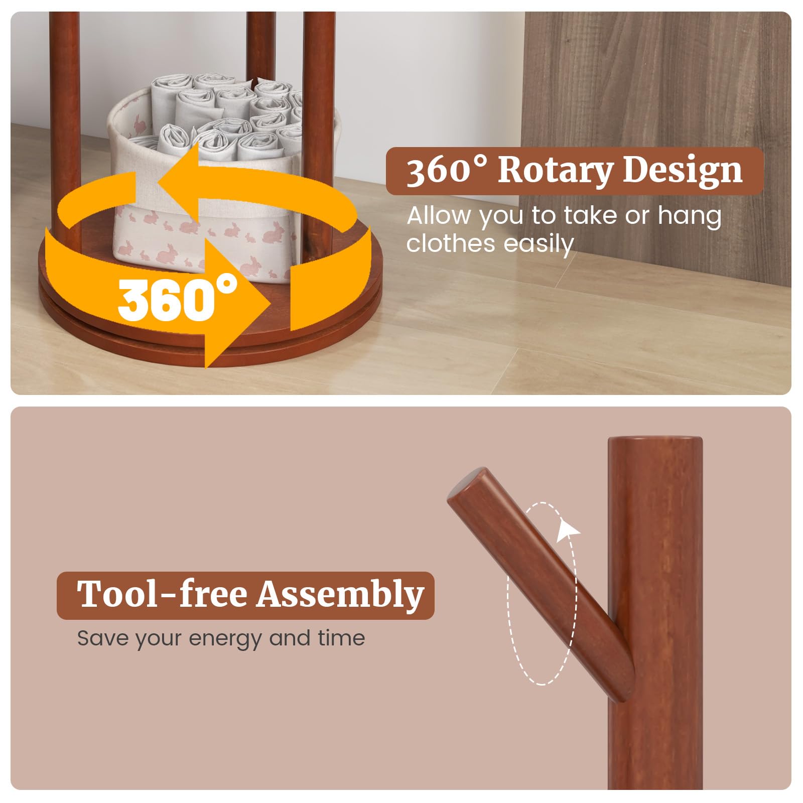 - [360° Rotary Design]: The 360° rotary design allows for effortless access to your clothes. Simply spin the garment rack to hang or retrieve your garments with ease. The reinforced connection ensures stability for a seamless experience.