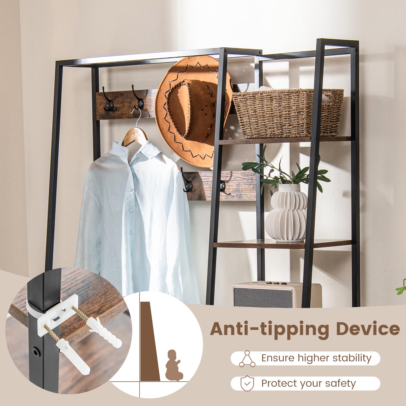 Angled ladder structure keeps the hall tree more stable and sturdy