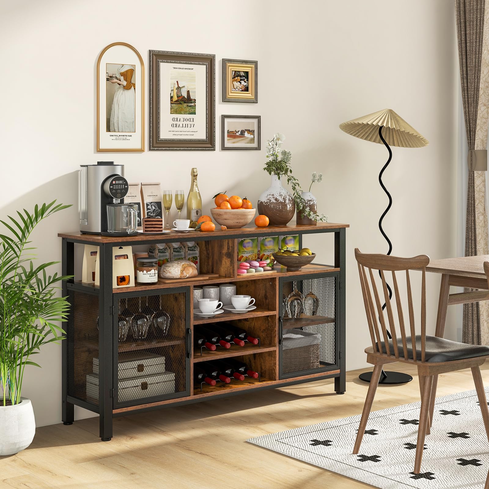 - Other Storage Options: The buffet sideboard provides you with a spacious tabletop, a 2-partition open shelf, 2 metal mesh door cabinets and 3 open shelves, which is great for kitchen essentials. Say goodbye to clutter!