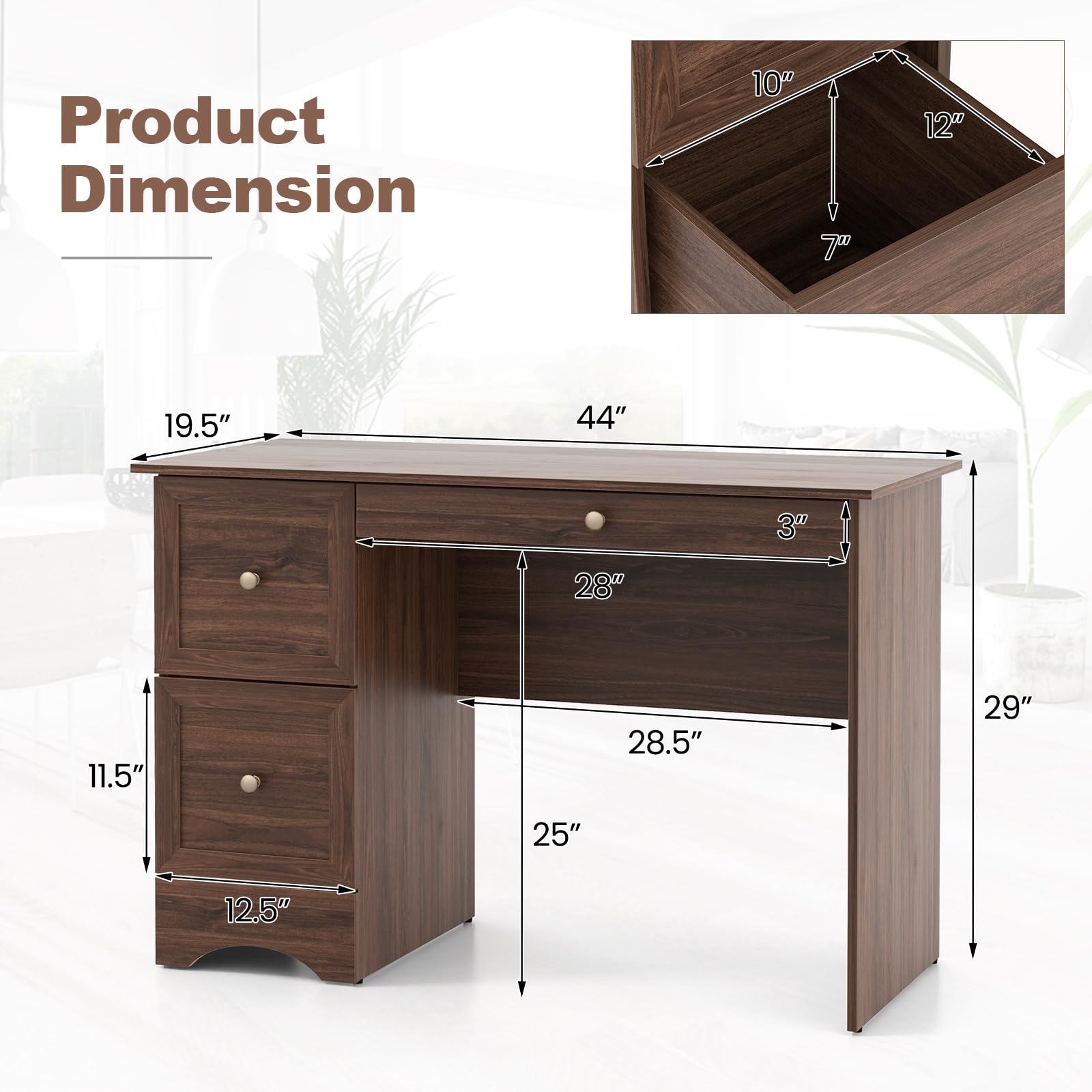 - Spacious & Comfortable Workspace: This home office computer desk offers a generously-sized desktop measuring 44" x 19.5", providing ample space for all your essential office or study supplies. With its spacious legroom, you can work comfortably and fully immerse yourself in your tasks.