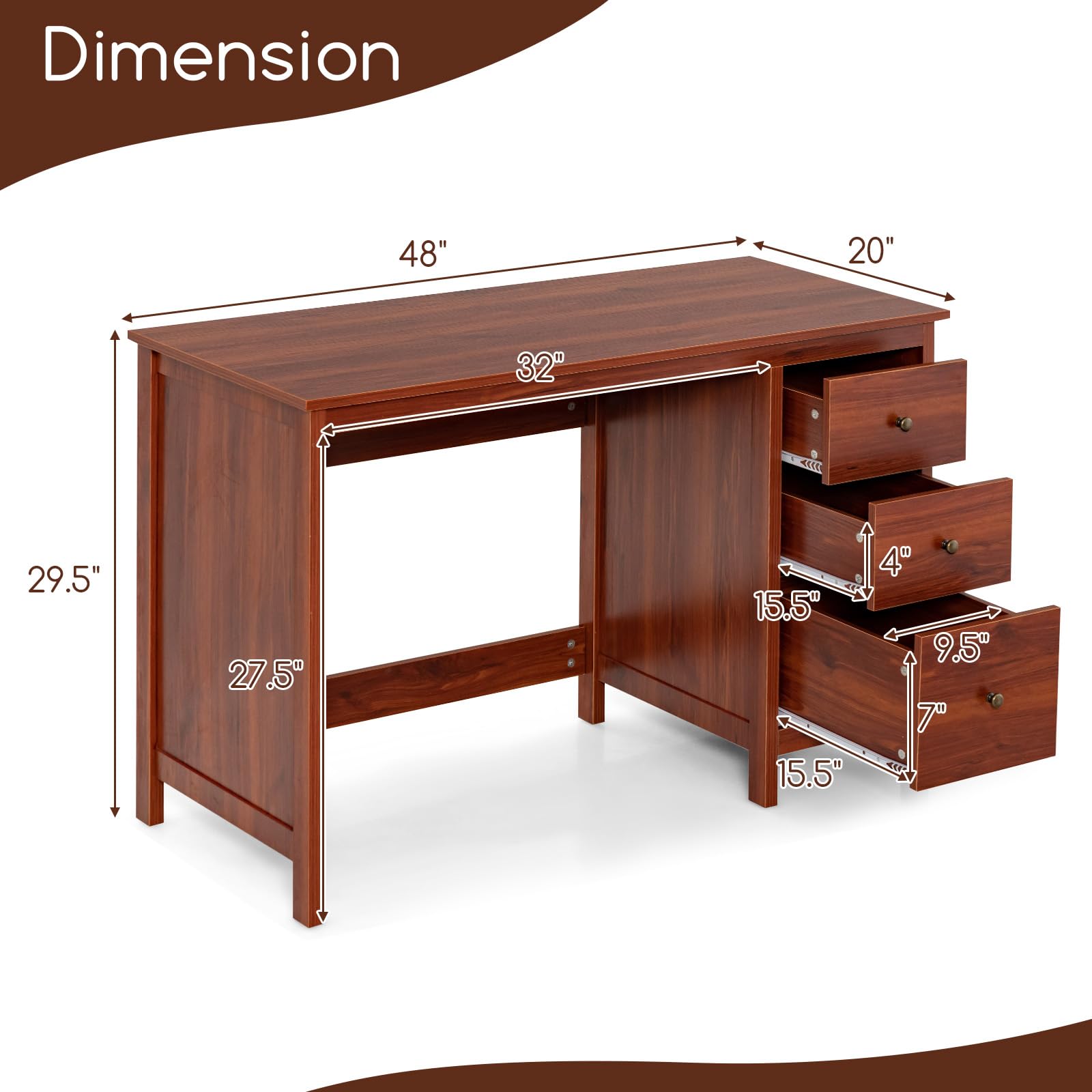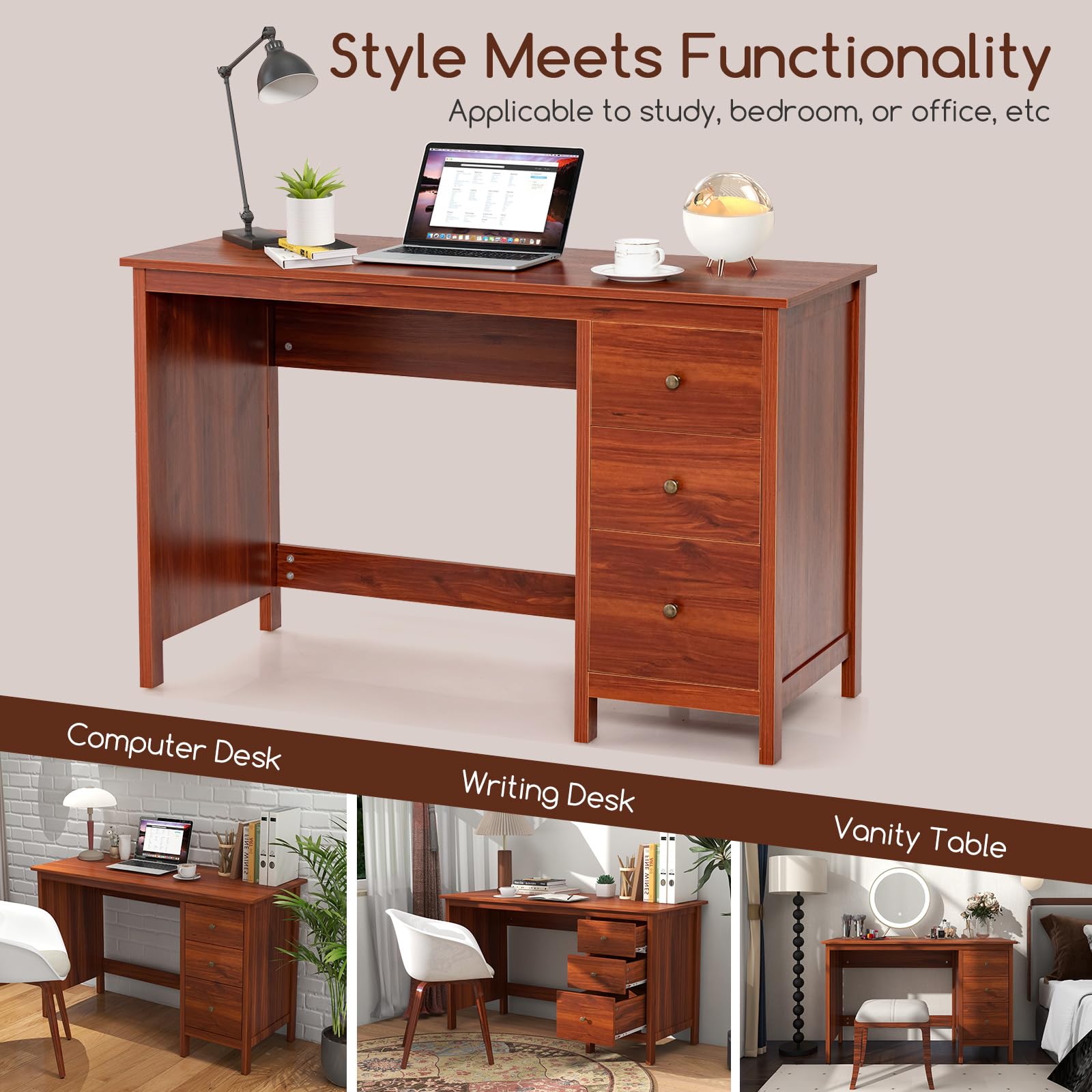 Used as a computer desk, writing desk, study desk or vanity table