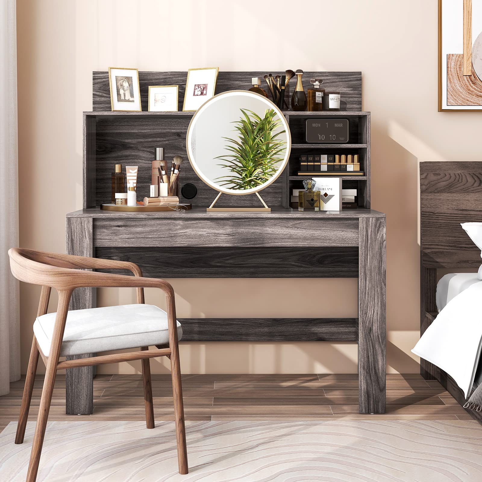 As a combination of a 48" desktop and a large bookshelf, the home office desk works as a perfect workstation, offering ample workspace and holding office essentials handy. Also, it has a cable management hole to avoid messy wires. Thanks to strong boards, the executive desk features a reliable frame with an overall load capacity of up to 250 lbs. More, anti-tipping kits will further enhance the using stability. With anti-slip pads, you can place the computer desk in the study, living room, or bedroom without scratching the floor.
