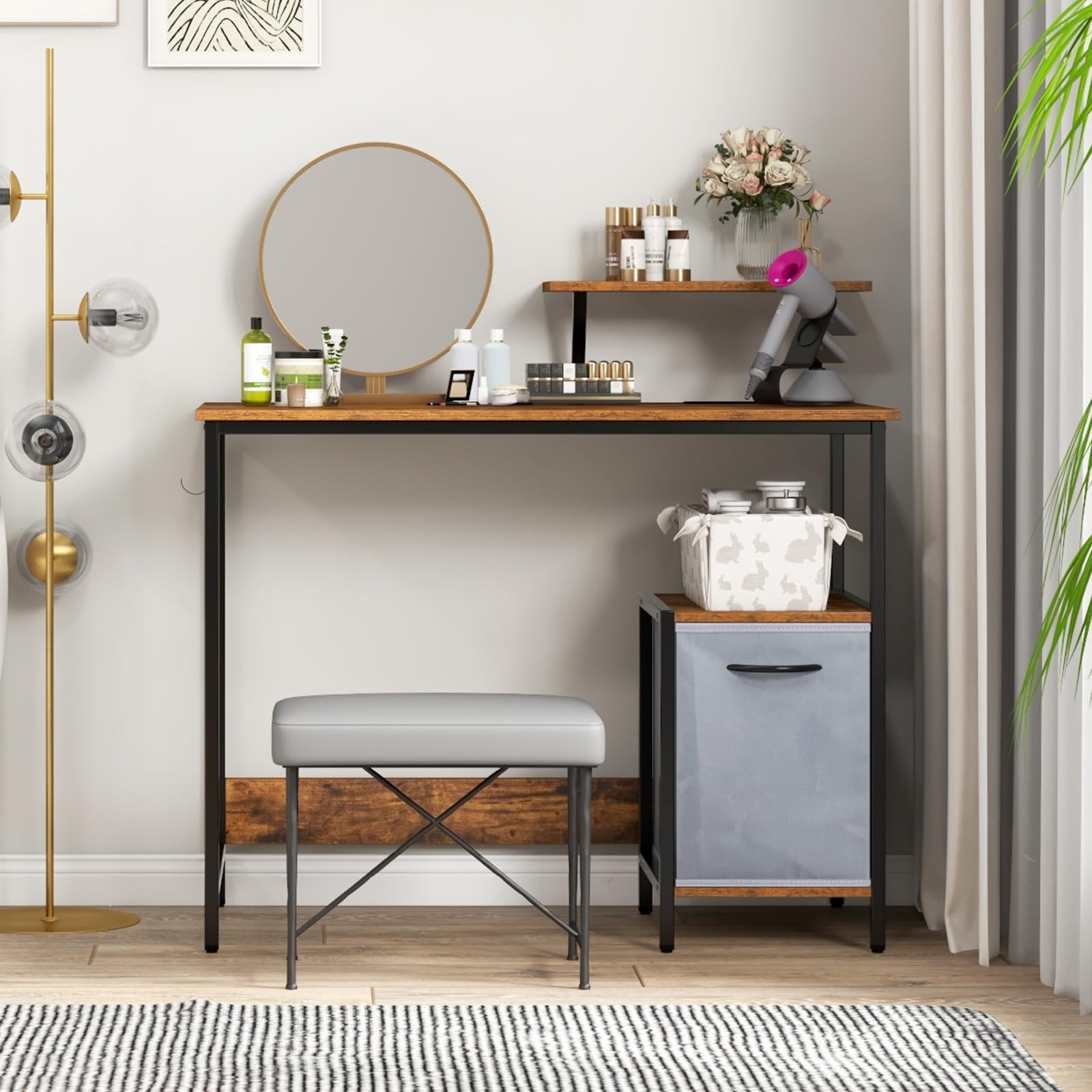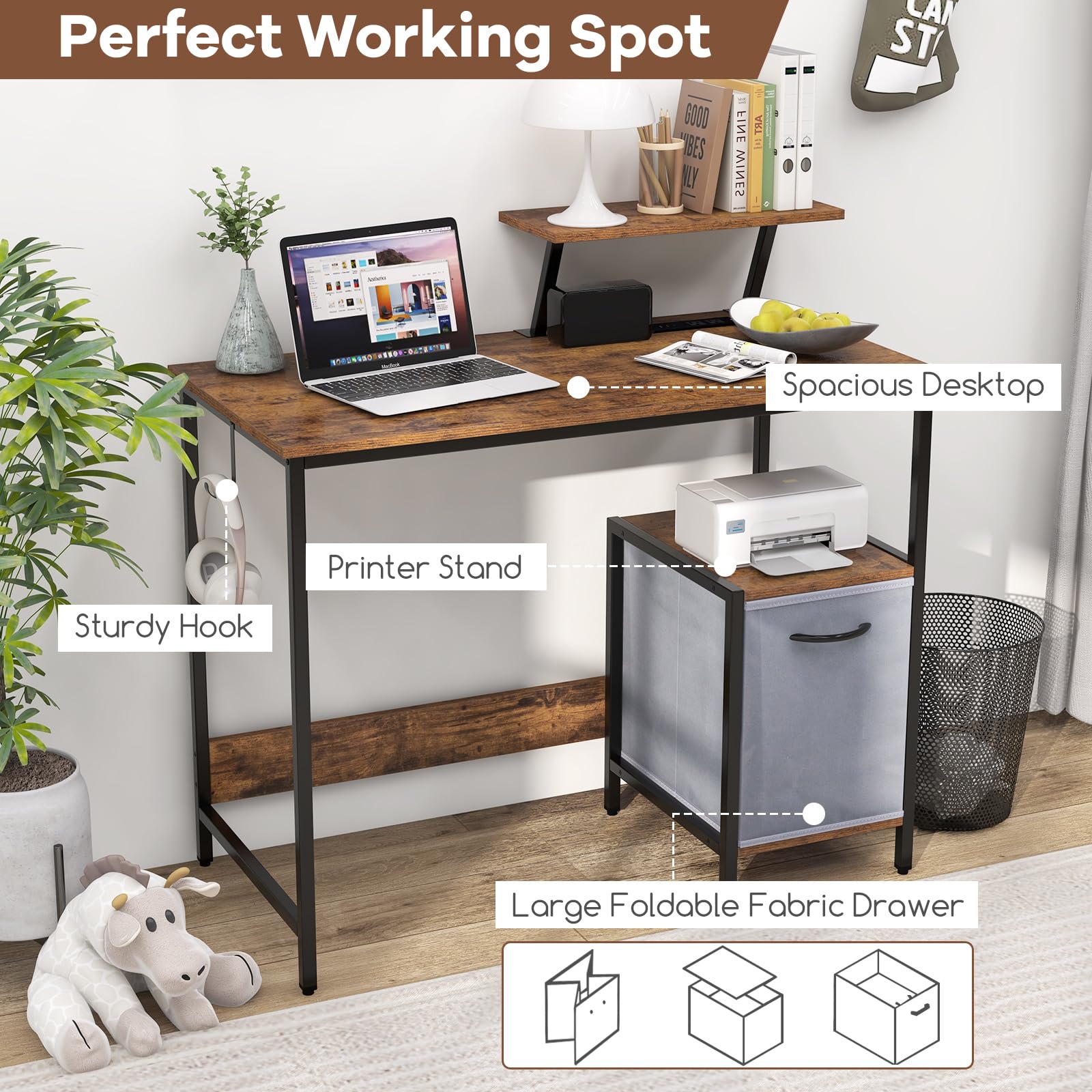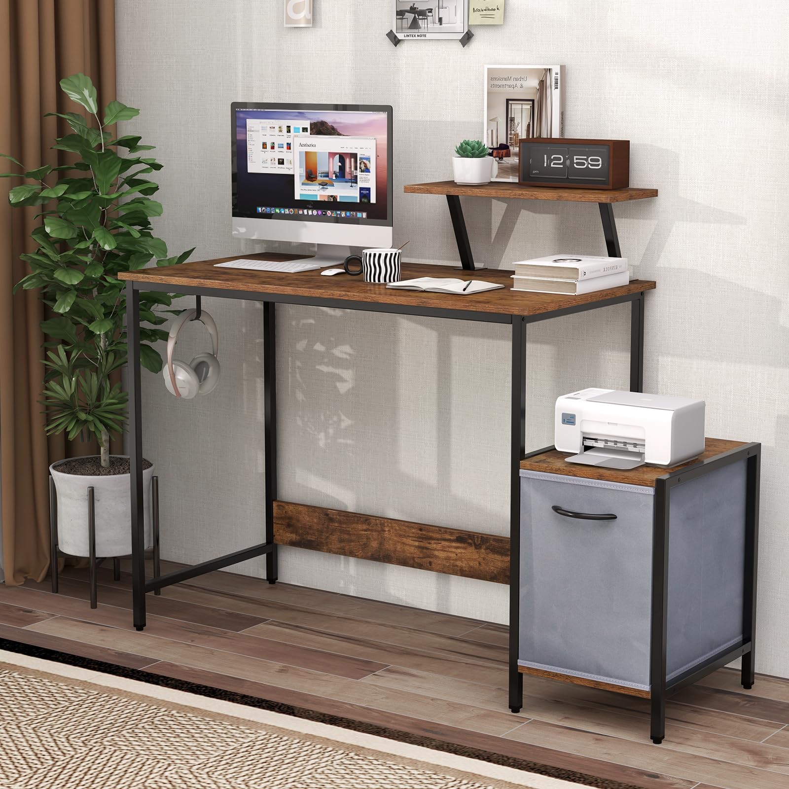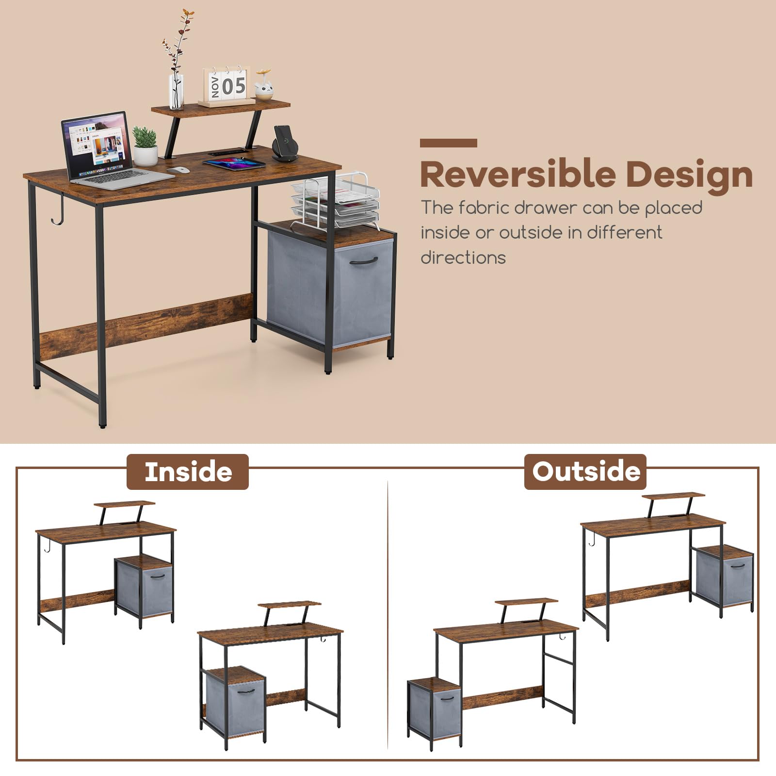 - [Raised Shelf & Reversible Drawer]: The fabric drawer can be placed inside or outside in different directions, which allows you to arrange your desk for maximum efficiency. Besides, the raised shelf provides extra storage space for books, office supplies, etc.