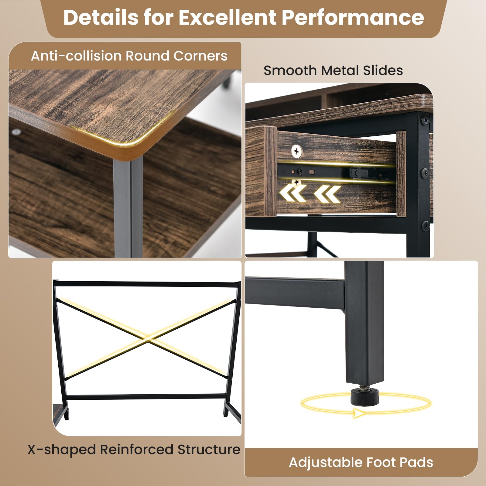 - Details for Excellent Performance: Anti-collision round corners can avoid accidental hurts for safety. Smooth metal slides can achieve easy pull of the drawer. X-shaped reinforced structure provides additional stability and durability. The adjustable foot pads keep the table stable on an uneven floor.