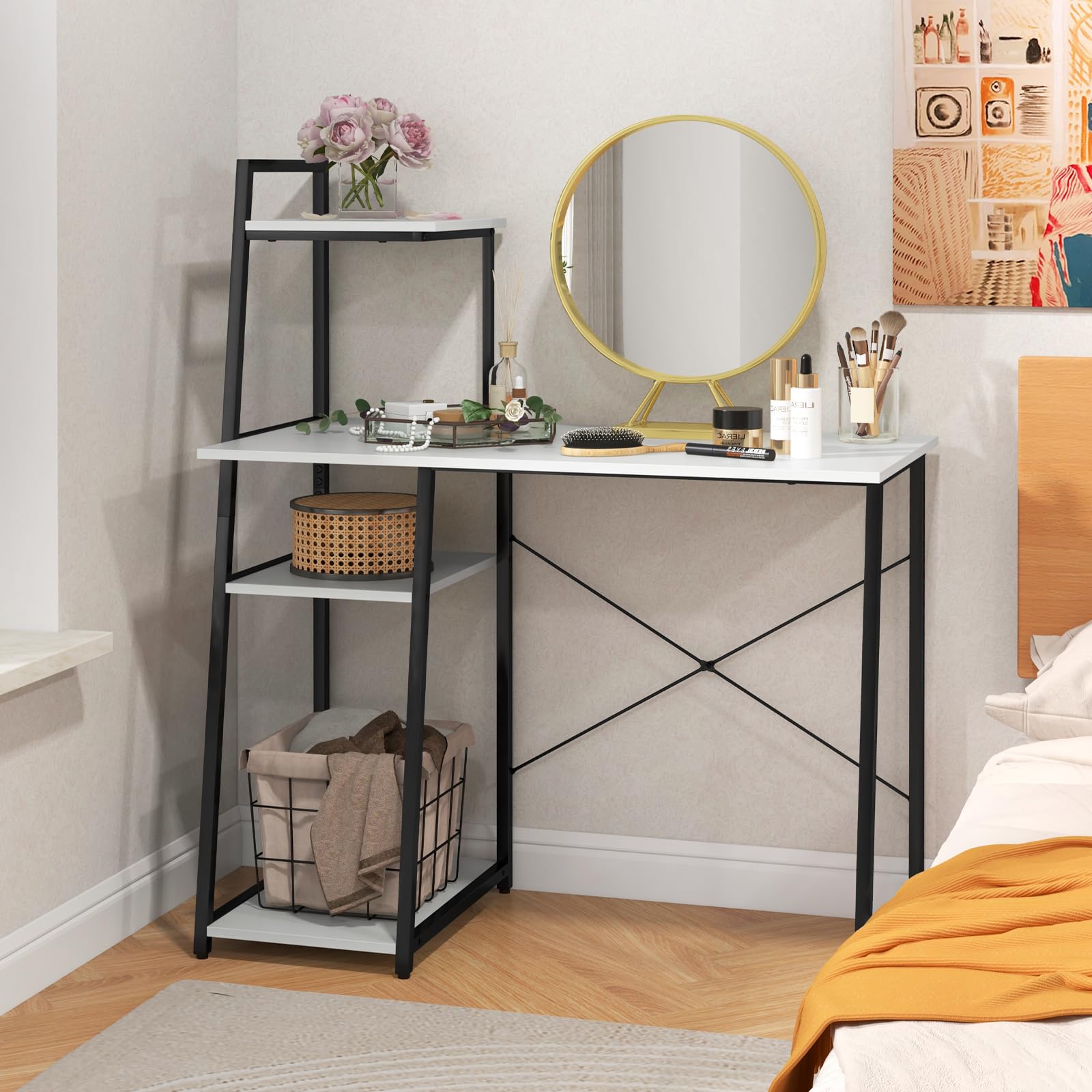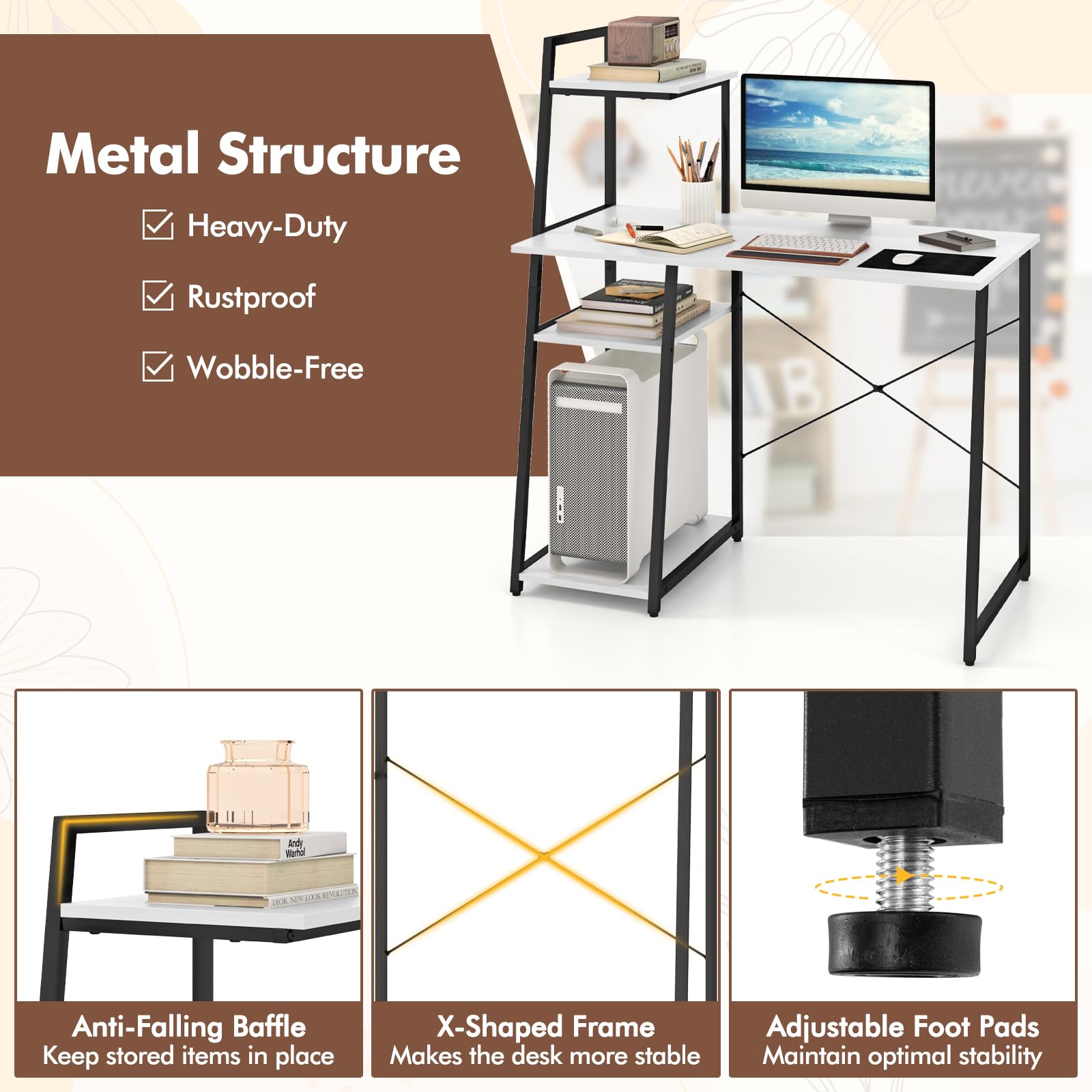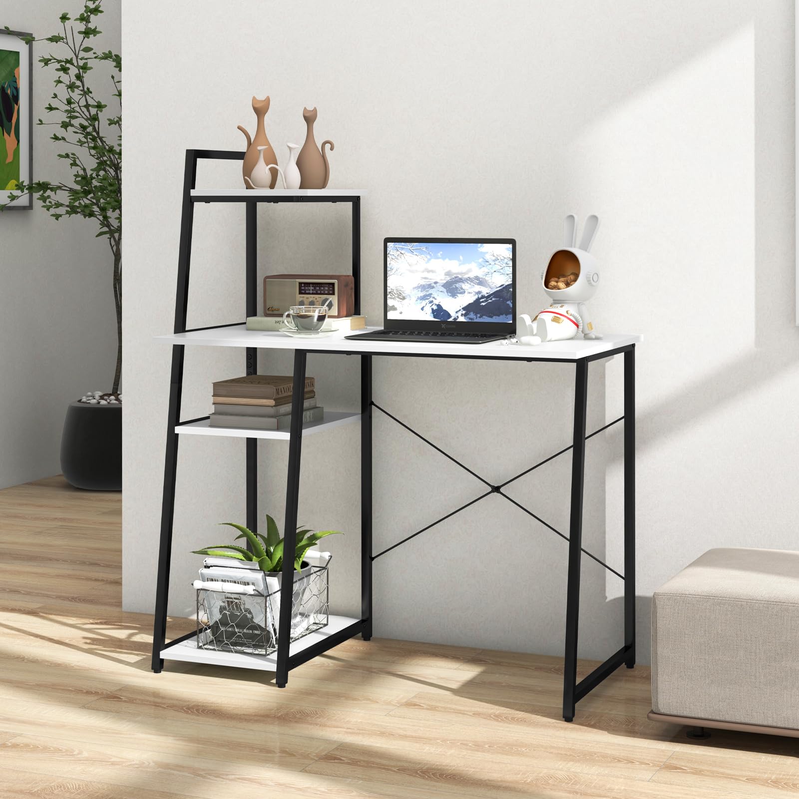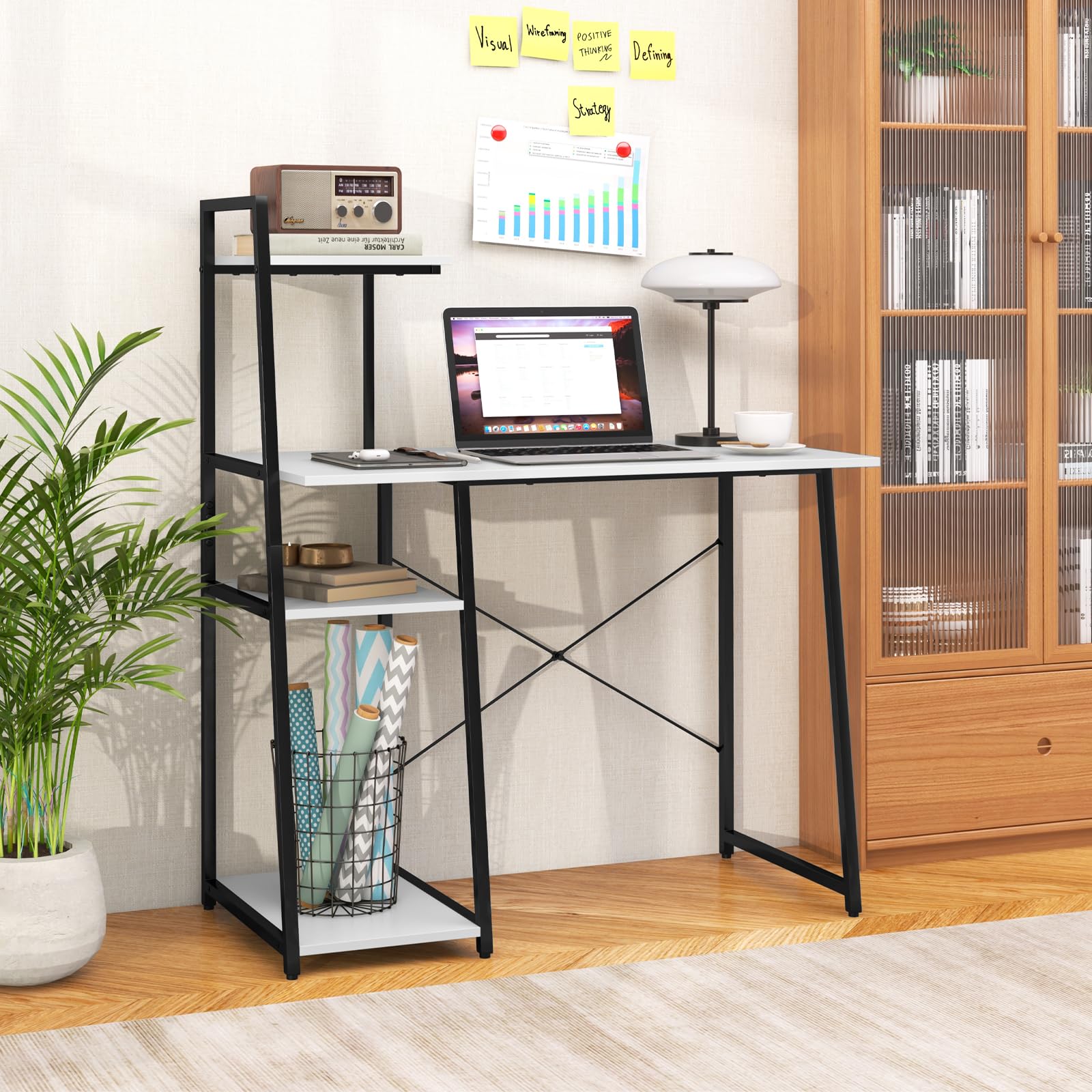 - [More Storage Space]: The study writing desk features a spacious side bookshelf with an anti-falling baffle to safely stash your books. Coupled with a host stand, this desk ensures your essential computing equipment is secured and accessible.