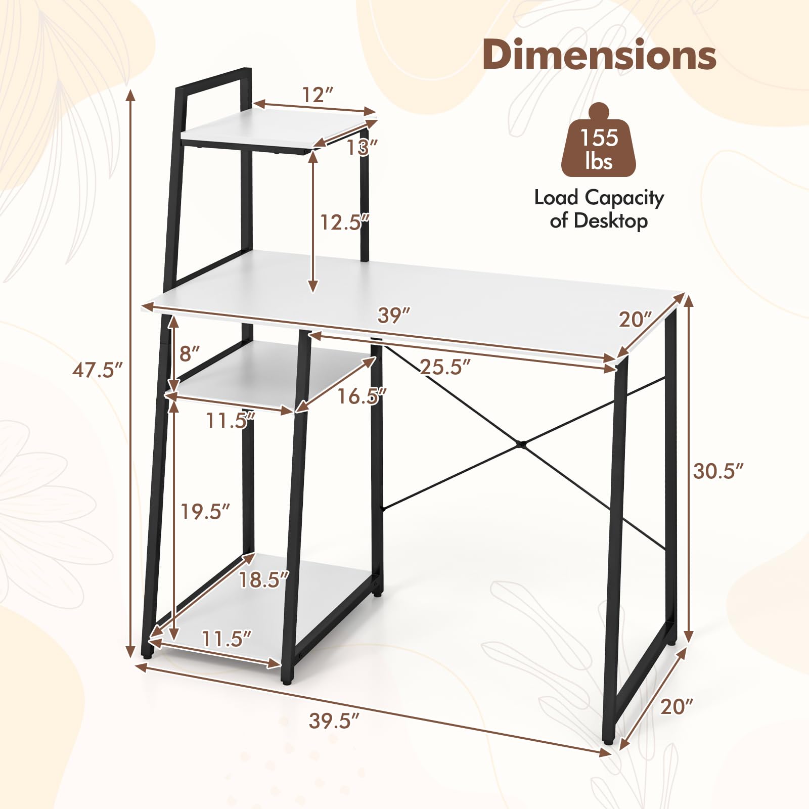 - [Space-Saving Design]: Ideal for compact office areas, the home office desk features a 39”L x 20”W desktop. The computer desk is designed for high efficiency in limited spaces, making it a practical choice for those seeking functionality.