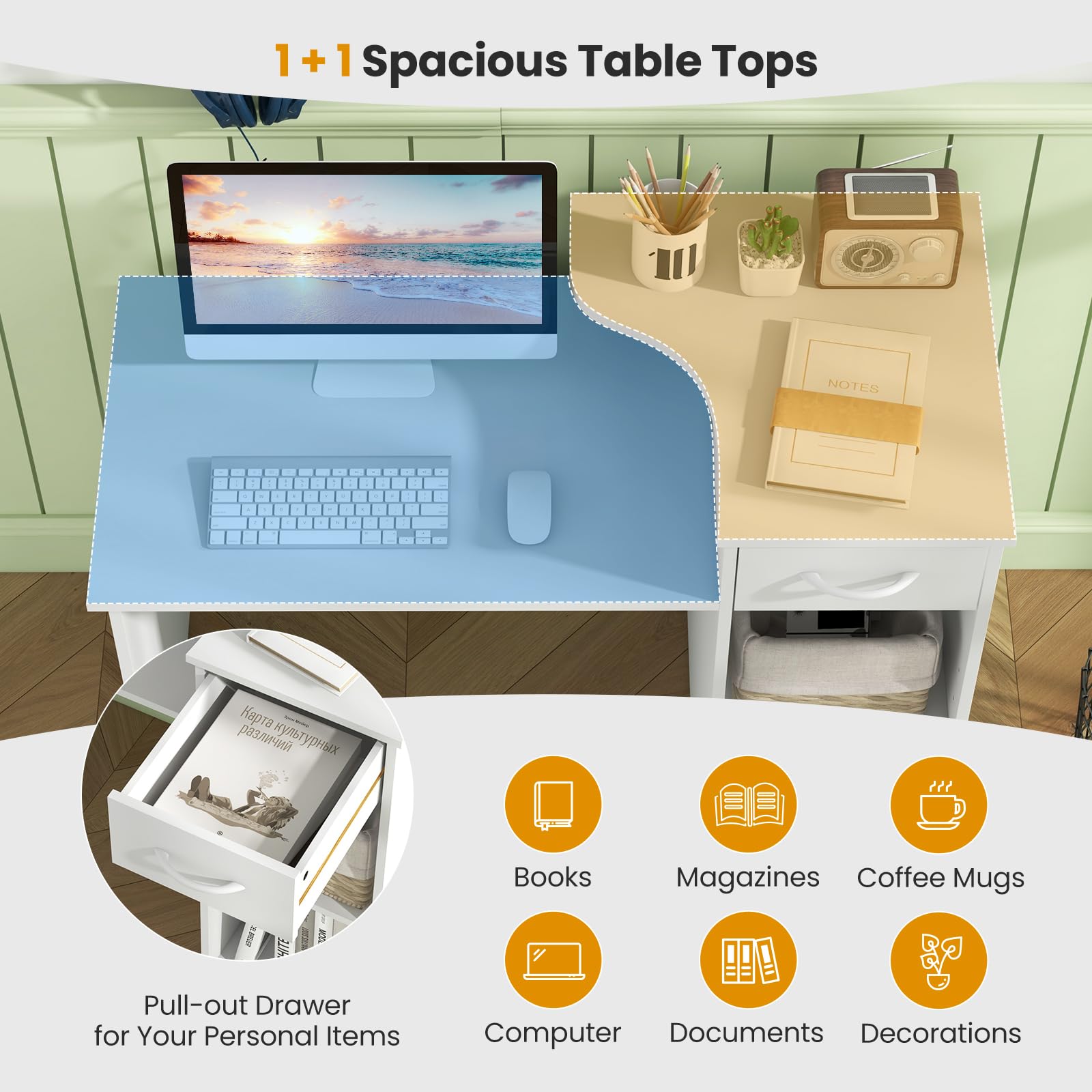 - Organize with Ease: Elevate your workspace organization with the wide tabletop and convenient slide-out drawer of this computer desk. Keep essentials close at hand for a tidy and efficient work environment.