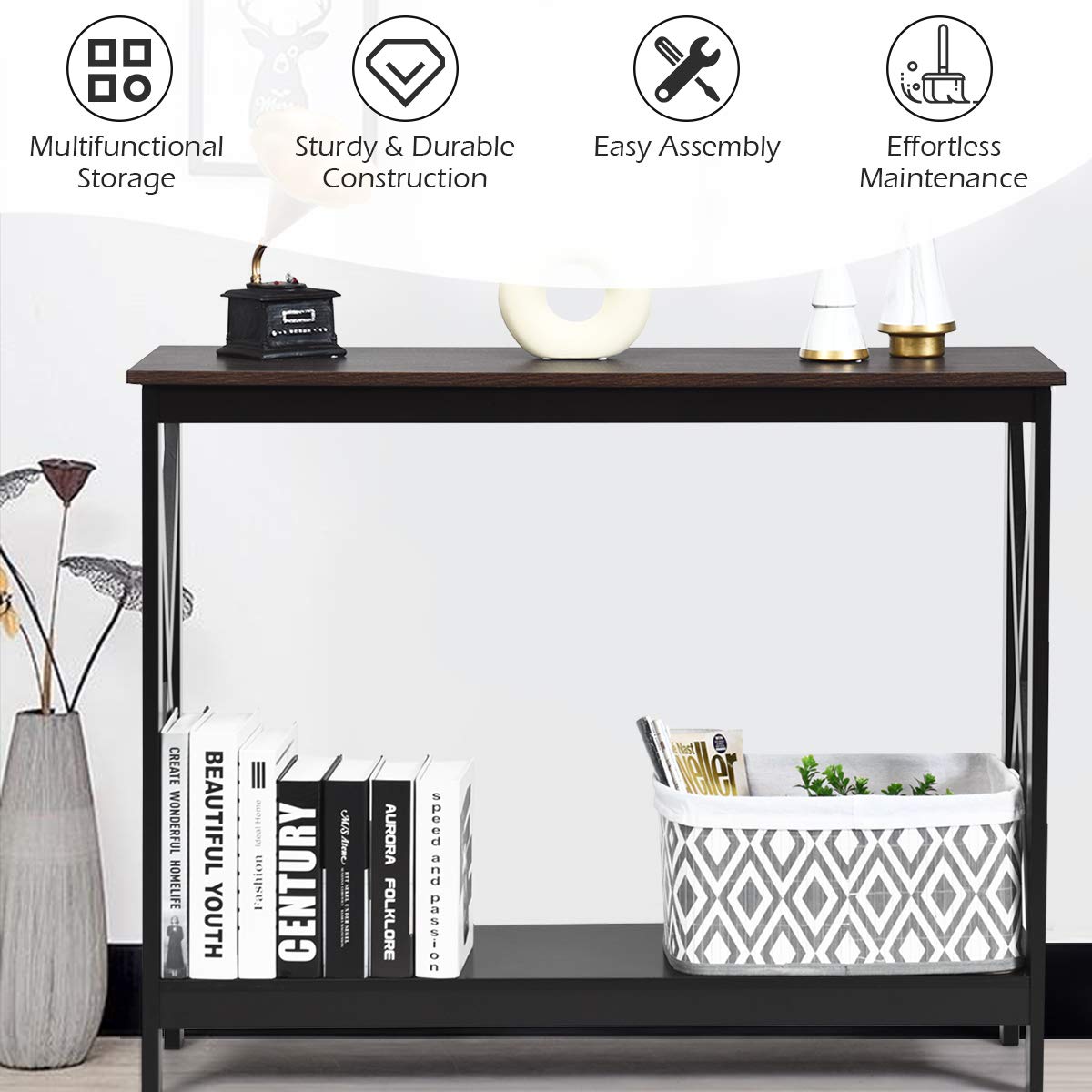 - Package includes: 1 x 2-tier Console Table; 1 x Instruction