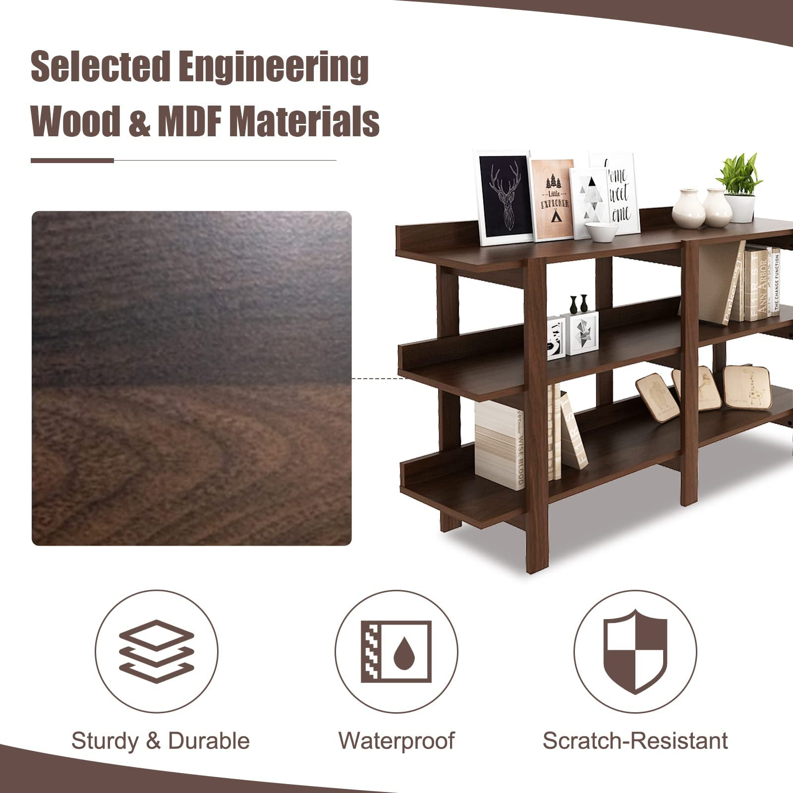 With 3-tier open shelf, this organizer provides sufficient storage room for belongings while making good use of your space. Crafted from selected engineering wood and MDF material, it is strong enough for long-lasting durability. You don't have to worry about items accidentally falling thanks to the protective baffle. This rustic functional sofa table will add highlights and elegance to many places.