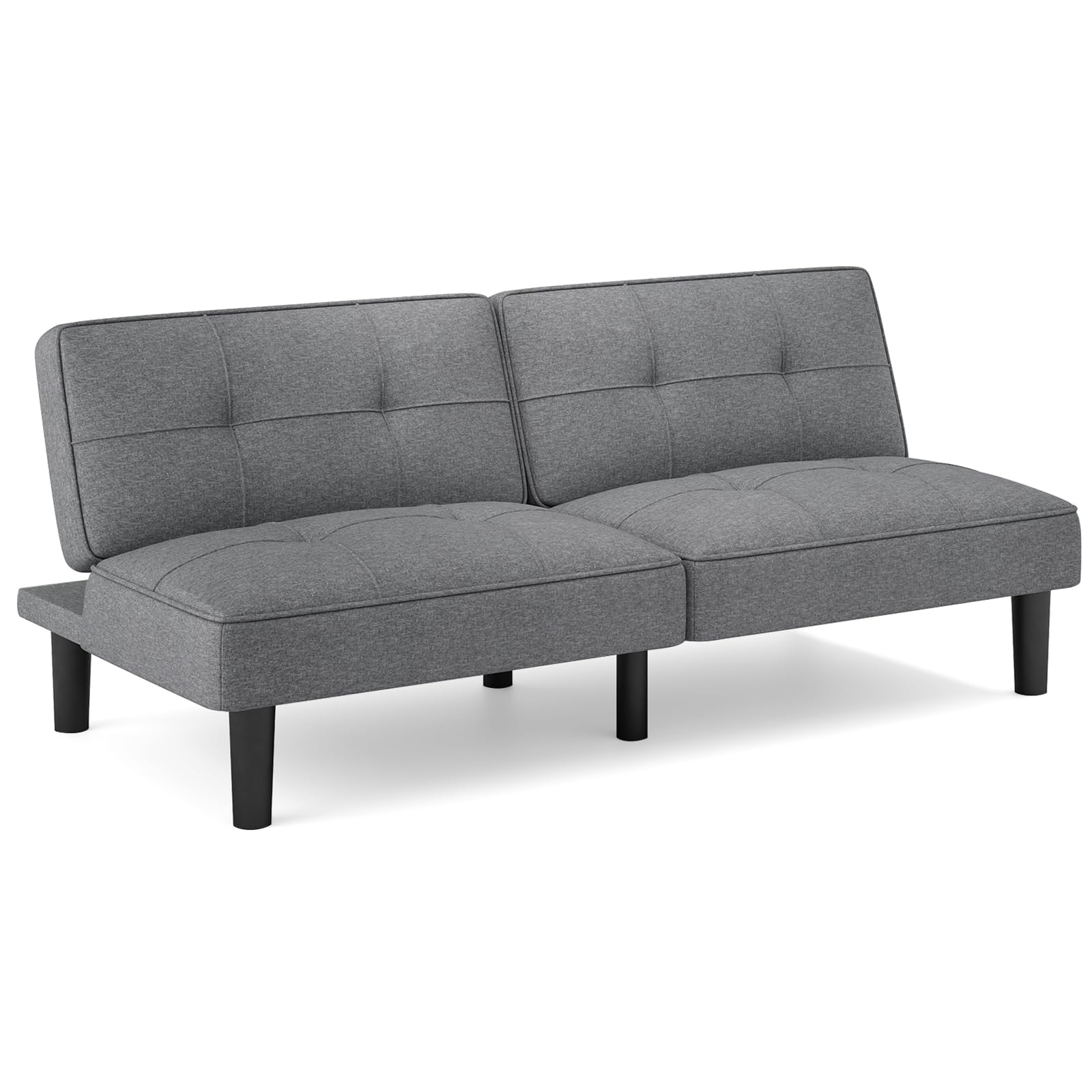 The key feature of this convertible sofa bed is the 6-position adjustable backrest which allows you to customize your seating experience. Whether you're sitting up to read, lounging back to watch a movie, or laying the futon flat for overnight guests, the adjustable backrest offers seamless transition between positions. Upholstered in modern linen fabric and filled with soft sponge, the upholstered couch bed provides plush and cozy sitting experience for you. Besides, the robust construction is complemented by 6 support legs and solid wood frame. Transform your home into a cozy and inviting retreat with this modern sofa bed!