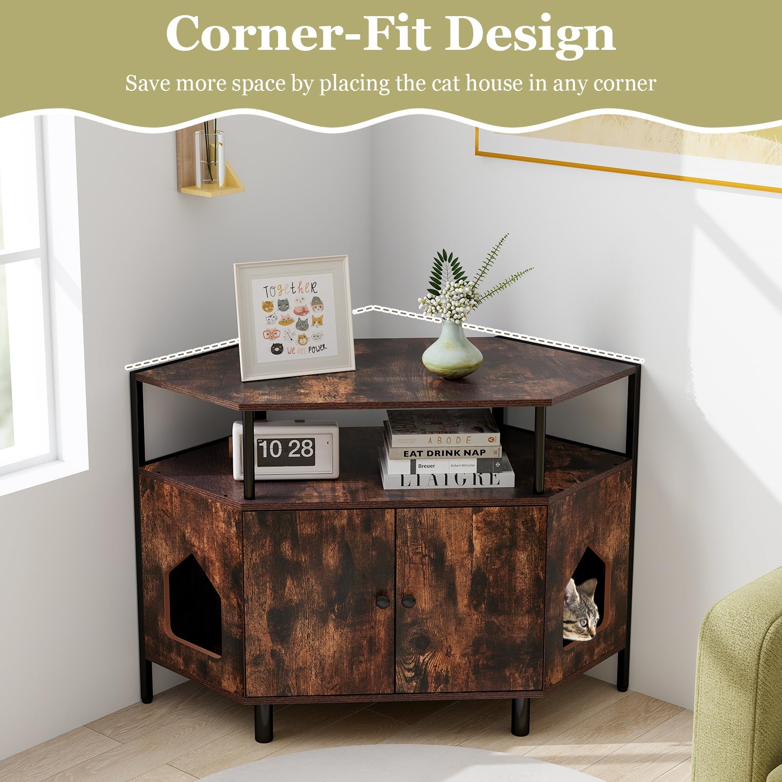 Create a cozy retreat for your cats with this versatile cat cabinet. Designed to snugly fit into any corner of your home, it optimizes space while enhancing aesthetics. The 2-door system ensures easy cleanup, while ample private space and an enclosed frame hide unpleasant smells. Dual entrances allow for convenient access. Beyond being a hideaway, the robust cabinet top surface and shelf offer ample storage for your cat’s essentials, doubling as a chic decoration spot. Engineered for stability, it supports up to 198 lbs and sits securely on adjustable pads, ready for uneven flooring.