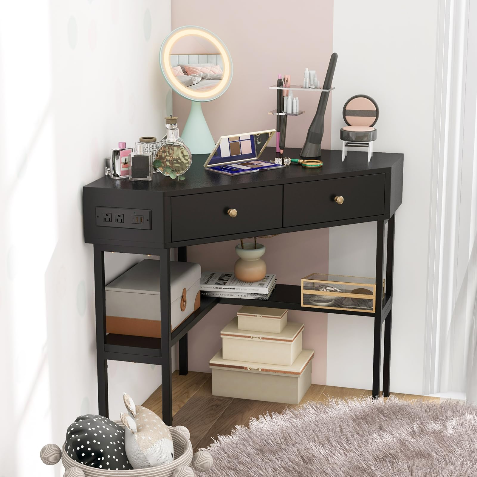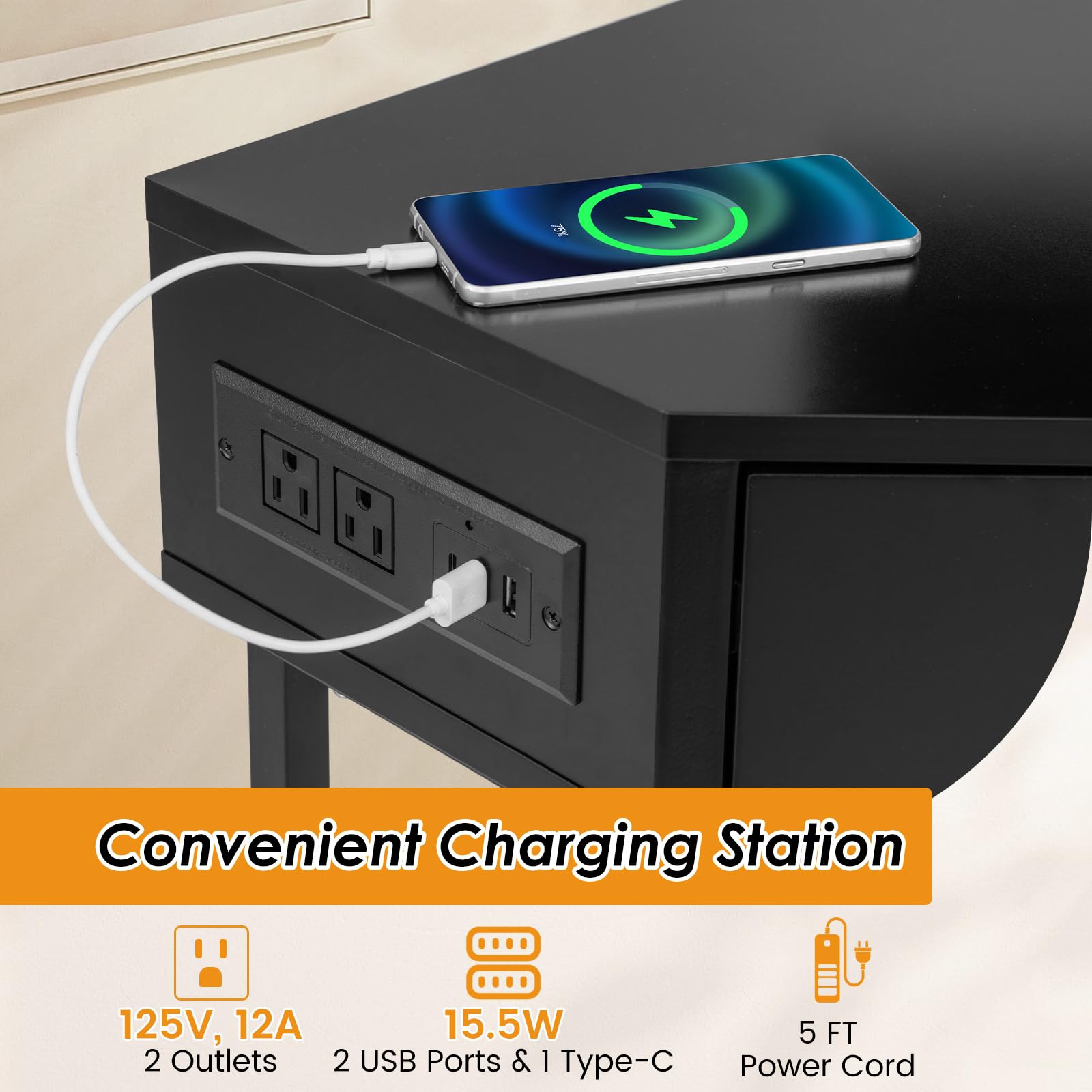 - [Convenient Charging Station]: The corner desk features a built-in charging station for convenient charging. 2 outlets, 2 USB ports & 1 type-C port can easily charge your devices while working, keeping them within reach and reducing the need for messy extension cords.