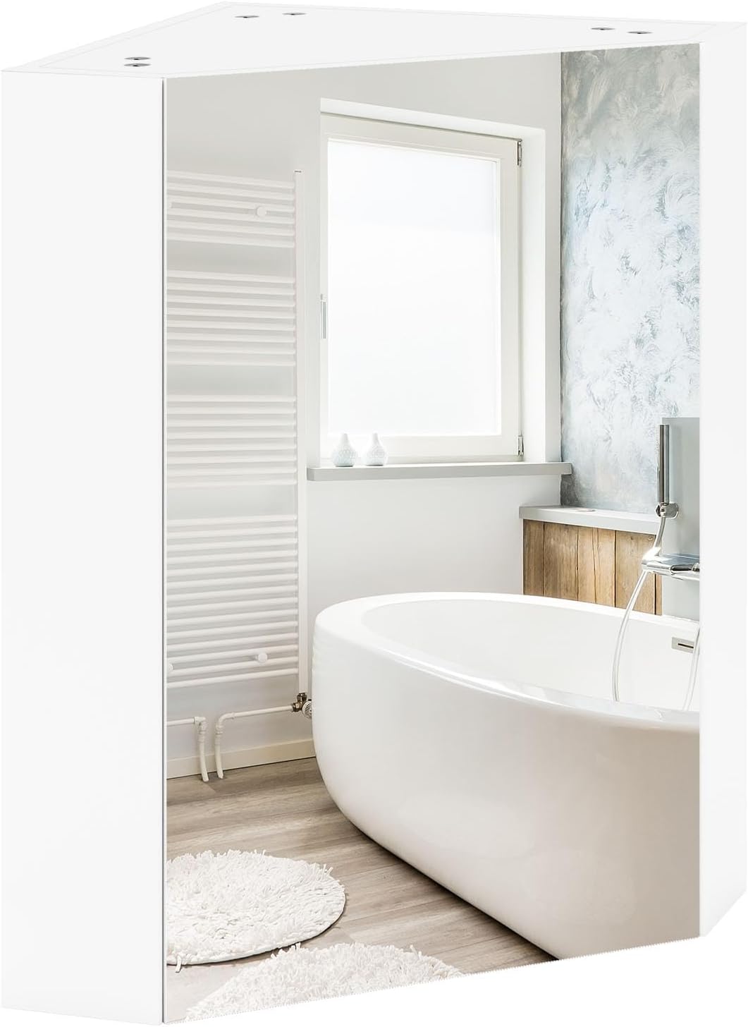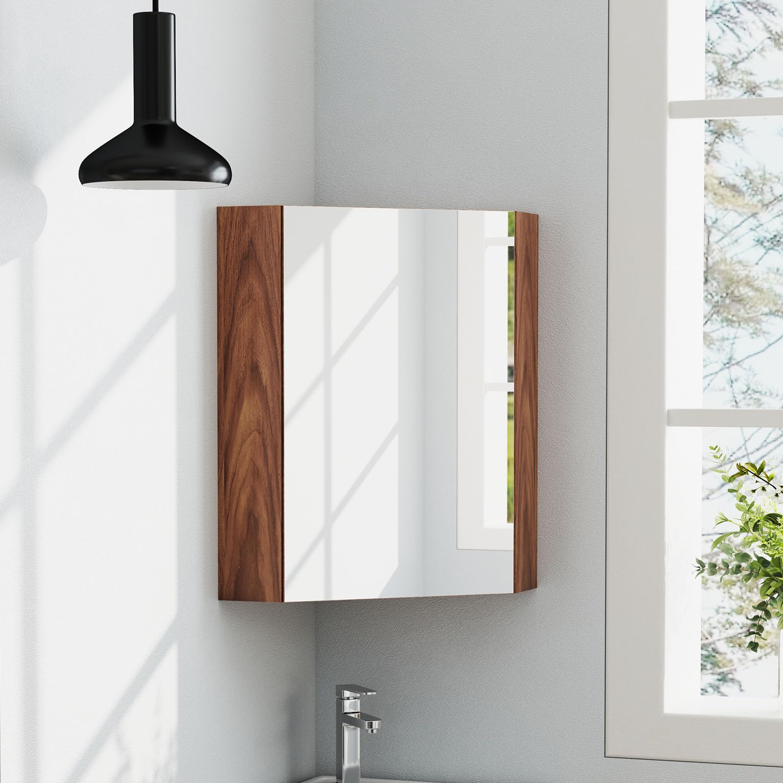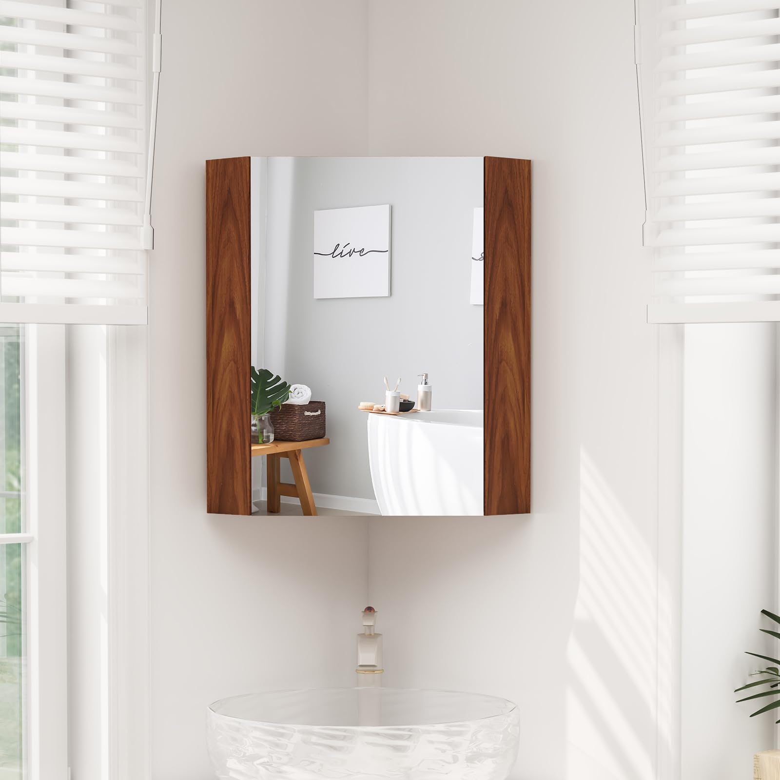 Elevate your bathroom organization with our corner medicine cabinet with mirror.