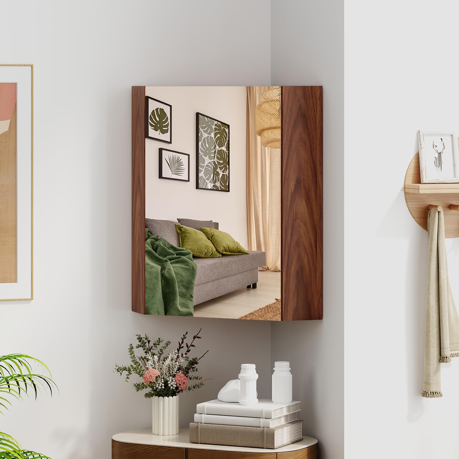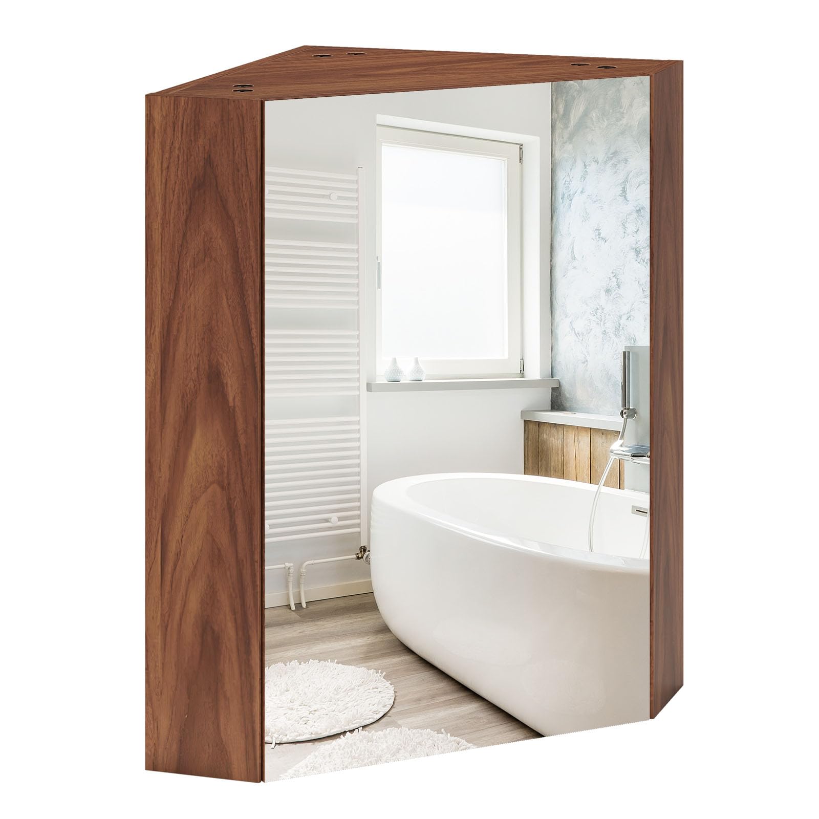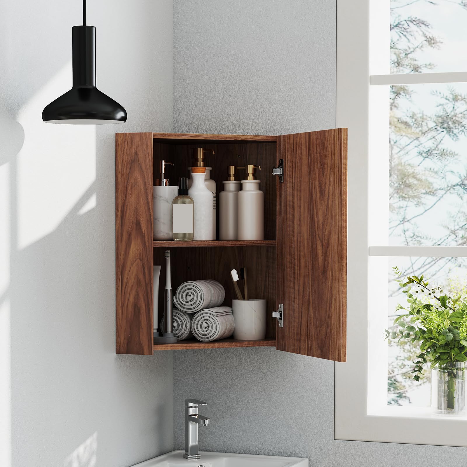 Elevate your bathroom organization with our corner medicine cabinet with mirror.