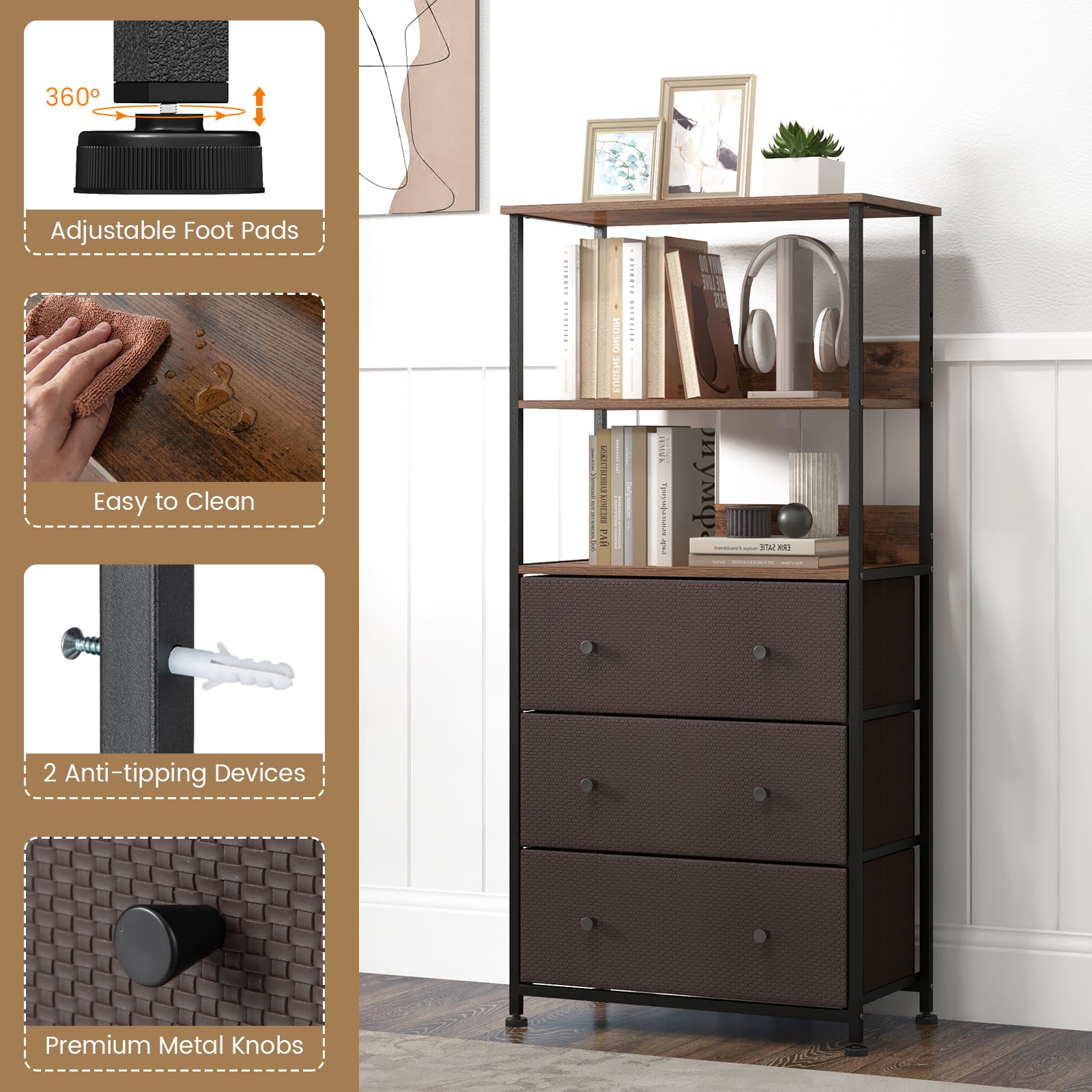 - 【Thoughtful Design】: Stay stable on any surface with adjustable foot pads and added safety with 2 anti-tipping devices included. This 3 drawer bookcase is designed with your safety and stability in mind, ensuring a reliable storage solution.