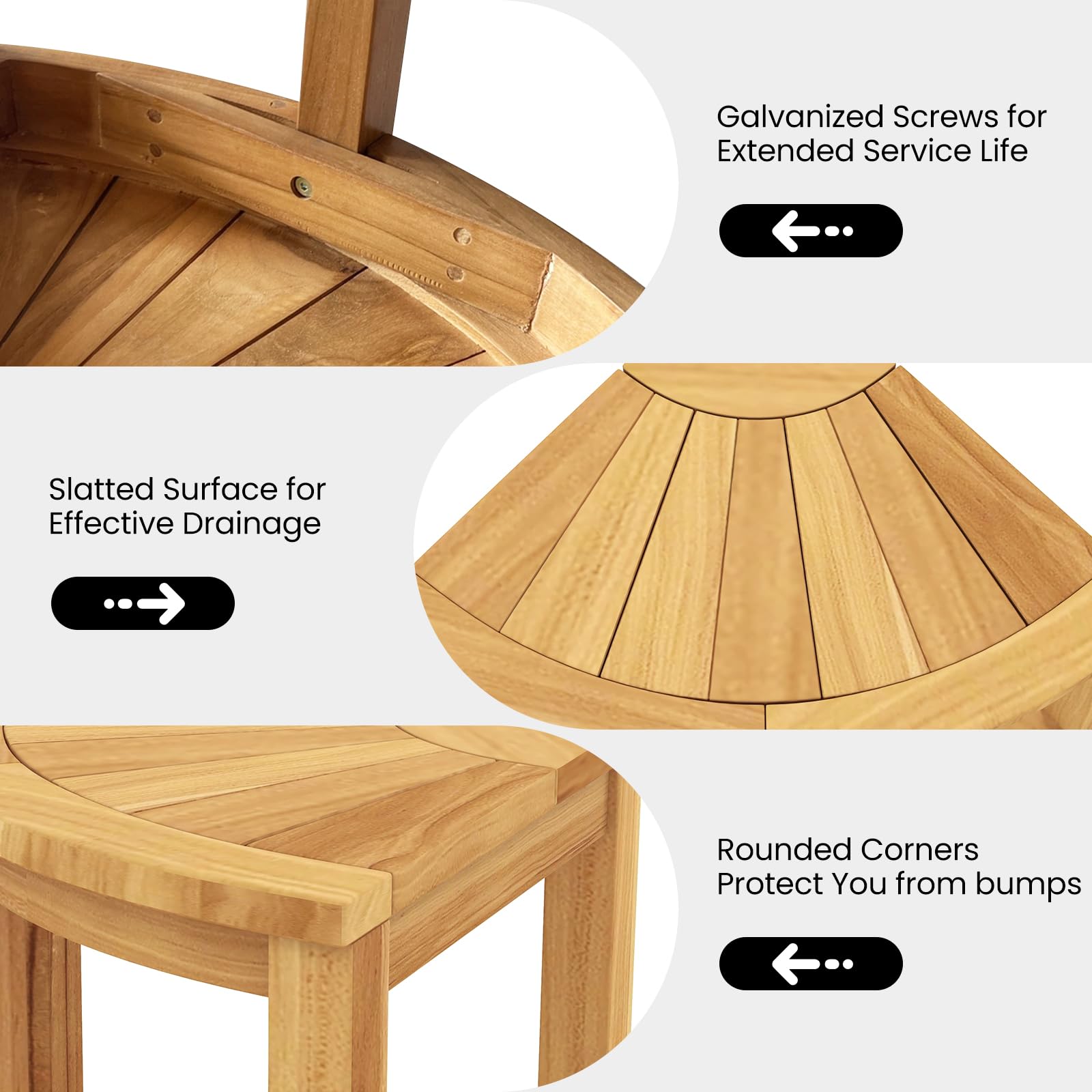 - [Solid Teak Wood]: Expertly crafted from Indonesian teak wood, this corner shower stool boasts natural water resistance, ensuring durability and worry-free use in humid environments like bathrooms. The rich teak hue adds a touch of elegance, making it a luxurious addition to both indoor and outdoor spaces.