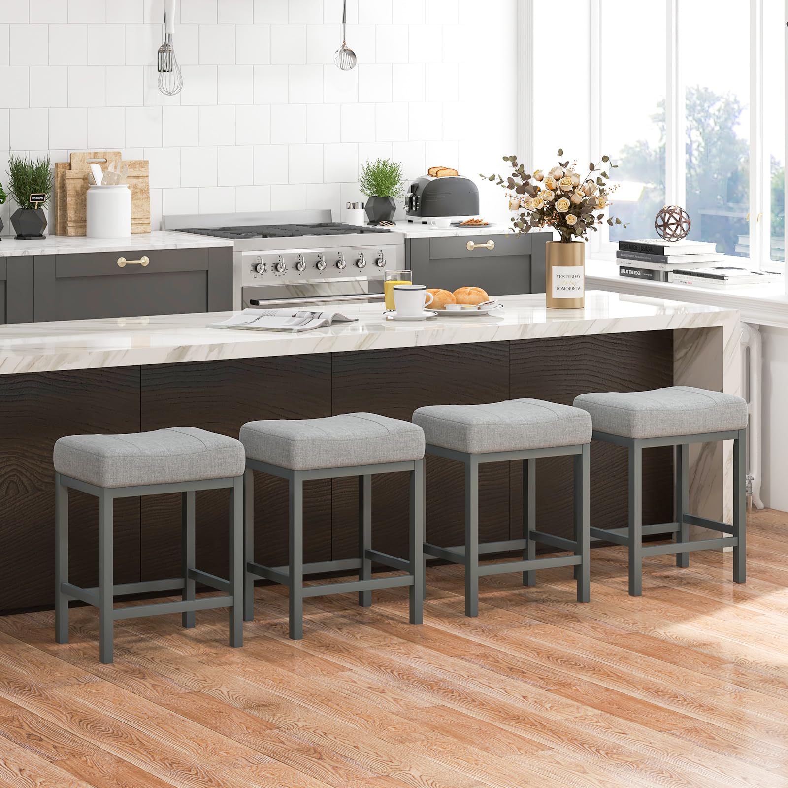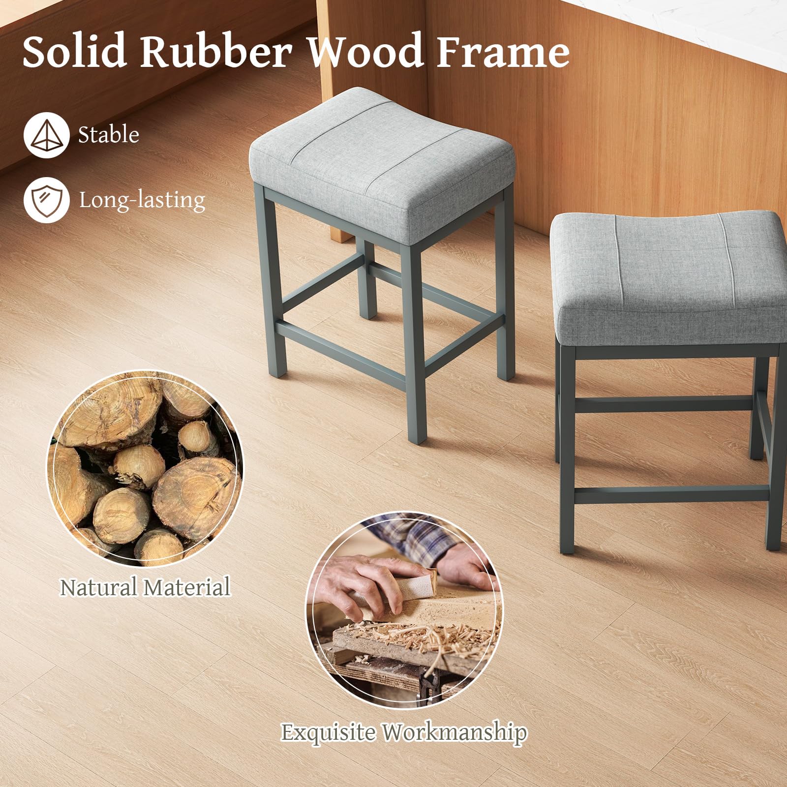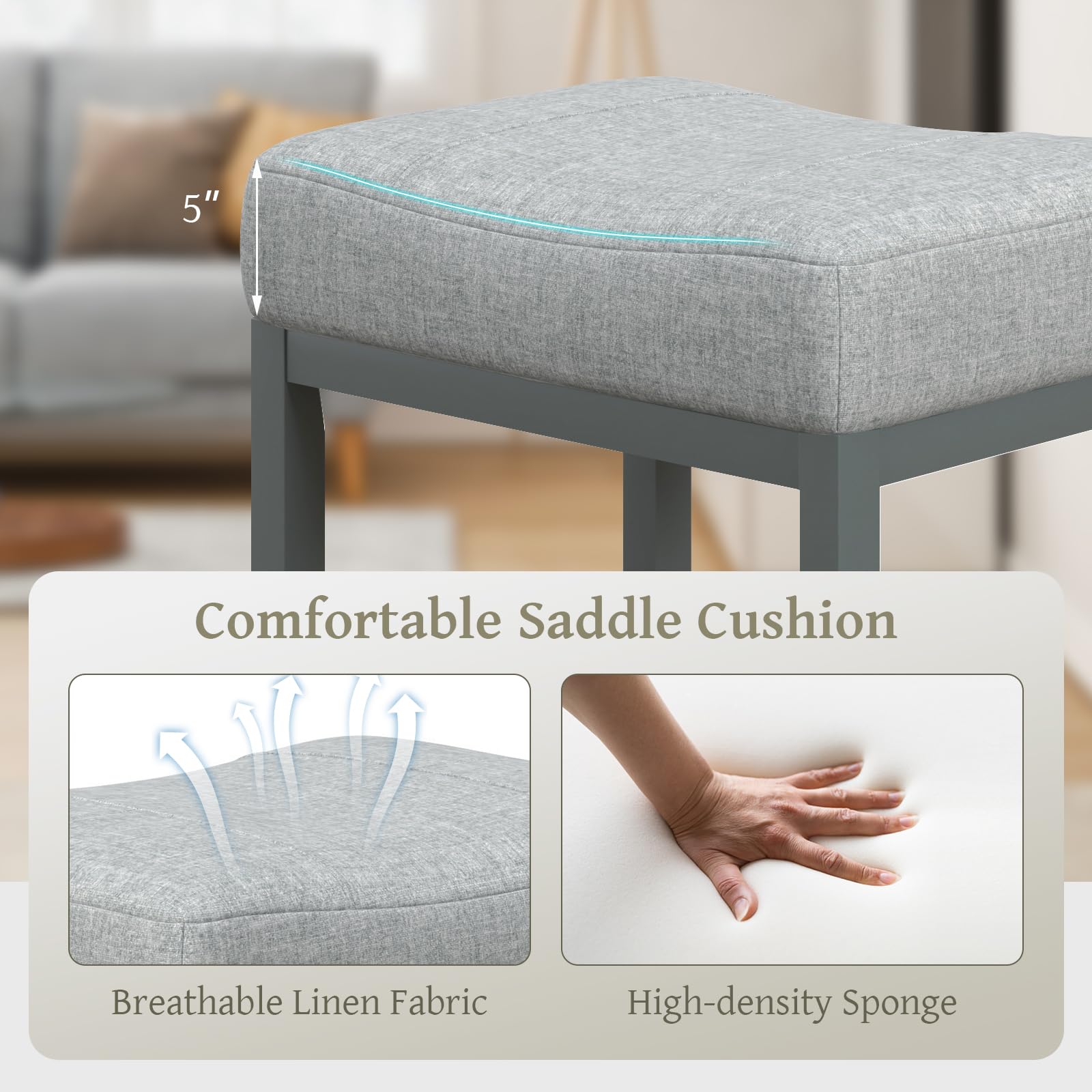 Discover the ultimate seating experience with our 5" plush saddle cushioned bar stools, wrapped in breathable linen fabric for an elegant look. Enjoy optimum comfort and unbeatable durability with each stool’s robust solid rubber wood frame, capable of supporting up to 350 lbs. Perfect for long chats or quick meals, these counter stools feature a sturdy footrest for posture support and are a breeze to clean in case of spills. More details, like the non-slip foot pads, contribute to a better user experience. Not only comfortable, but also stylish, their minimalist design seamlessly complements any bar area. Bring elegance into your home - get yours now and transform your space!