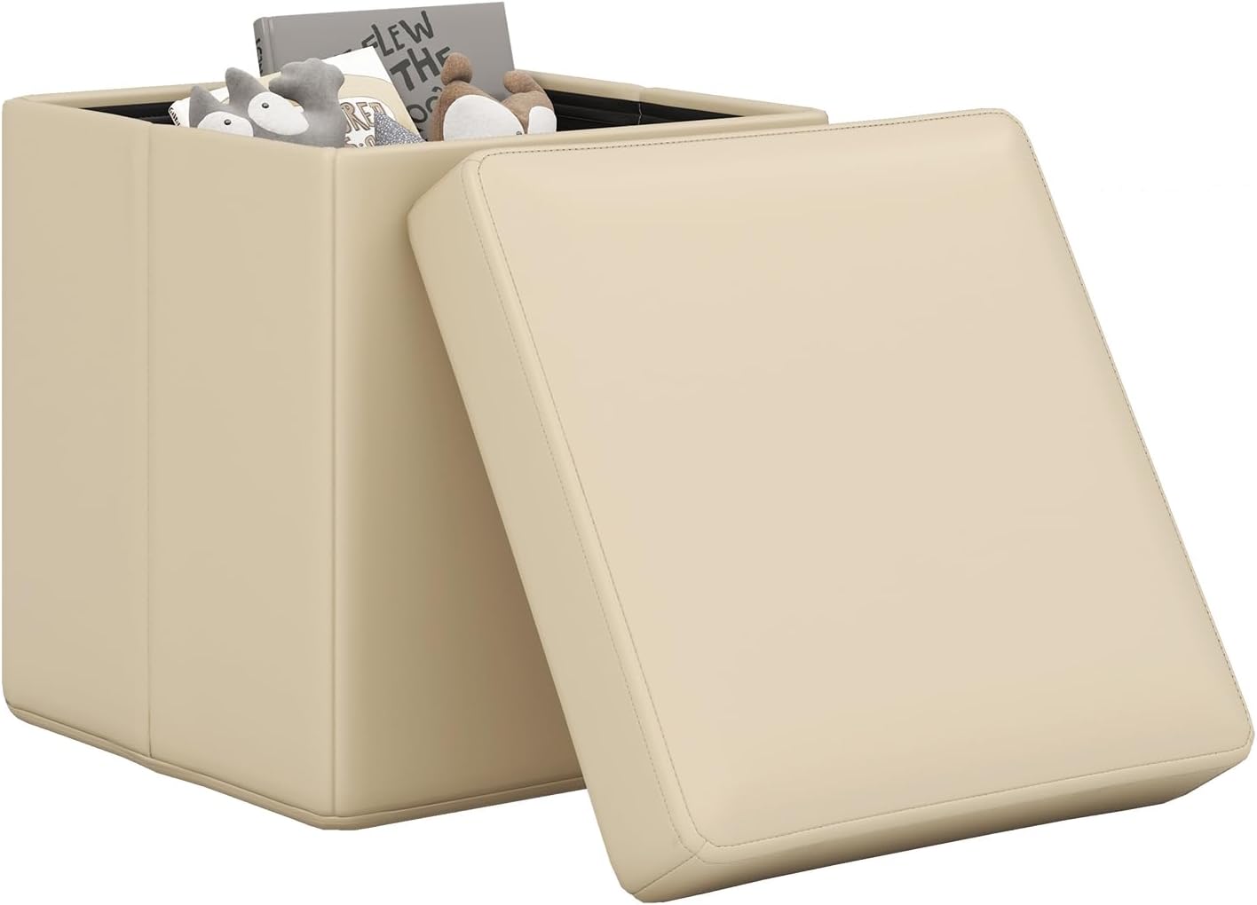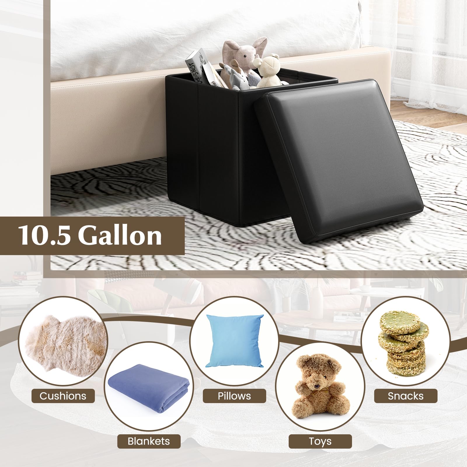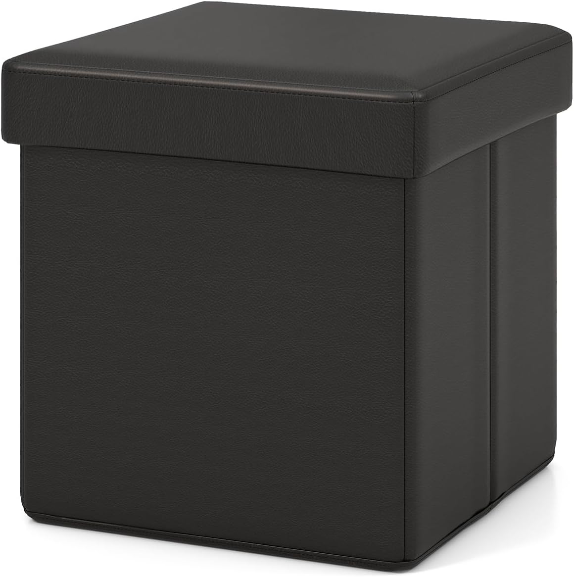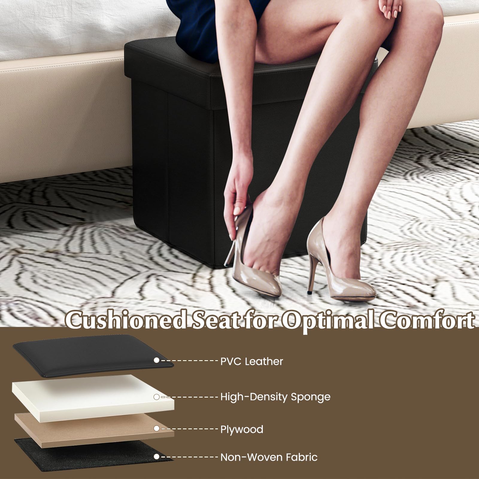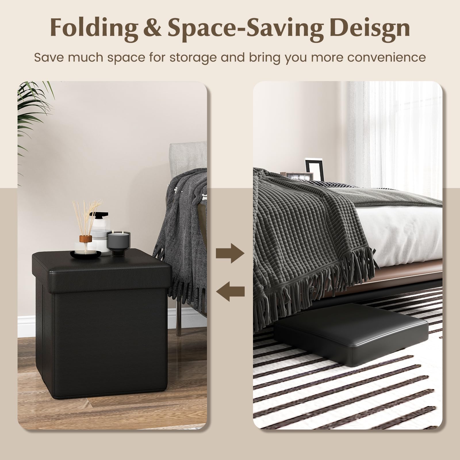 Giantex Cube Storage Ottoman - 15 Inches Folding Ottoman Storage Chest, PVC Leather, Upholstered Footrest