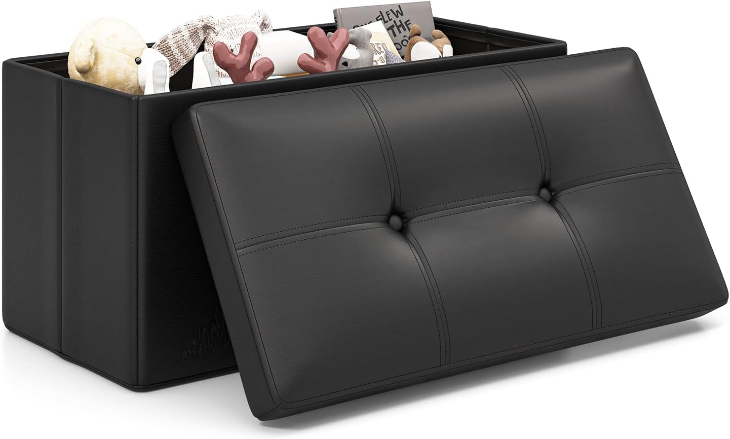 • Comfortable seating: The top lid of the stool is cushioned with high-density sponge, providing a comfortable seat. The waterproof PVC leather surface is easy to clean and maintain.