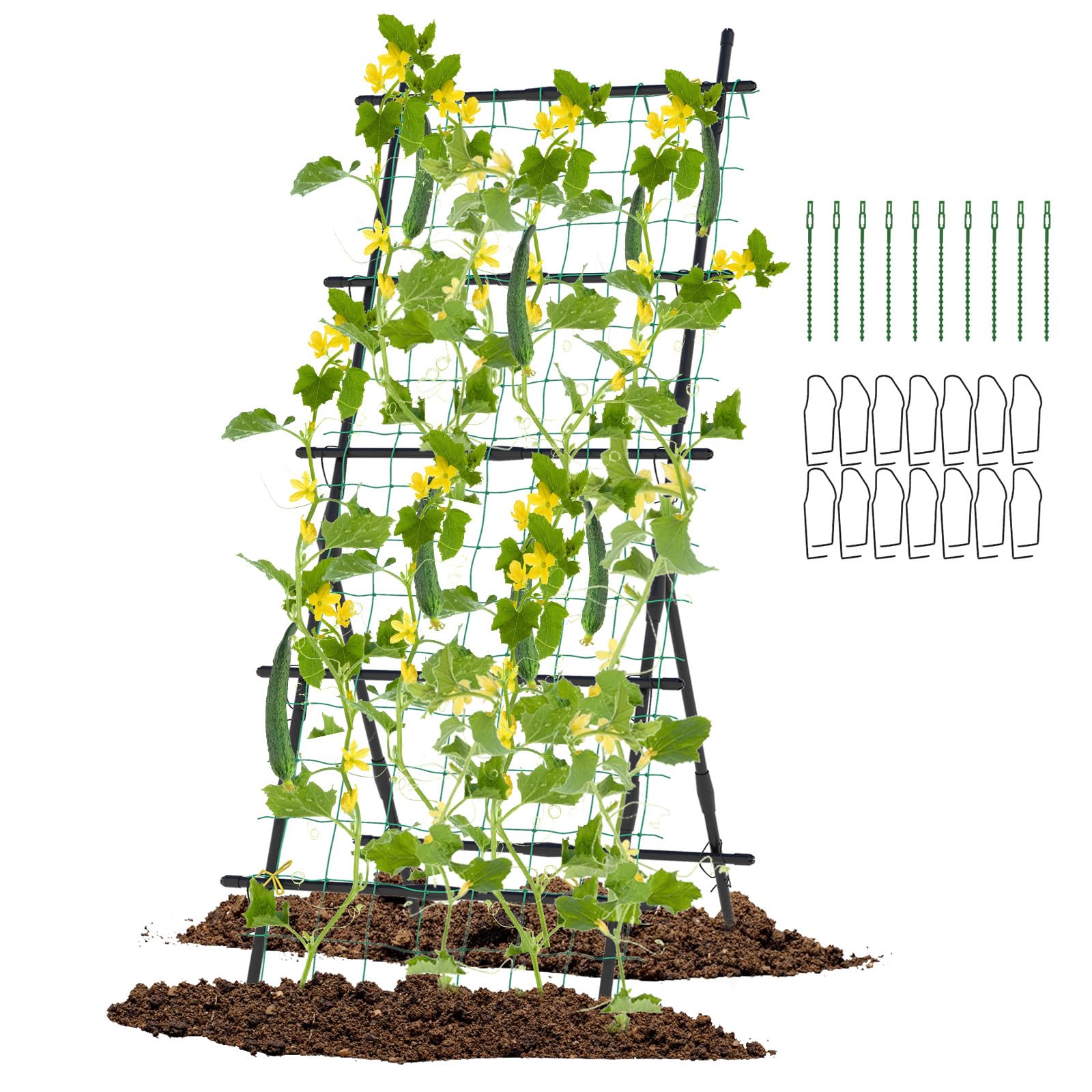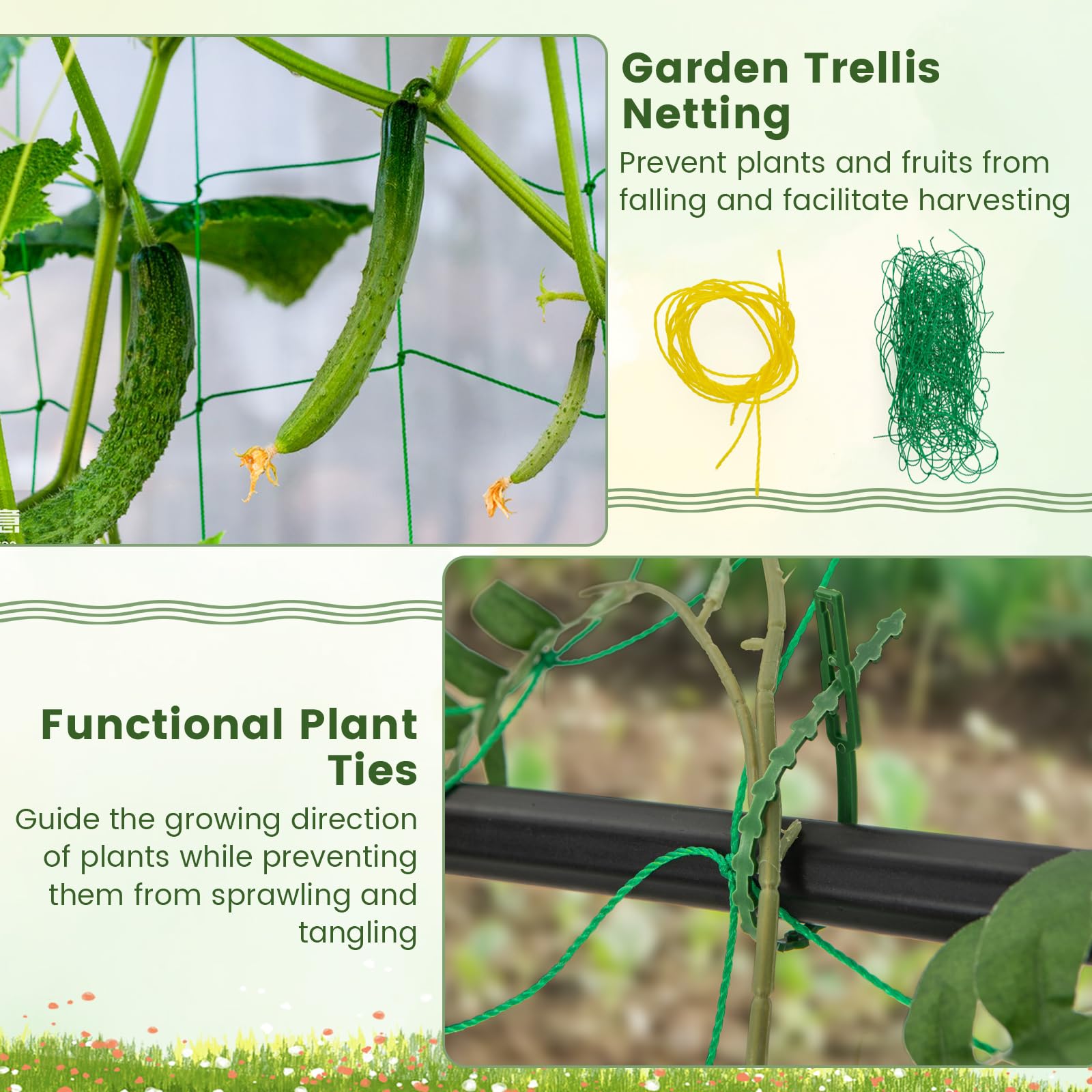 - [Practical Accessories]: The cucumber trellis includes a garden trellis netting, which could prevent plants and fruits from falling and facilitate harvesting. And there exist functional plant ties to guide the growing direction of plants while preventing them from sprawling and tangling. It measures 31” x 26” x 74” (L x W x H).