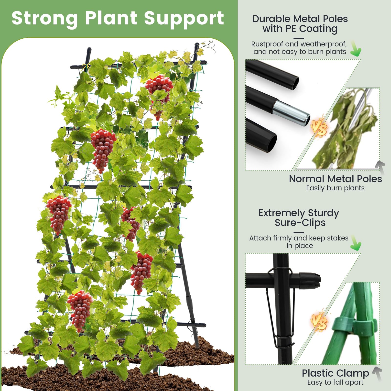 - [Stable Construction]: The garden trellis features a sturdy and reliable A-frame design, ensuring maximum stability for your climbing plants. Moreover, the frame is secured by extremely sturdy sure-clips, attaching firmly and keeping stakes in place.