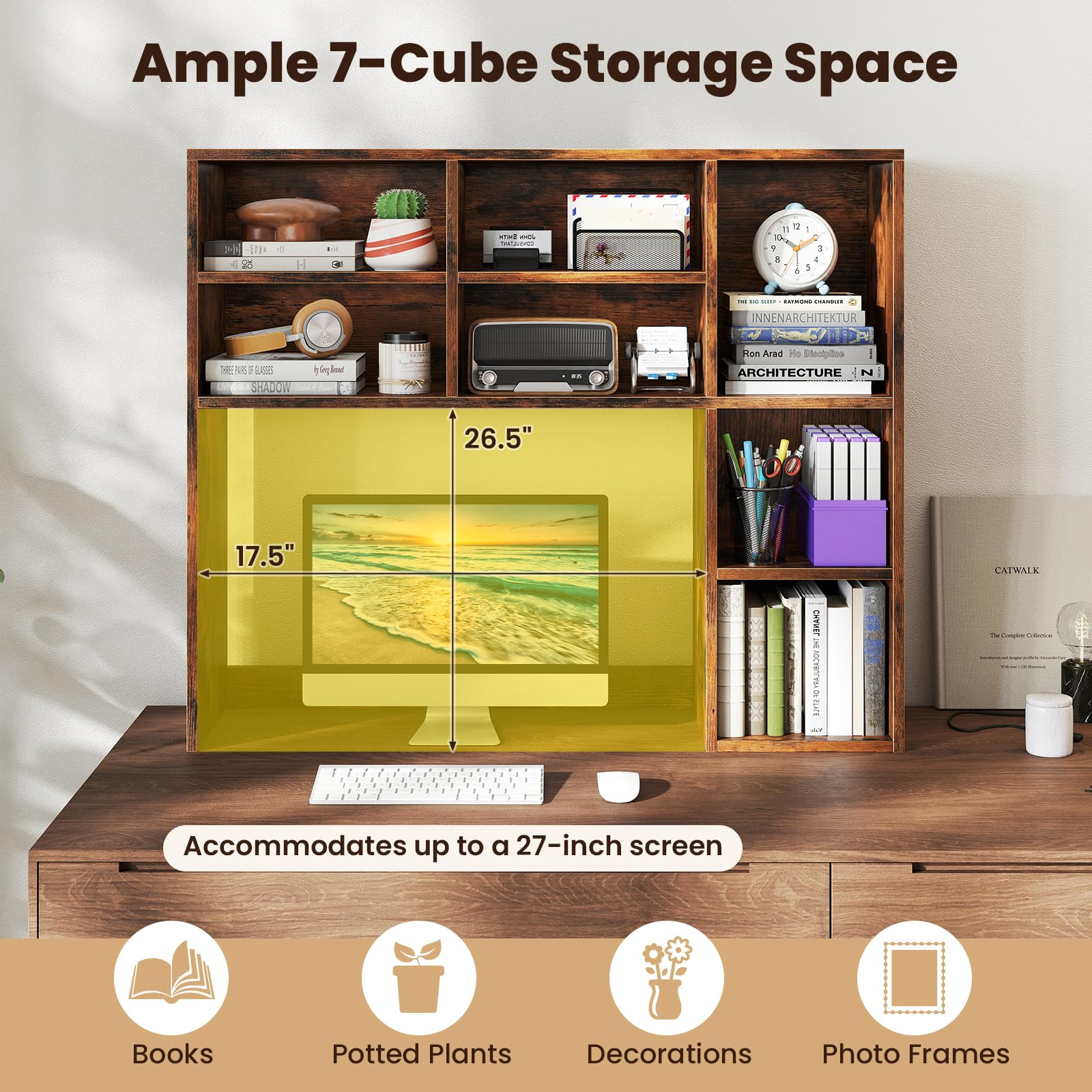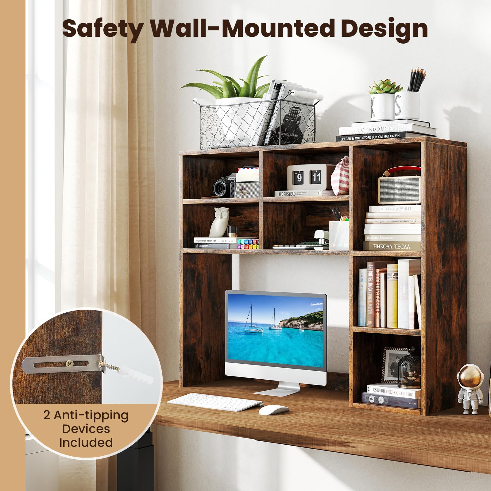 With 7 open cubbies, a spacious top shelf, and a monitor-friendly bottom compartment, everything you need is within reach. The 3 adjustable shelves let you personalize your setup, while the vertical design makes smart use of limited desk space. Crafted from durable engineered wood and reinforced with a crossbar, this organizer supports up to 210 lbs. Safety is also a priority, with two included anti-tip kits for extra peace of mind.