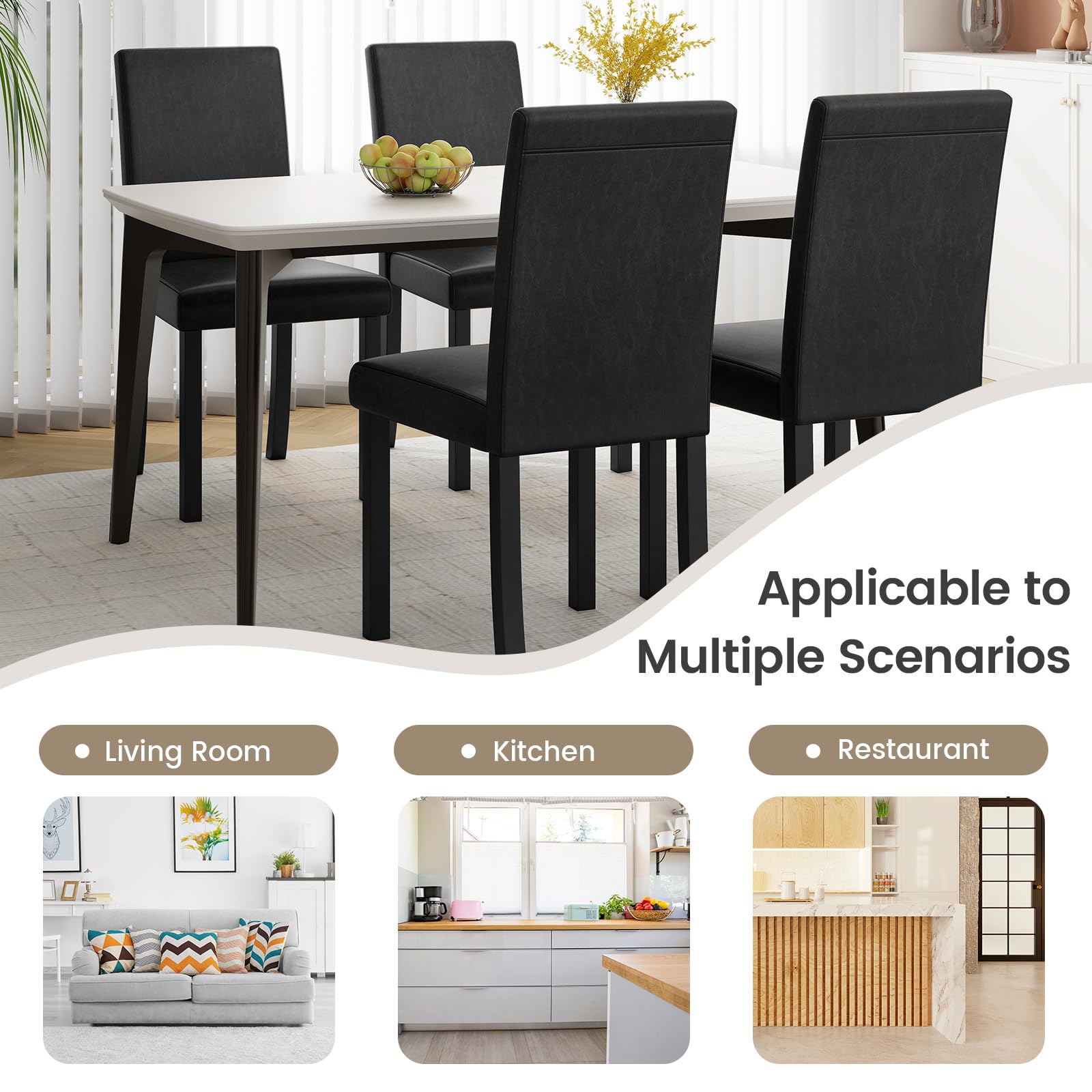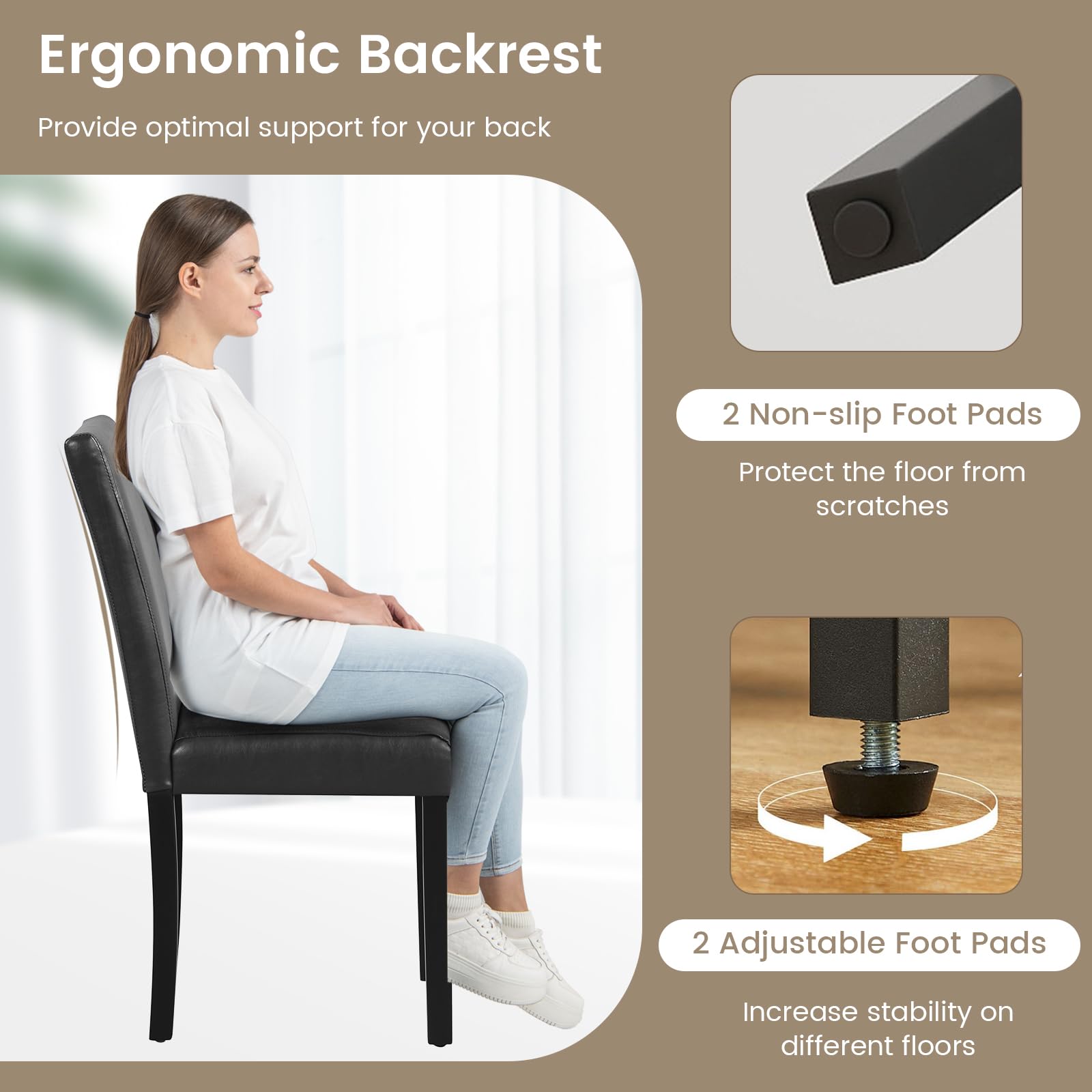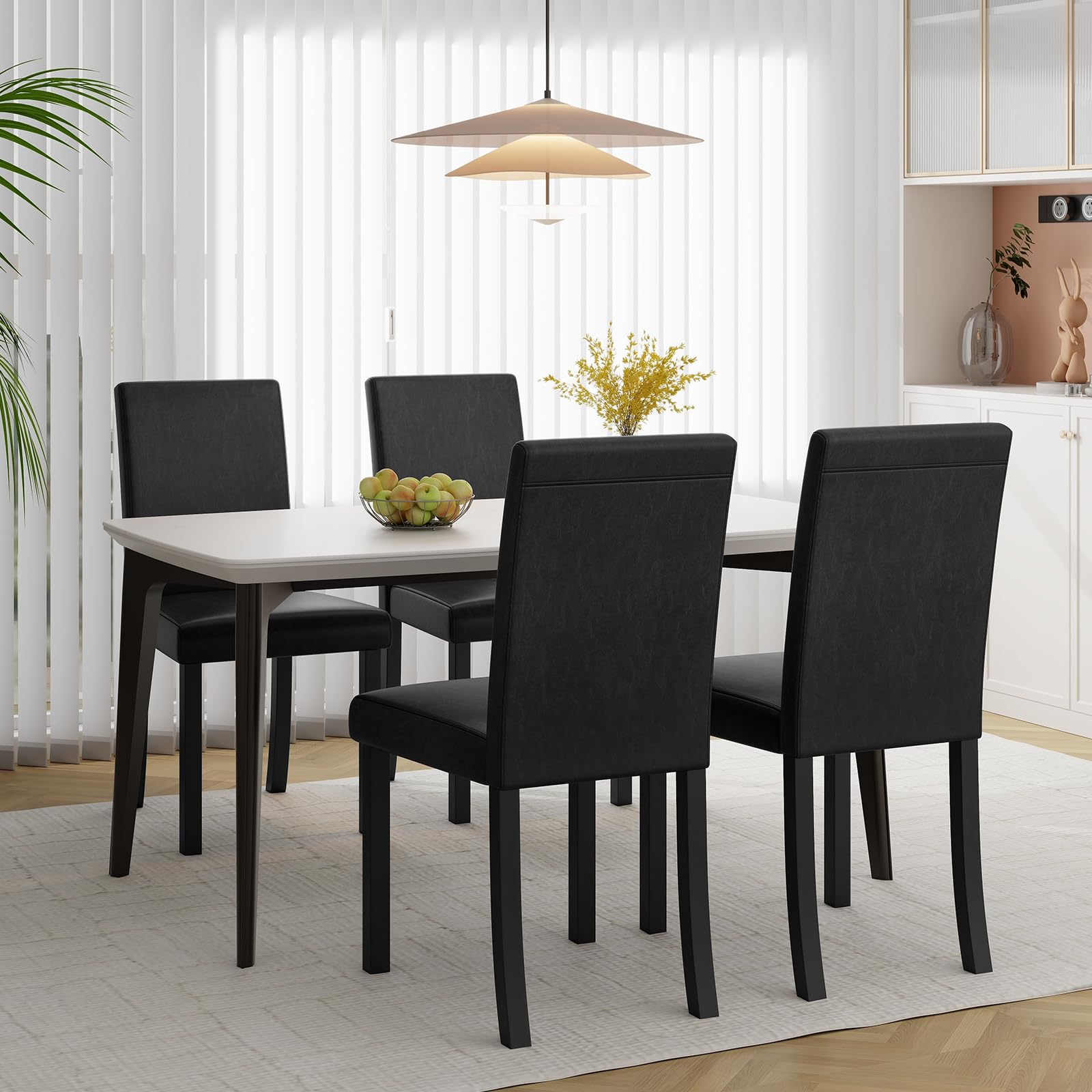 • Upholstered Seat & Backrest: The 4 pcs wooden dining chairs come with a wear-resistant and skin-friendly PU leather fabric covered seat and backrest, ensuring a comfortable experience and a touch of elegance. Plus, the soft and supportive sponge filling helps reduce fatigue.