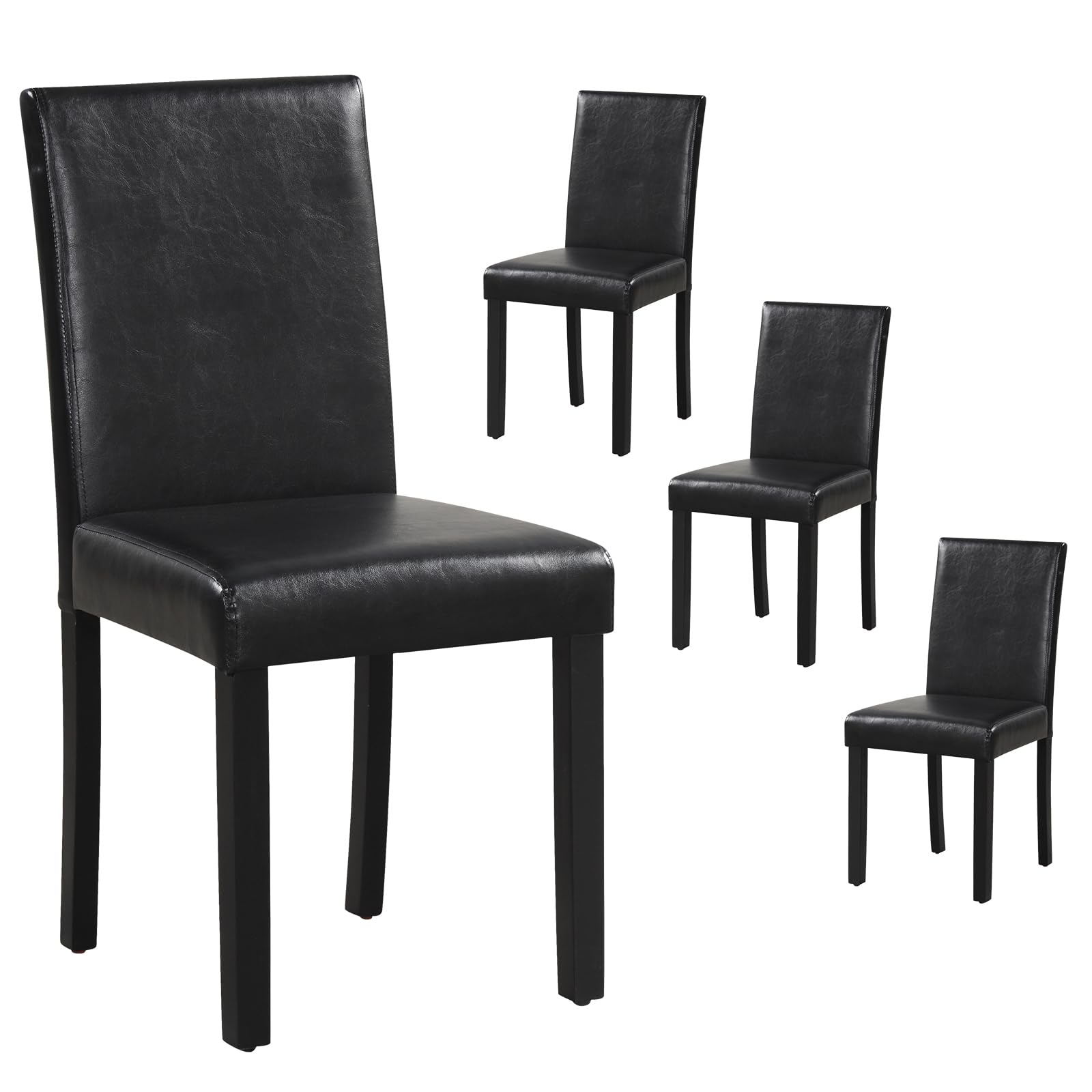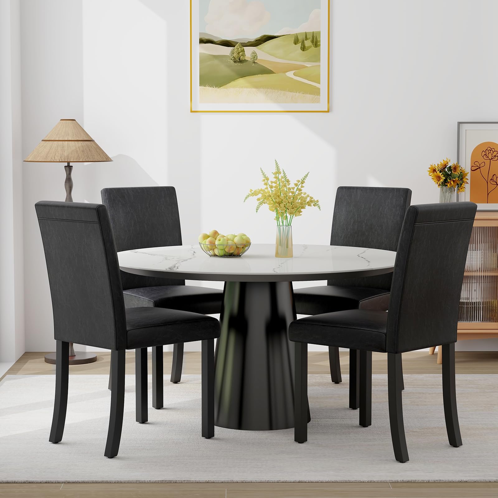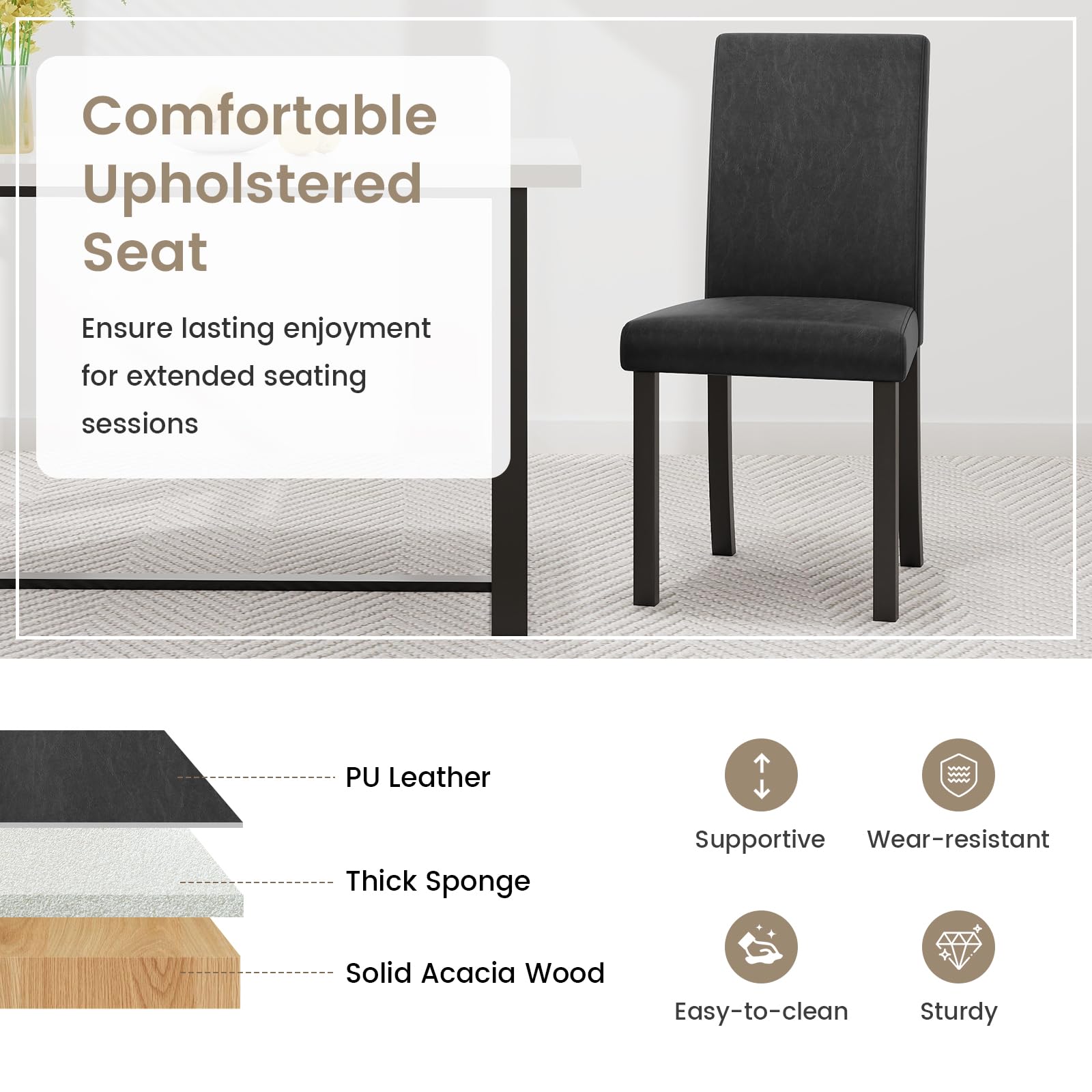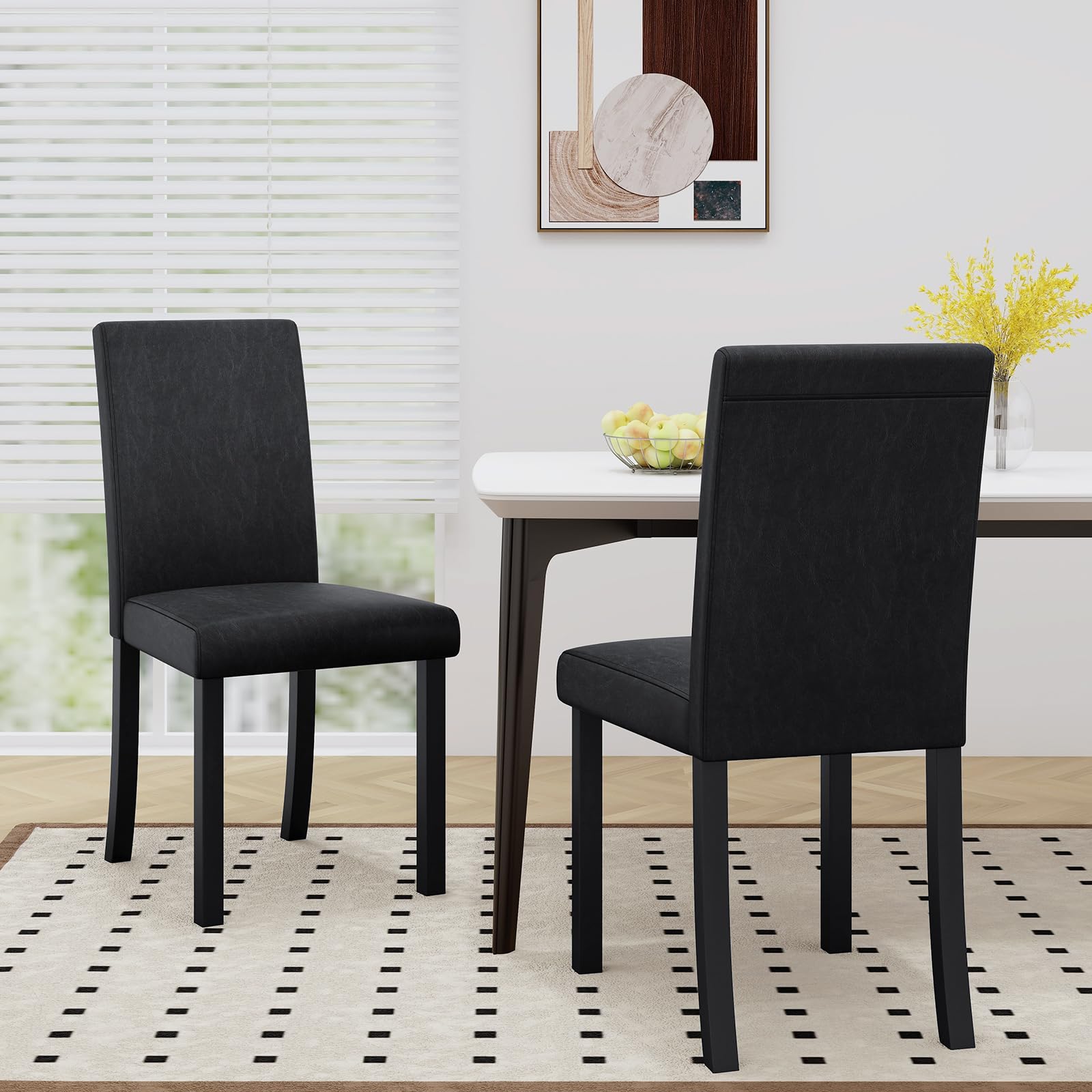 • Upholstered Seat & Backrest: The 4 pcs wooden dining chairs come with a wear-resistant and skin-friendly PU leather fabric covered seat and backrest, ensuring a comfortable experience and a touch of elegance. Plus, the soft and supportive sponge filling helps reduce fatigue.