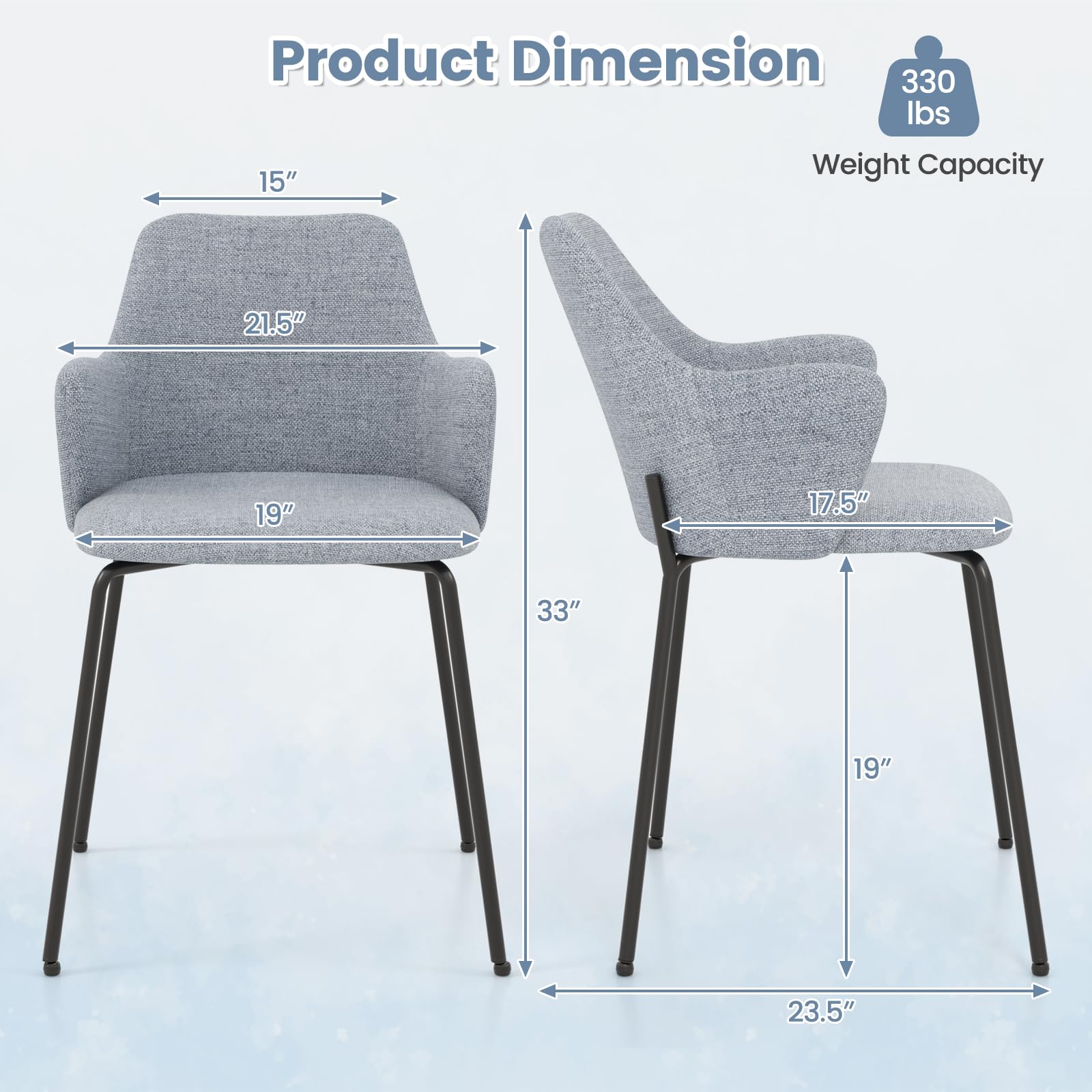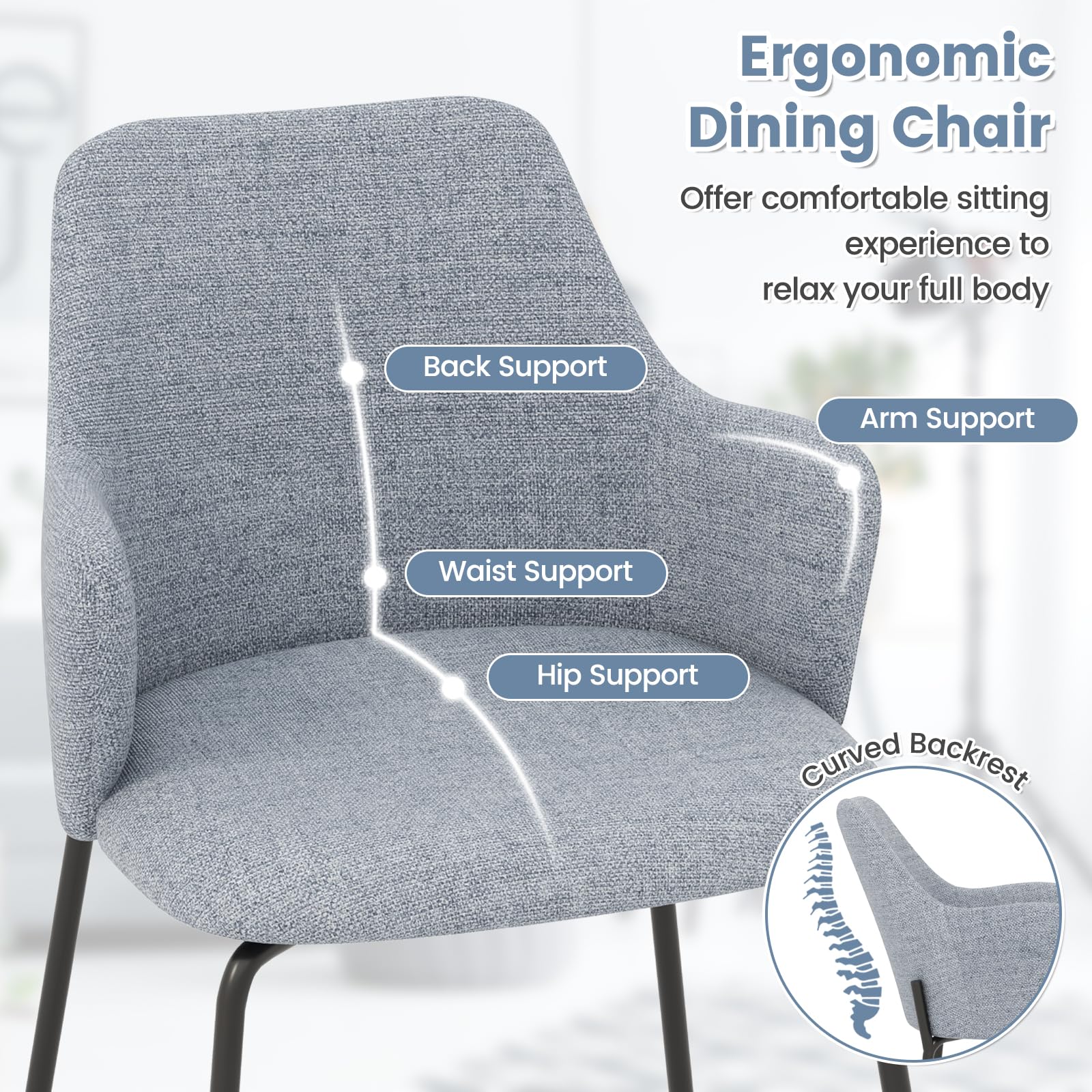 Looking for an ergonomic dining chair that offers a comfortable sitting experience? Look no further! Our specially designed dining chair features a comfy backrest, wide seat, and armrests that provide waist, hip, and arm support. The curved backrest is perfectly contoured to fit your body shape, ensuring optimal relaxation. Besides, the seat and backrest are filled with sponge for a cushioned support that is both gentle and invigorating. And the soft and breathable fabric adds an exquisite touch. Crafted with a stable metal frame and wear-resistant fabric, our dining chair is built to last. It offers sturdy and strong support, with a weight capacity of up to 330 lbs. Hence, it can withstand daily use and is perfect for any room in your home, whether it's the living room, dining room, or bedroom.